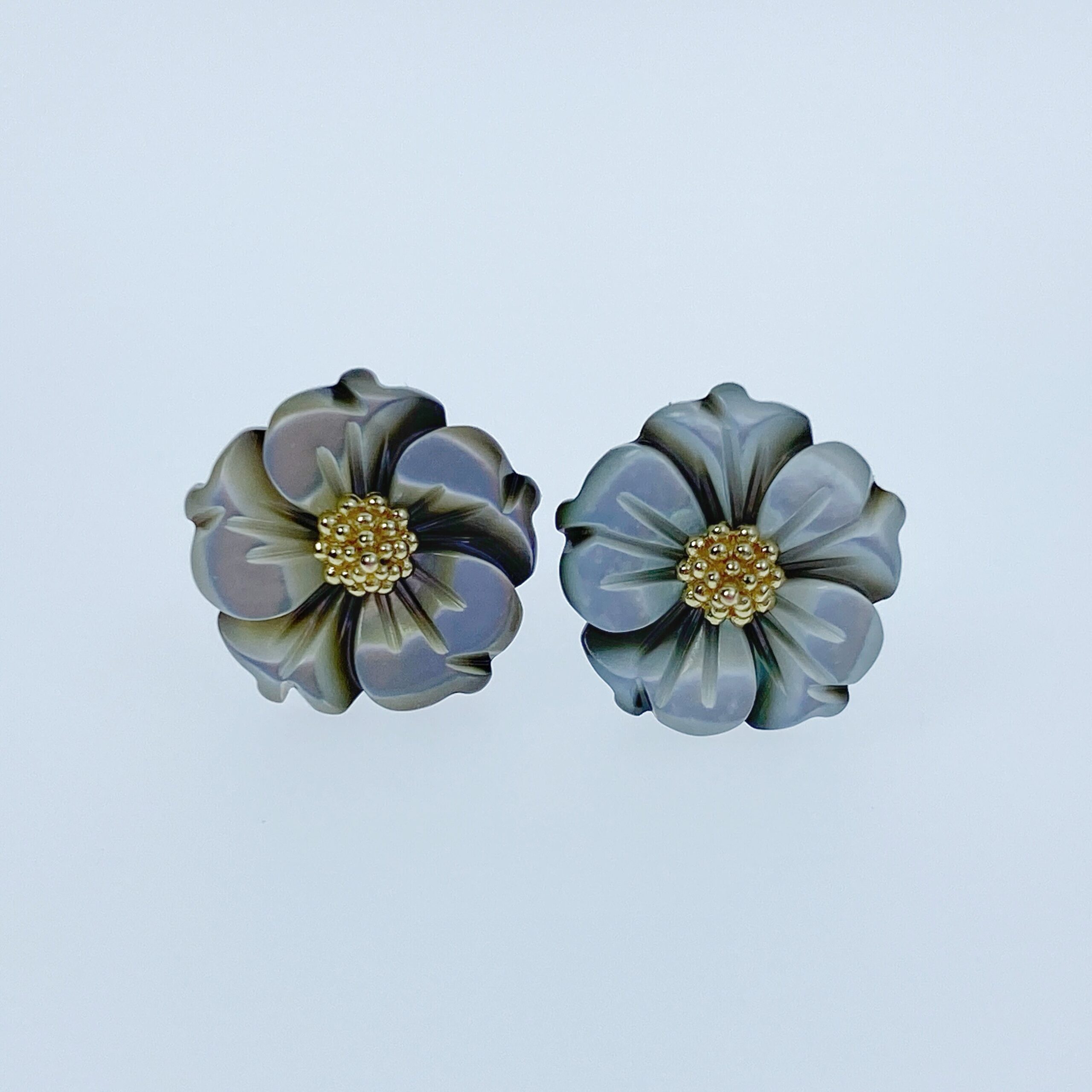 10pc Bauhinia Flower Beads Black Mother Of Pearl 12mm Hand Carved Charms BM-0053