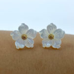 10pc Bauhinia Flower Beads White Mother Of Pearl 15mm Hand Carved WM-0209