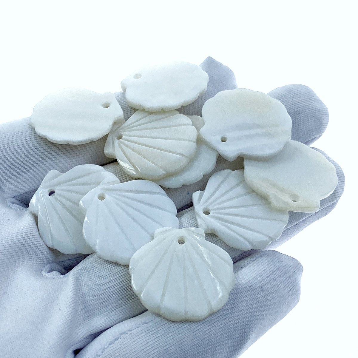 10pc Clam Shell White Mother Of Pearl Beads 21mm Hand Carved FWM-0008