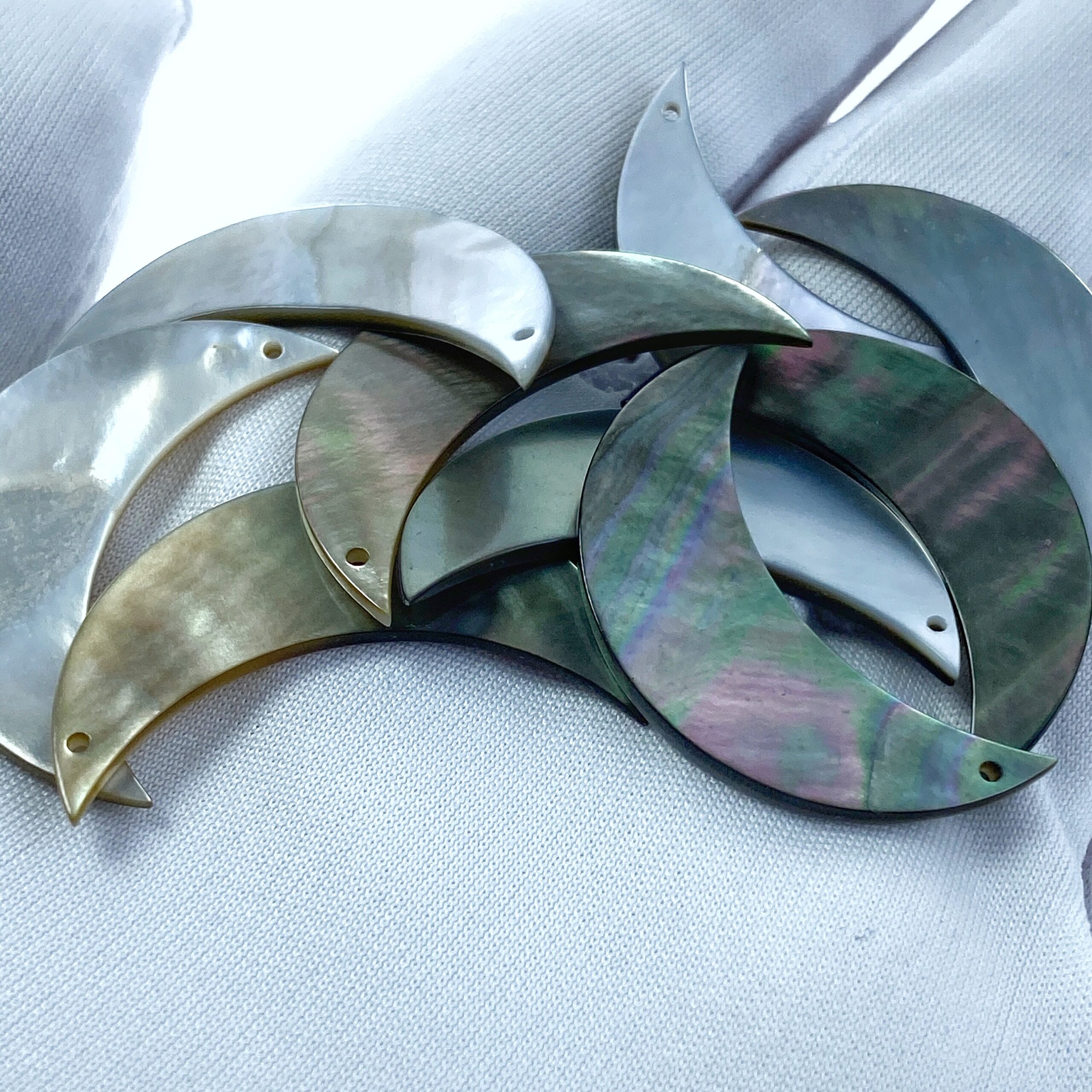 Black mother of pearl crescent moon beads for diy jewelry making.