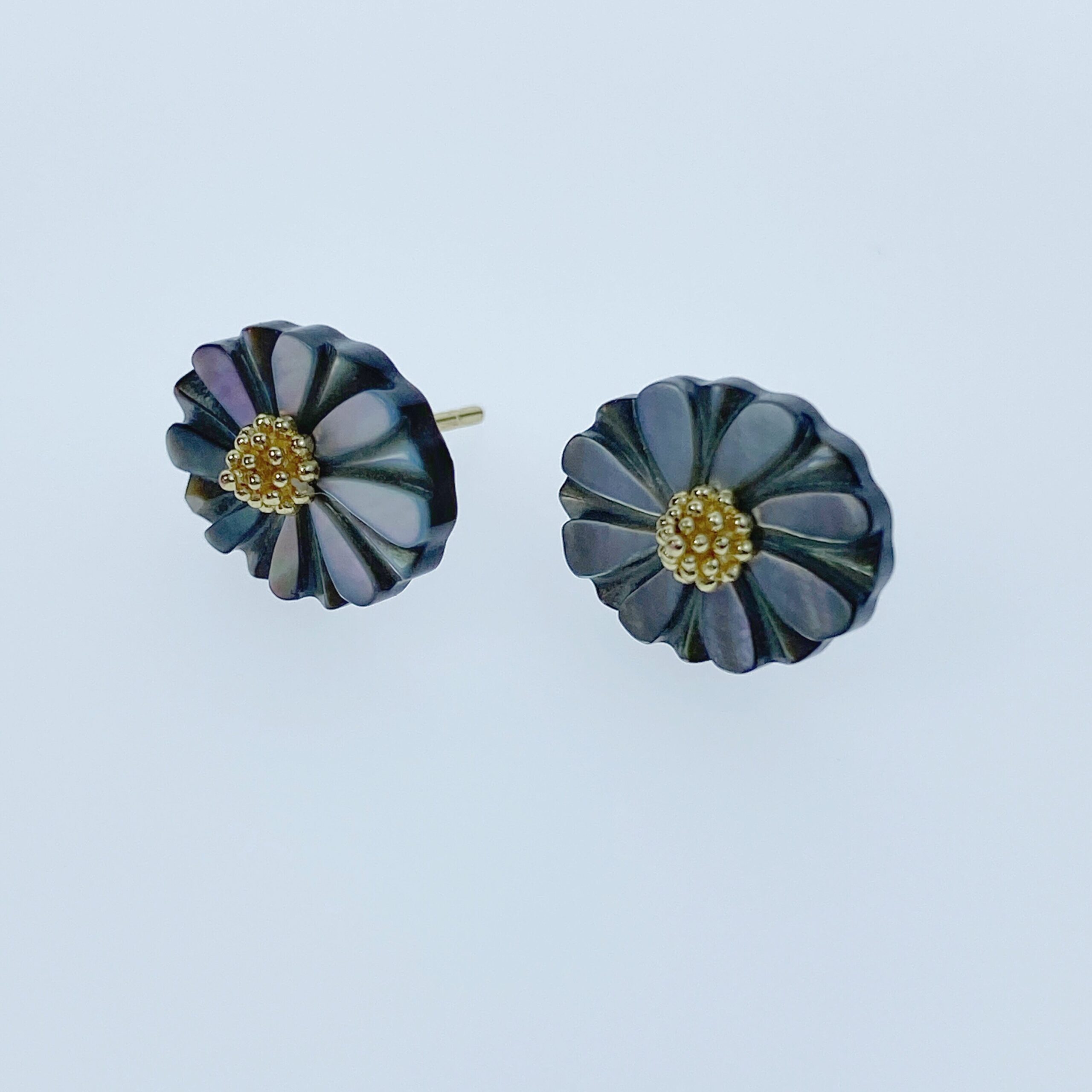 10pc Daisy Flower Beads Black Mother Of Pearl 12mm Hand Carved Charms BM-0065