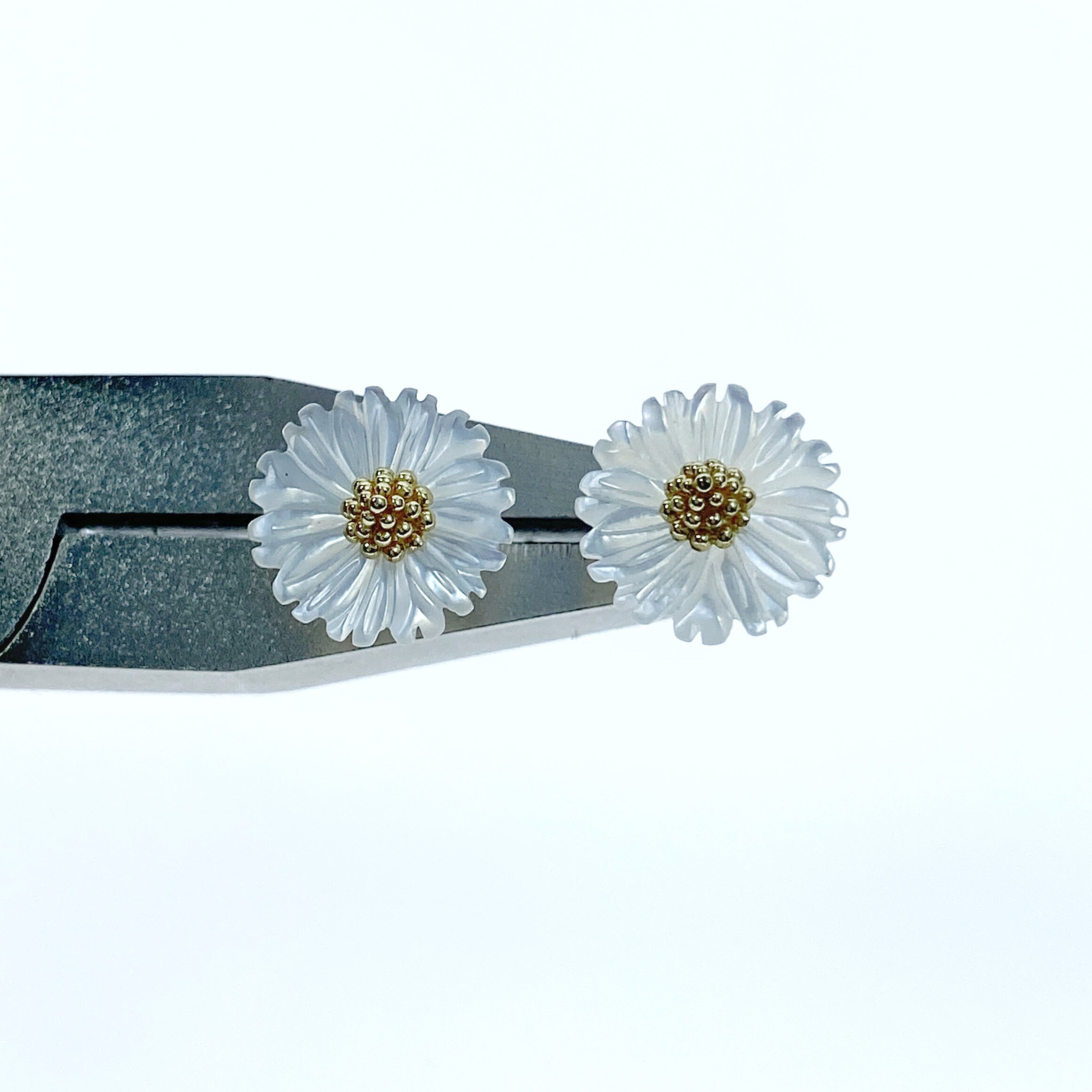 10pc Daisy Flower Beads White Mother Of Pearl 10mm Hand Carved WM-0108
