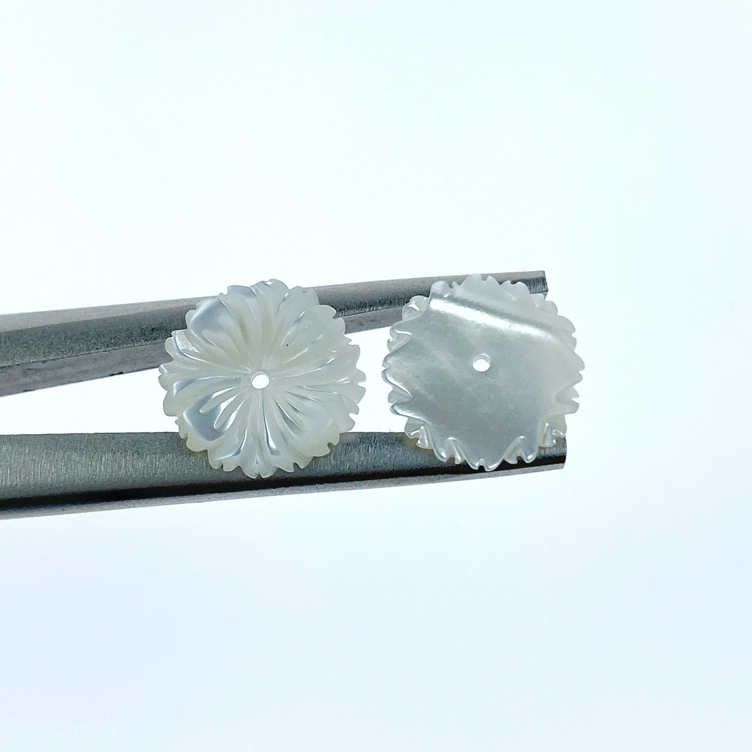 10pc Daisy Flower Beads White Mother Of Pearl 12mm Hand Carved WM-0083
