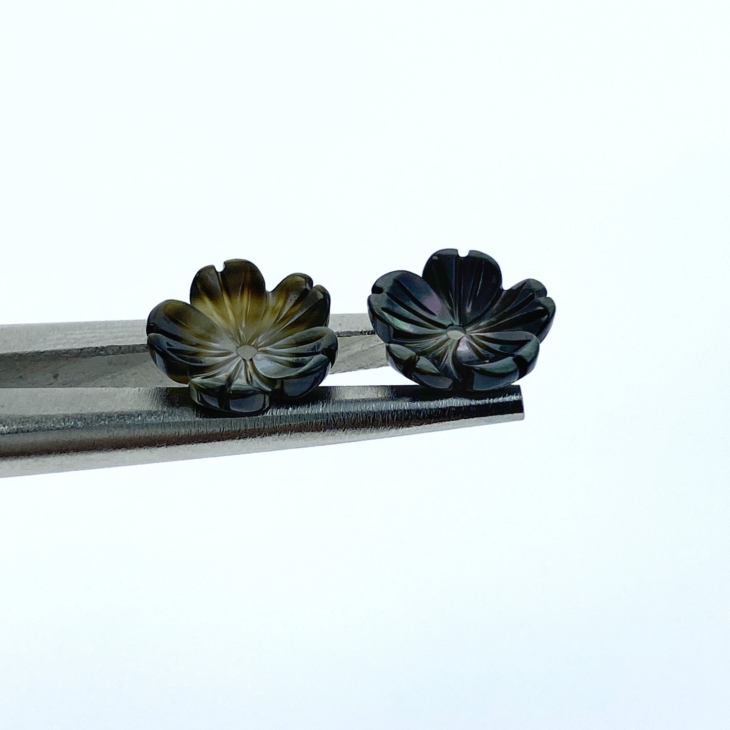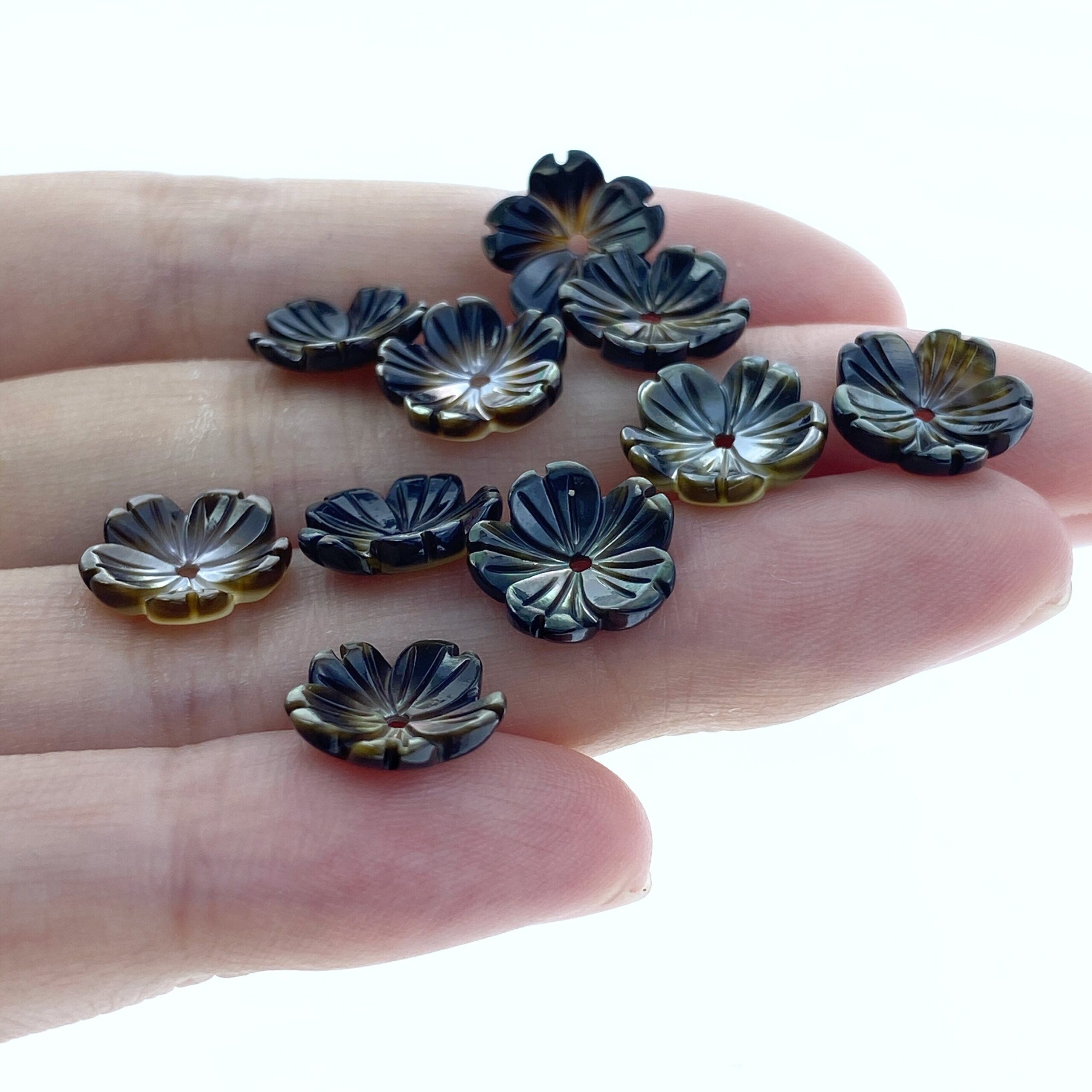 10pc Flower Beads Black Mother Of Pearl Beads Charms 10mm Hand Carved BM-0035
