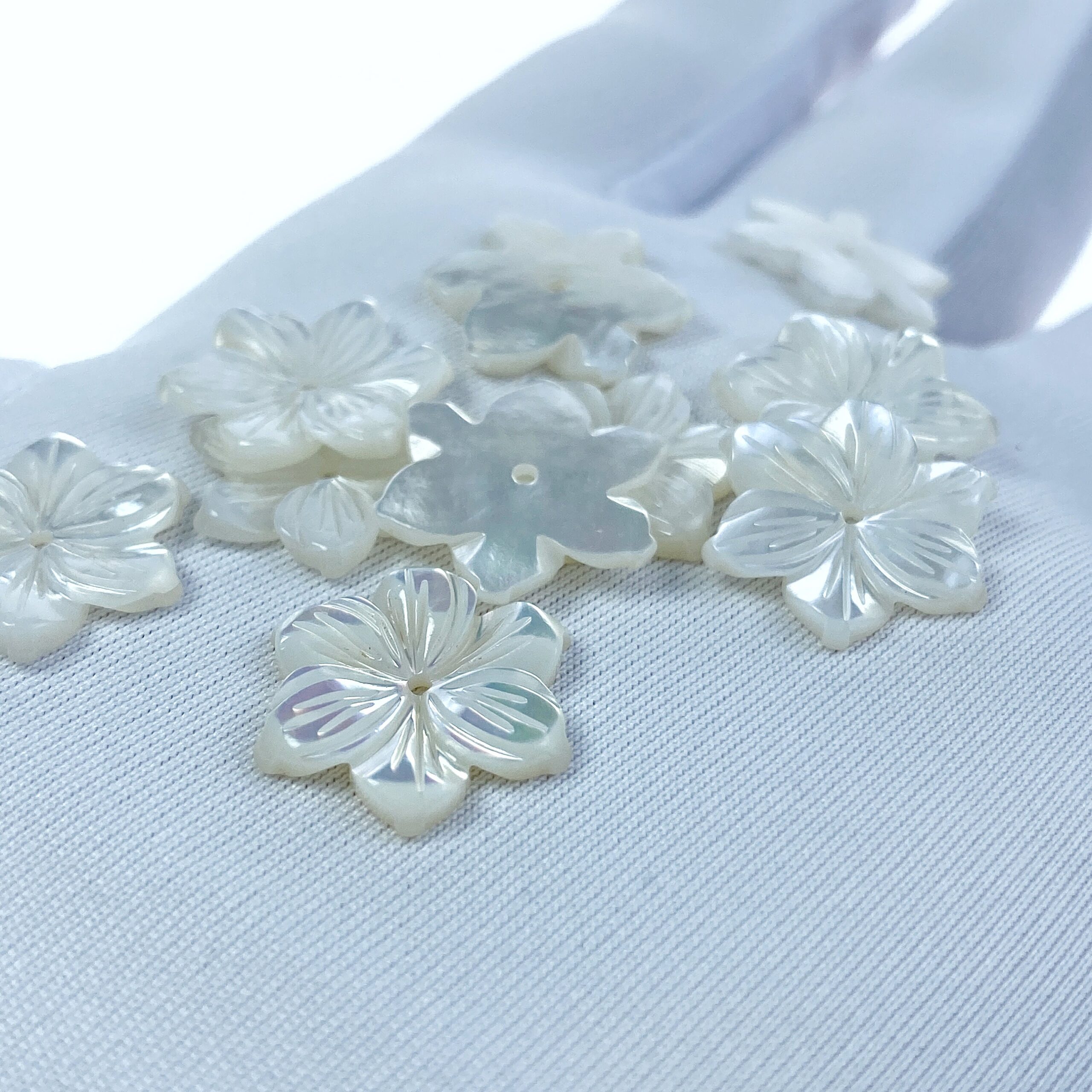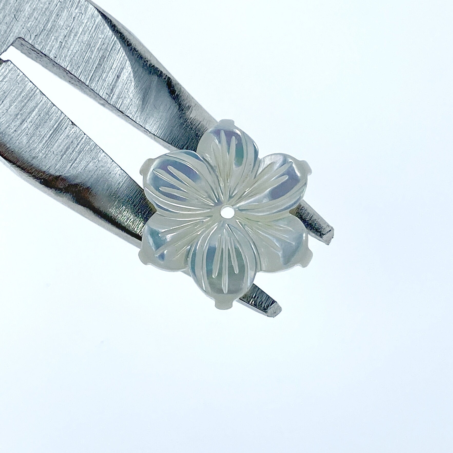 10pc Flower Beads White Mother Of Pearl 15mm Hand Carved WM-0016