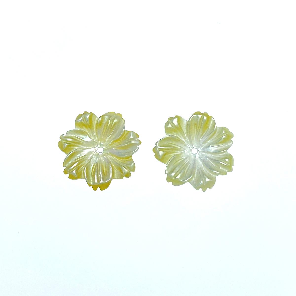 10pc Flower Beads Yellow Mother Of Pearl 15mm Hand Carved YM-0011