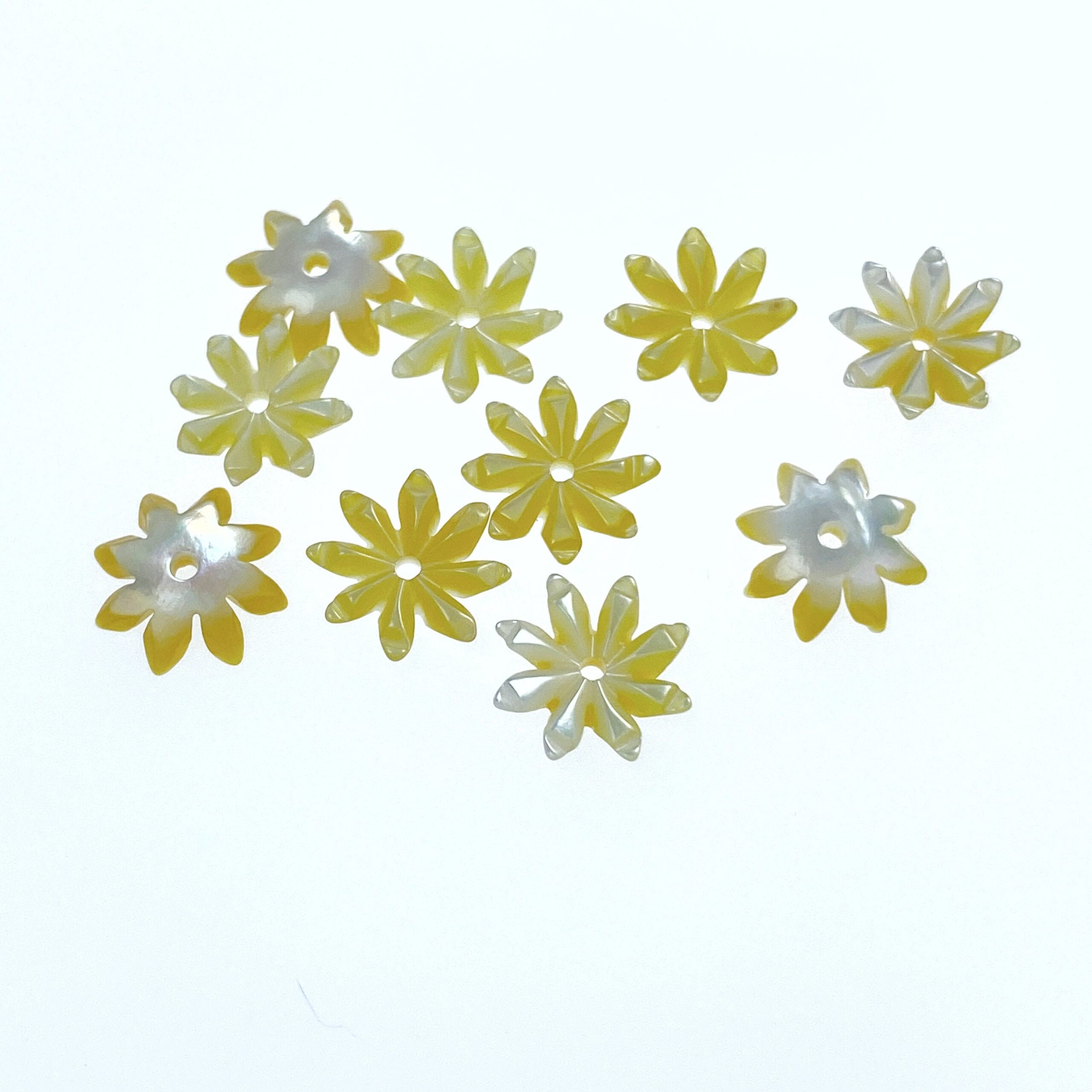 10pc Hand Carved Yellow Mother of Pearl Tropical Flower Shaped Beads Hawaiian Minimalistic Design For Earrings DIY Jewelry Organic YM-0018