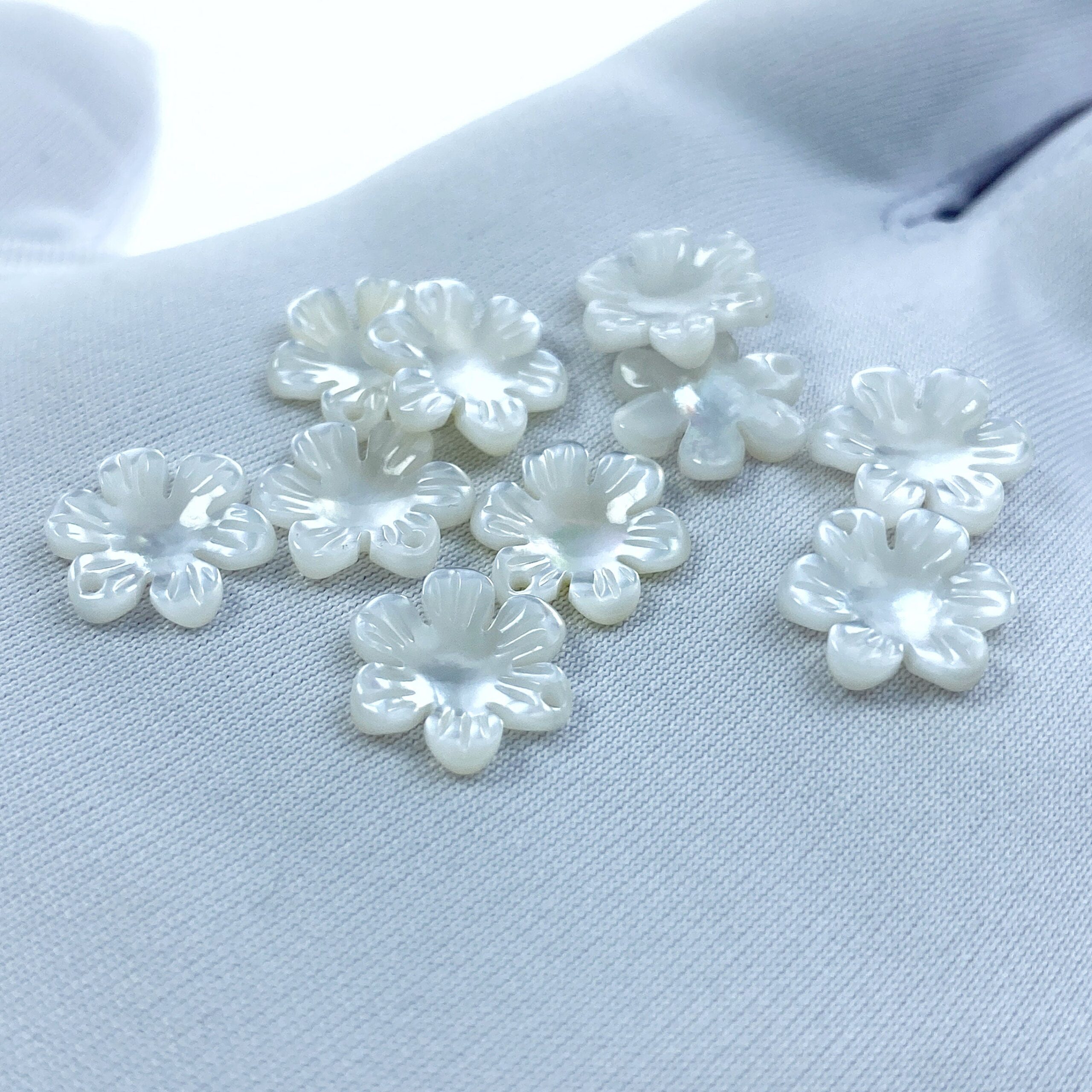 10pc Mother Of Pearl Daisy Flower Beads 10mm Hand Carved White Shell Charms Pendants For Bridal Jewelry DIY Making Earrings WM-0141