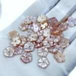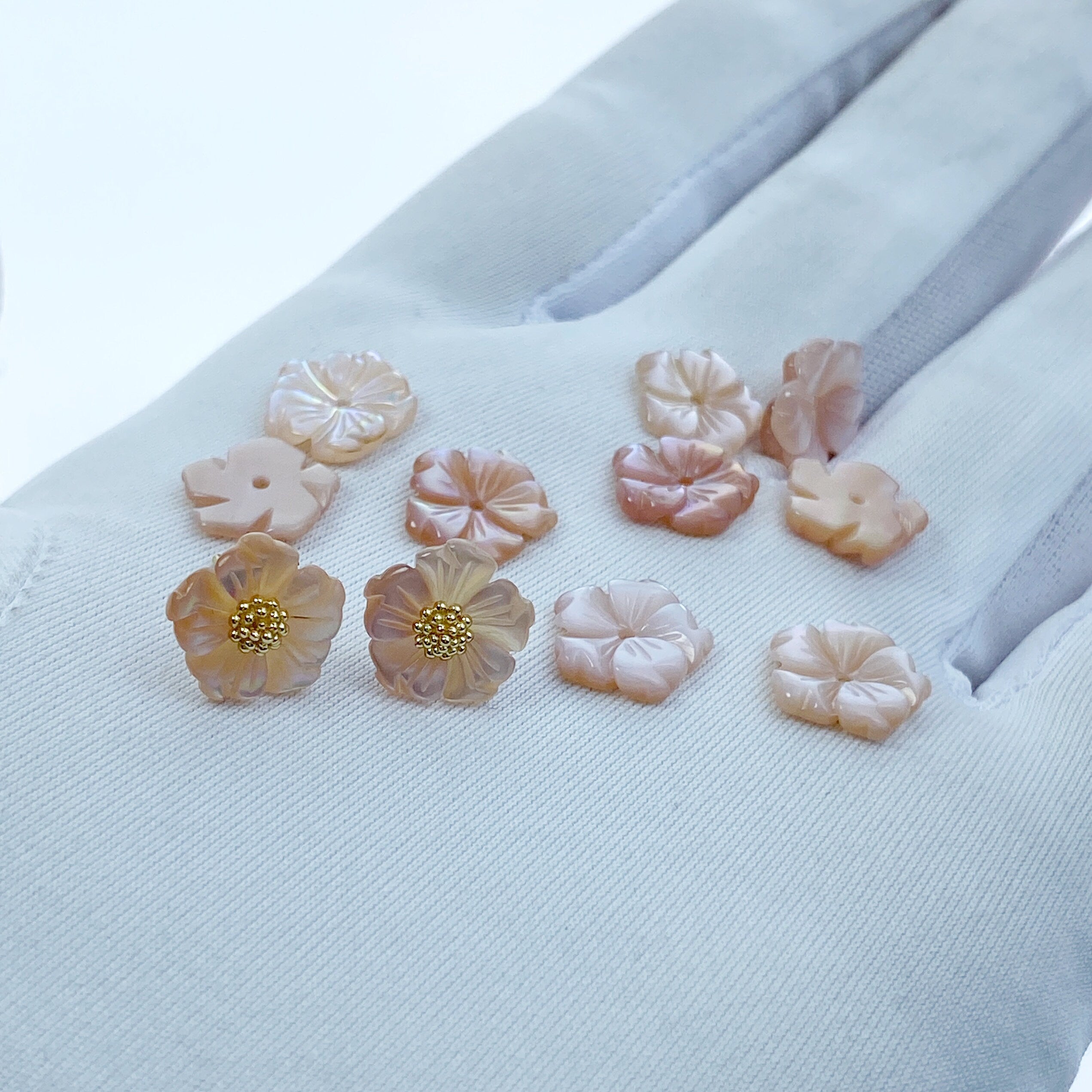 Beautiful pink mother of pearl beads are hand carved using fully organic raw materials. All natural product, all pieces are as singular and unique as you.