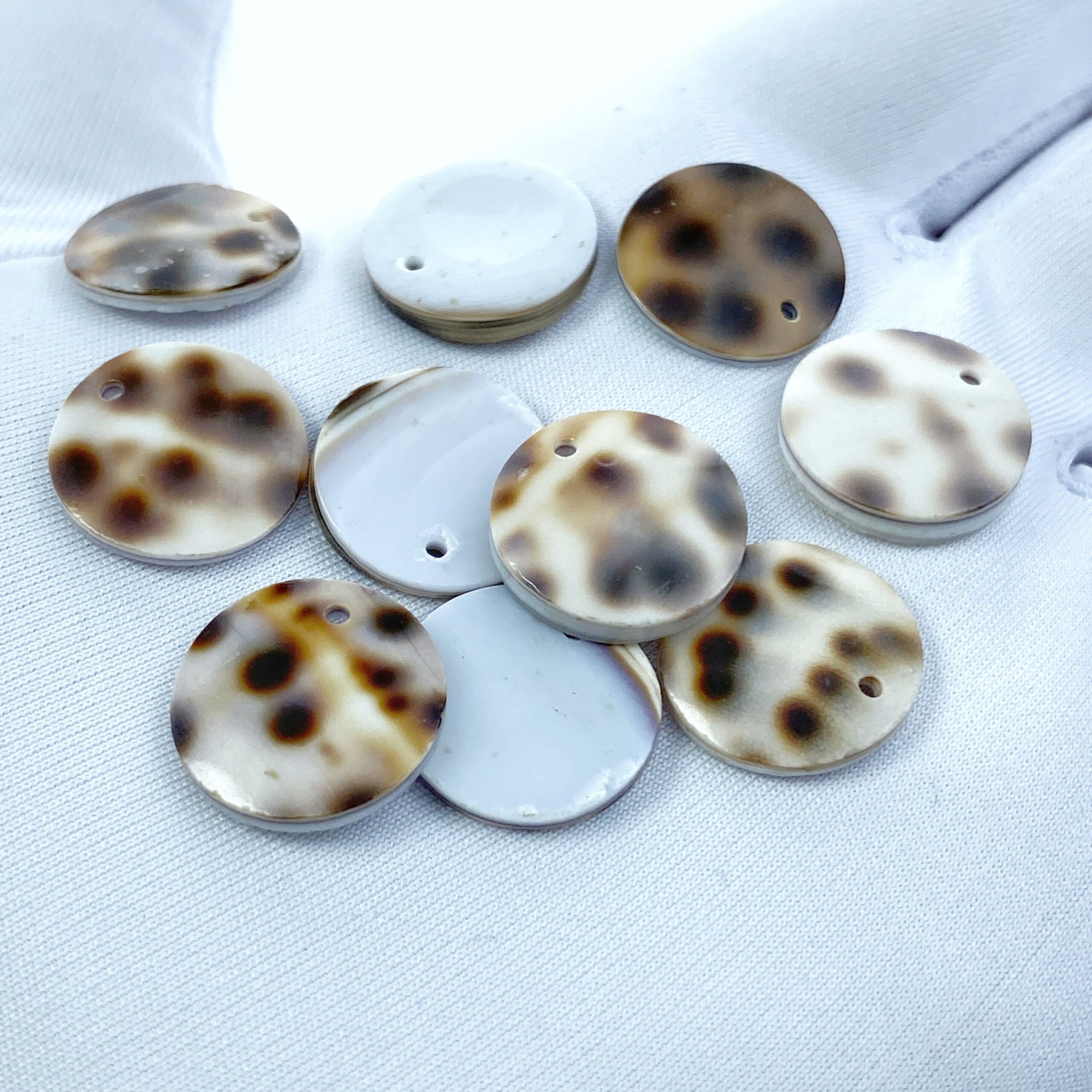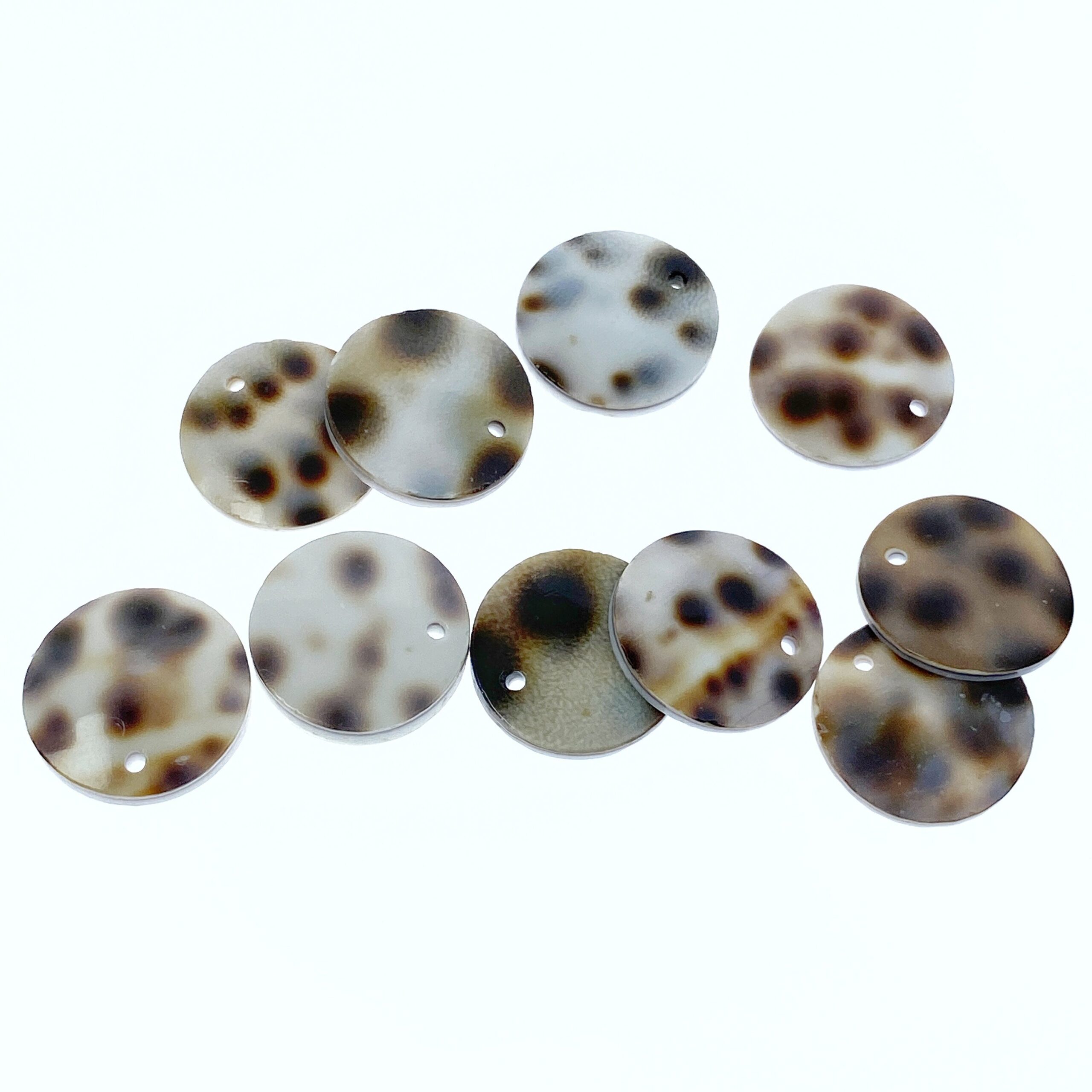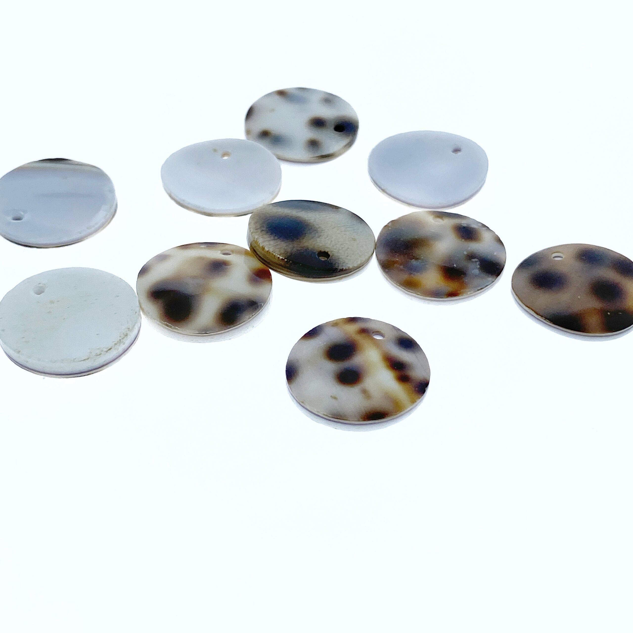 10pc Polka Dot Conus Disc Beads 15mm Natural Shell Round Disc Pendants