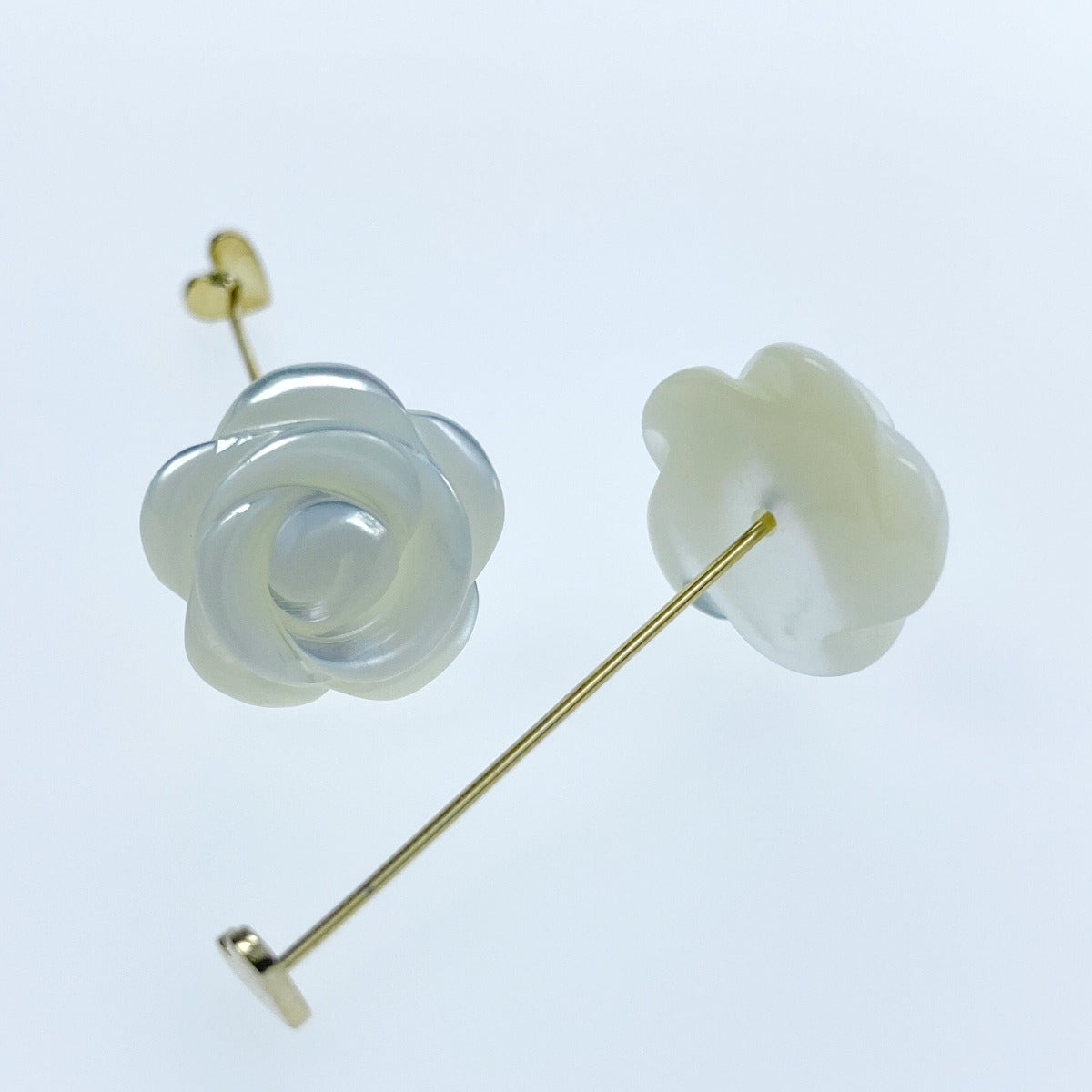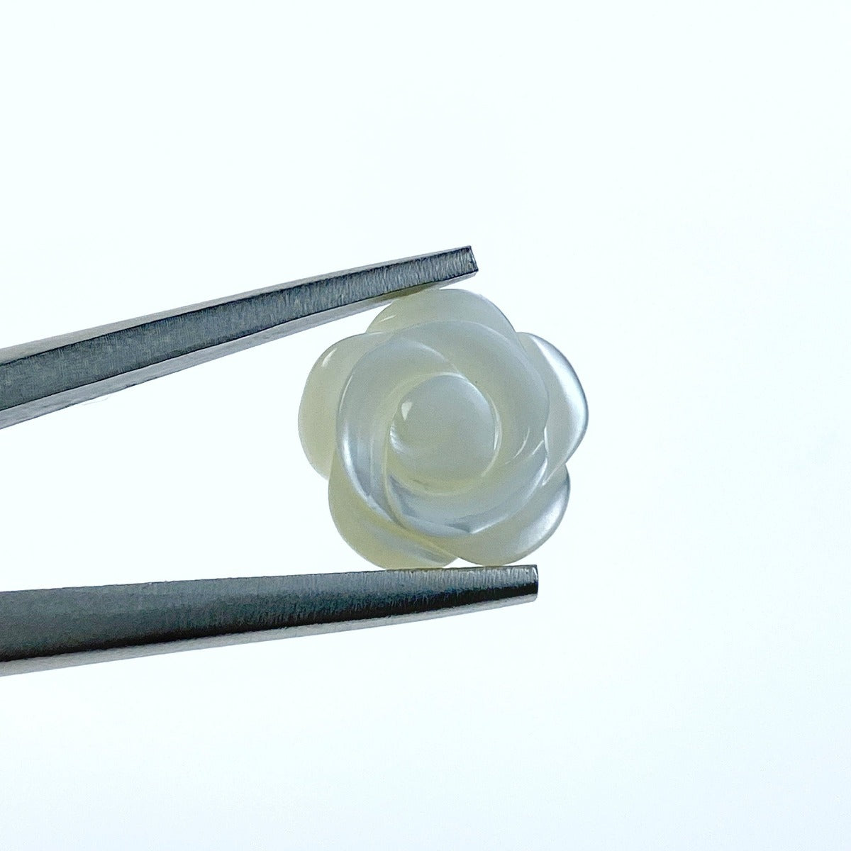 10pc Rose Flower Beads White Mother Of Pearl 15mm Hand Carved