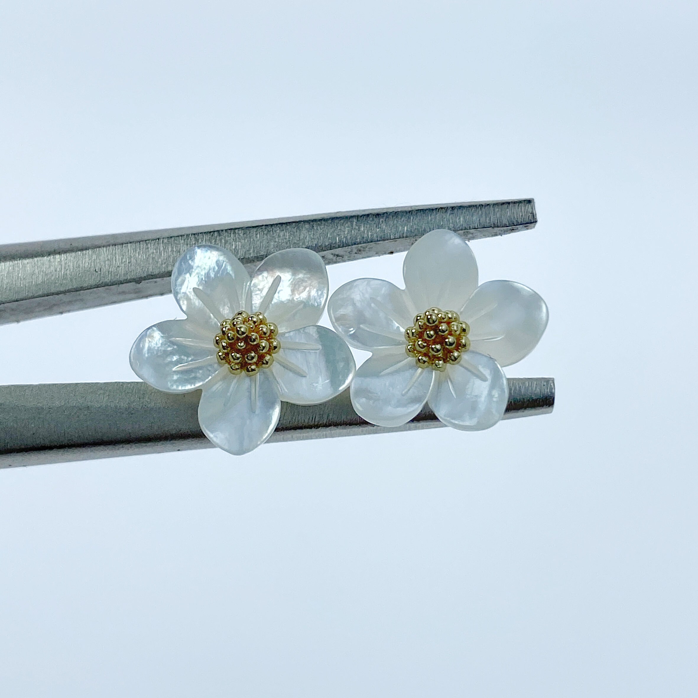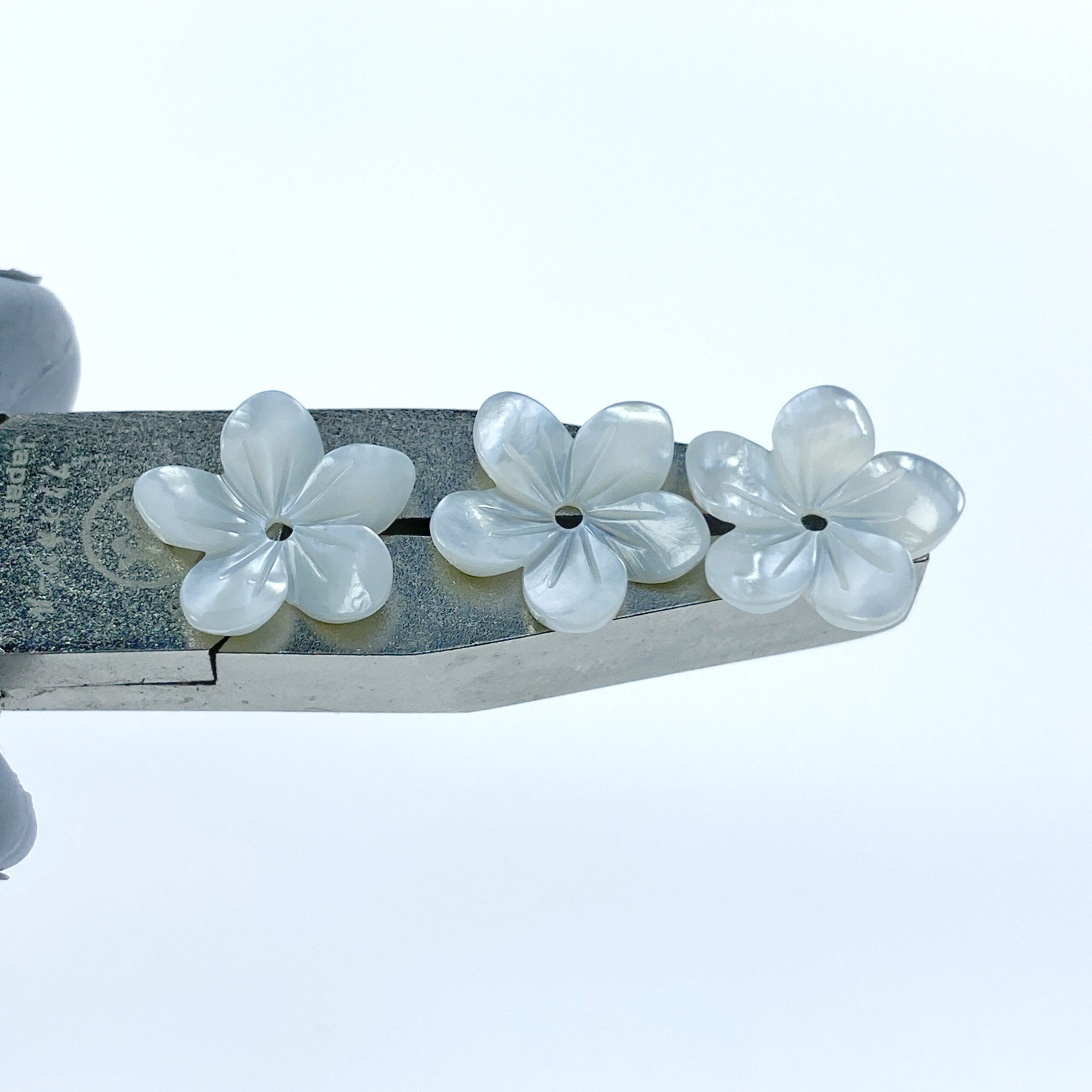10pc Tropical Flower Beads White Mother Of Pearl 12mm Hand Carved WM-0046