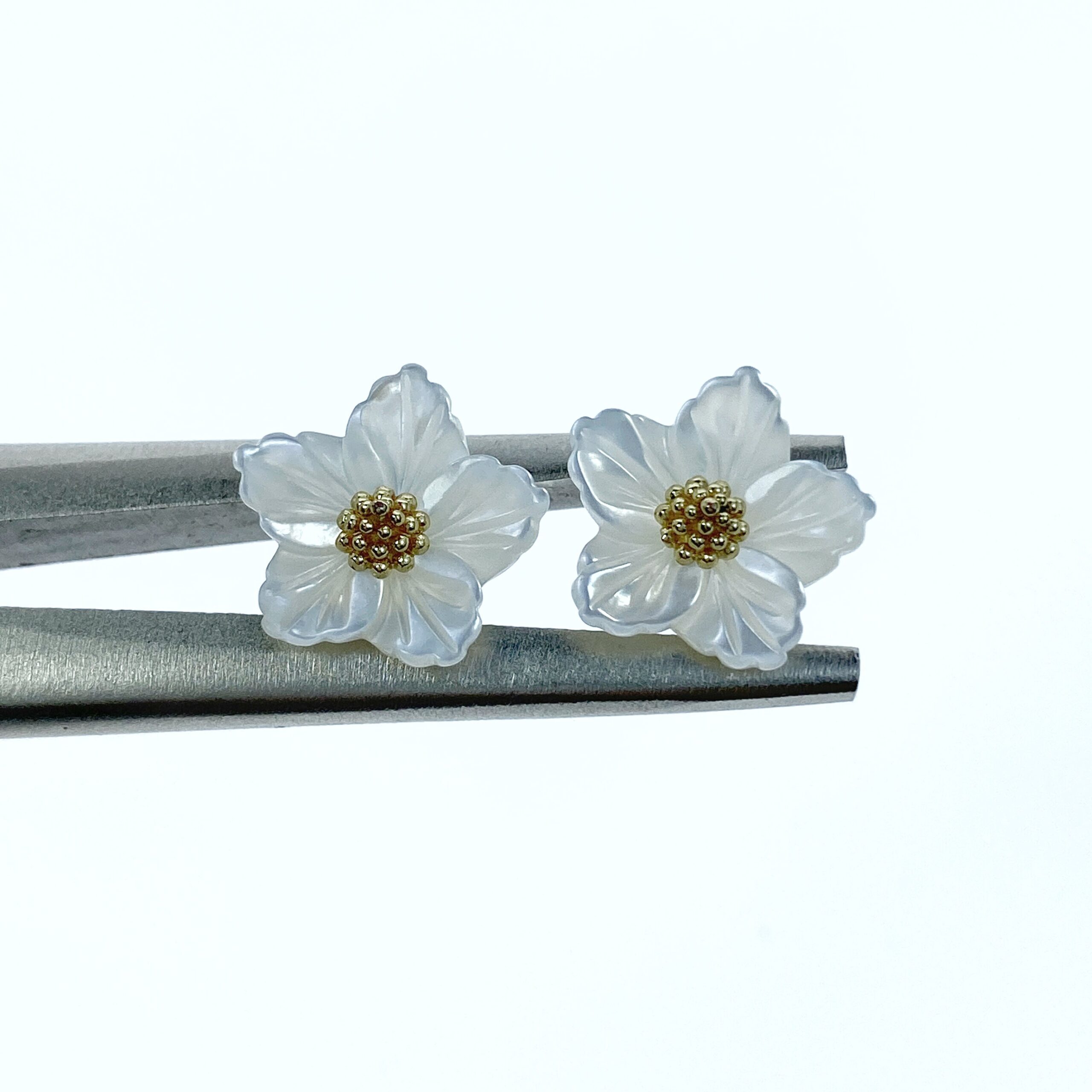 10pc Tropical Flower Beads White Mother Of Pearl 12mm Hand Carved WM-0057