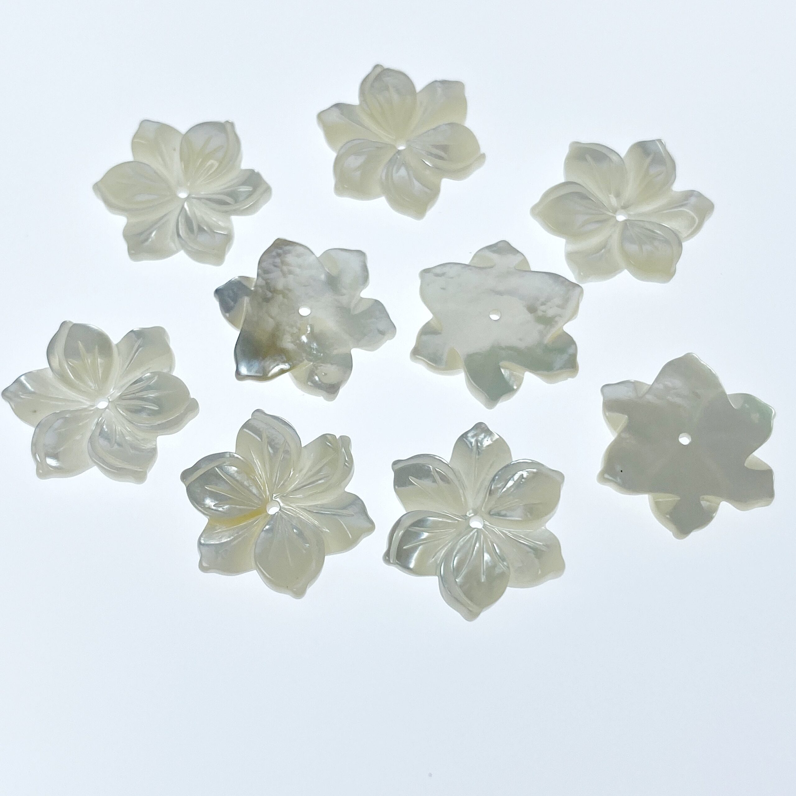 10pc Tropical Flower Beads White Mother Of Pearl 15mm Hand Carved WM-0183