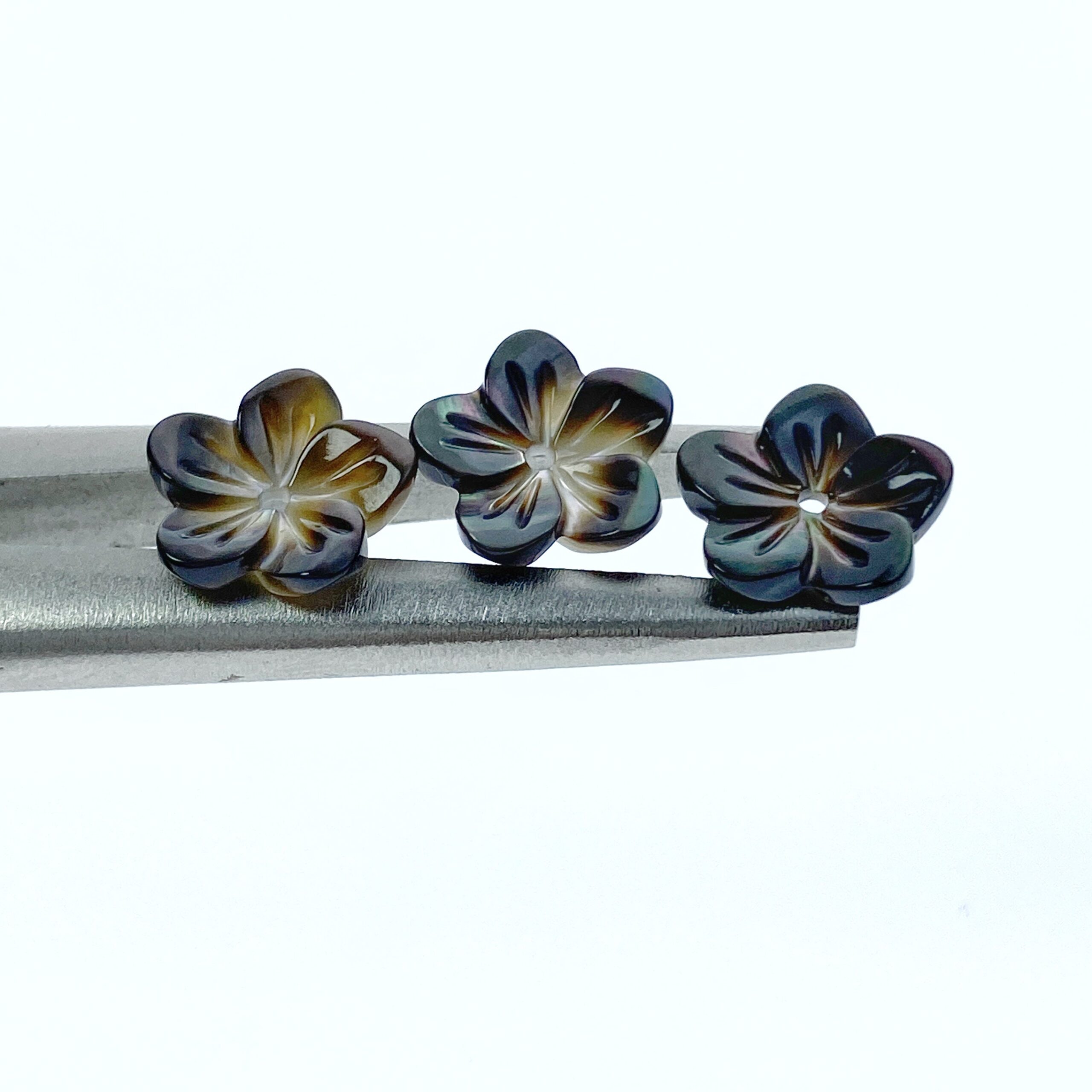 10pc Tropical Flower Black Mother Of Pearl Beads 10mm Hand Carved Hawaiian Flower Charms BM-0020