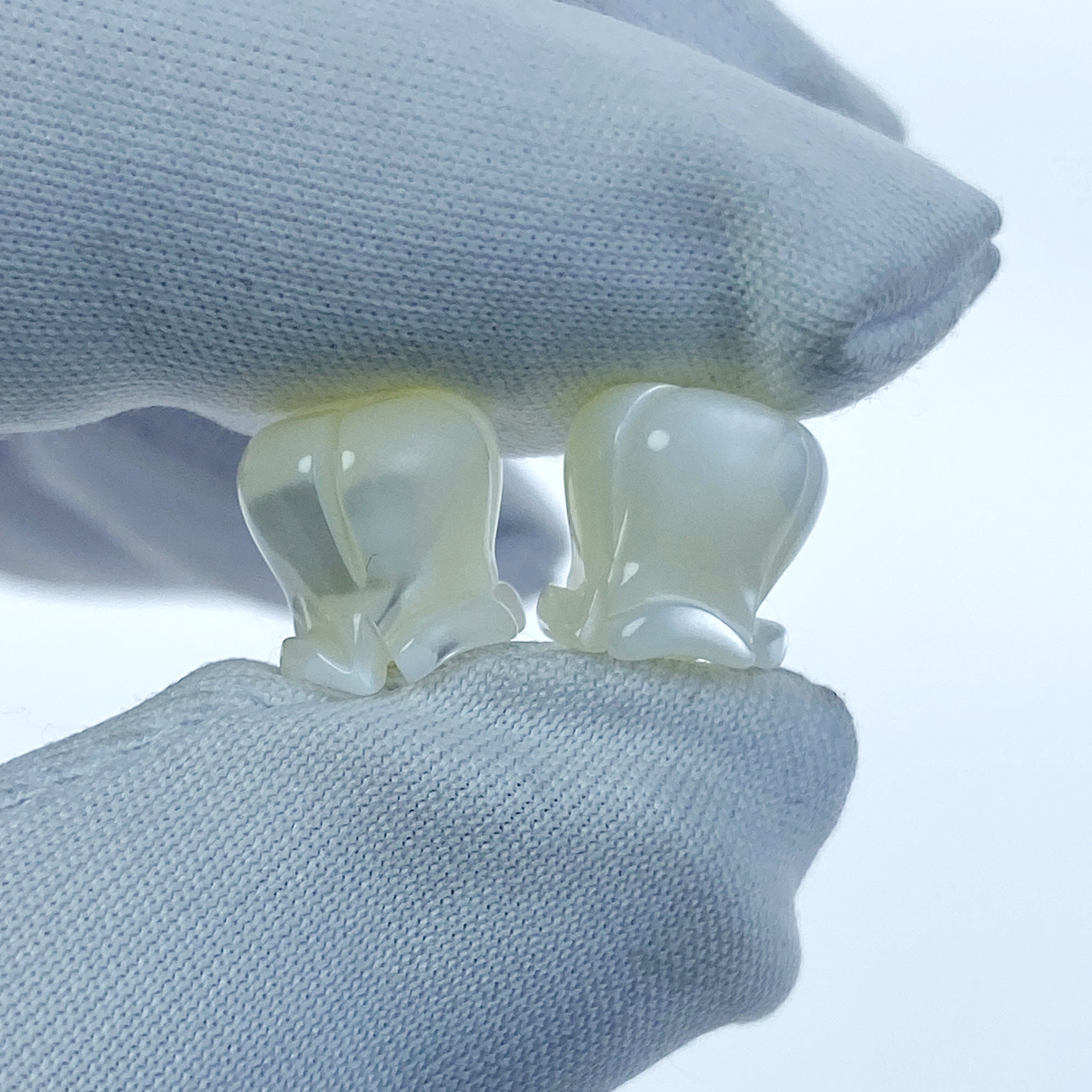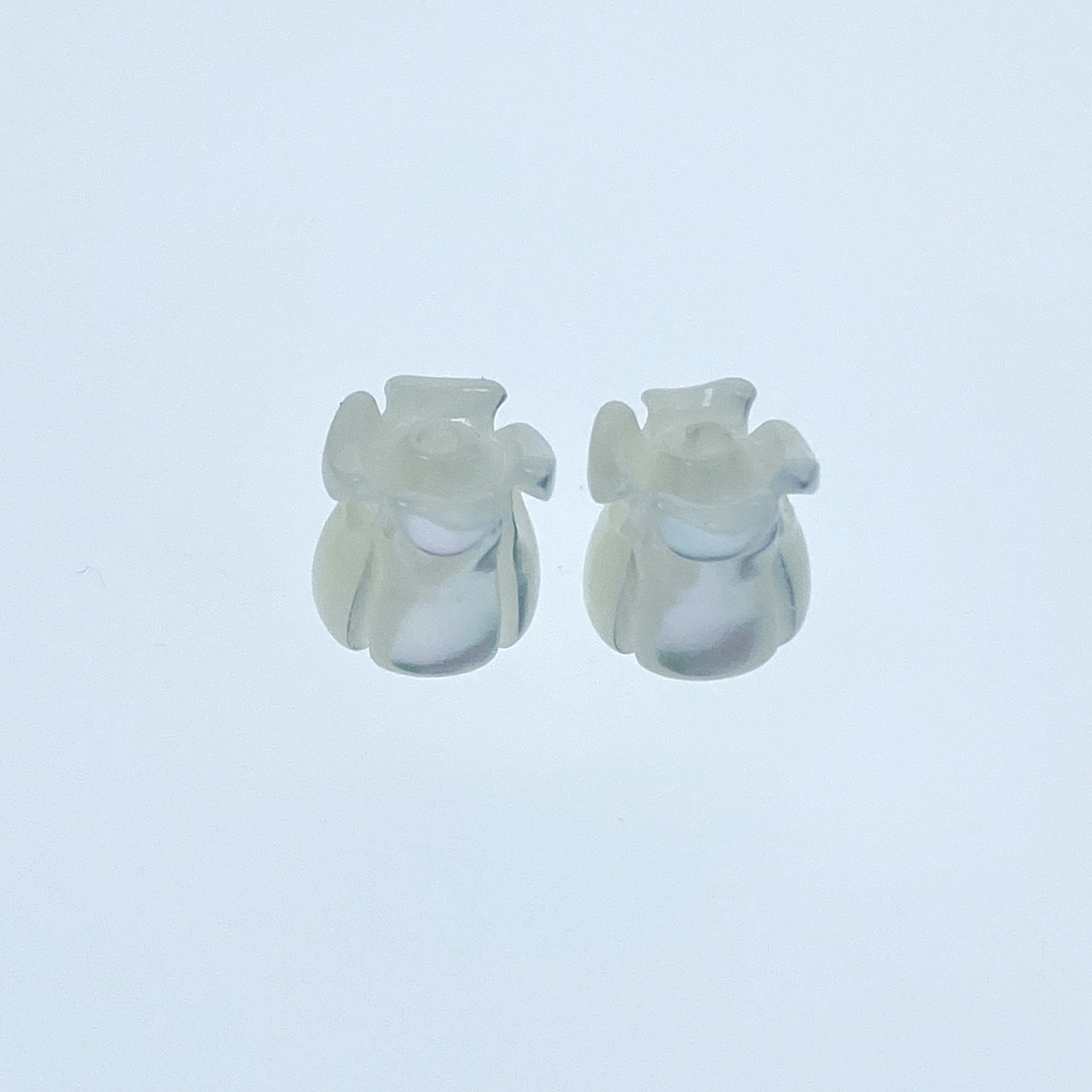 10pc Tulip Flower Beads White Mother Of Pearl Hand Carved 8mm WM-0036