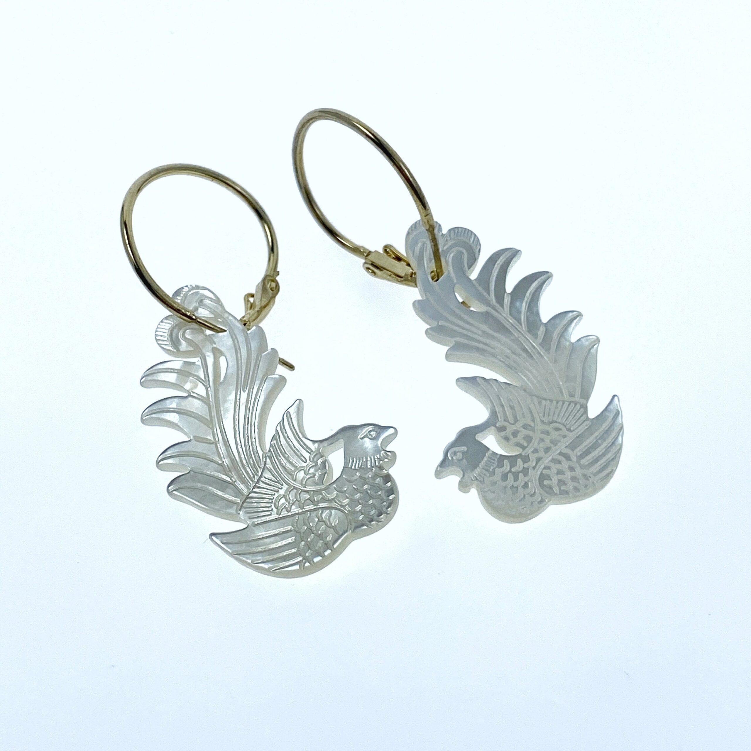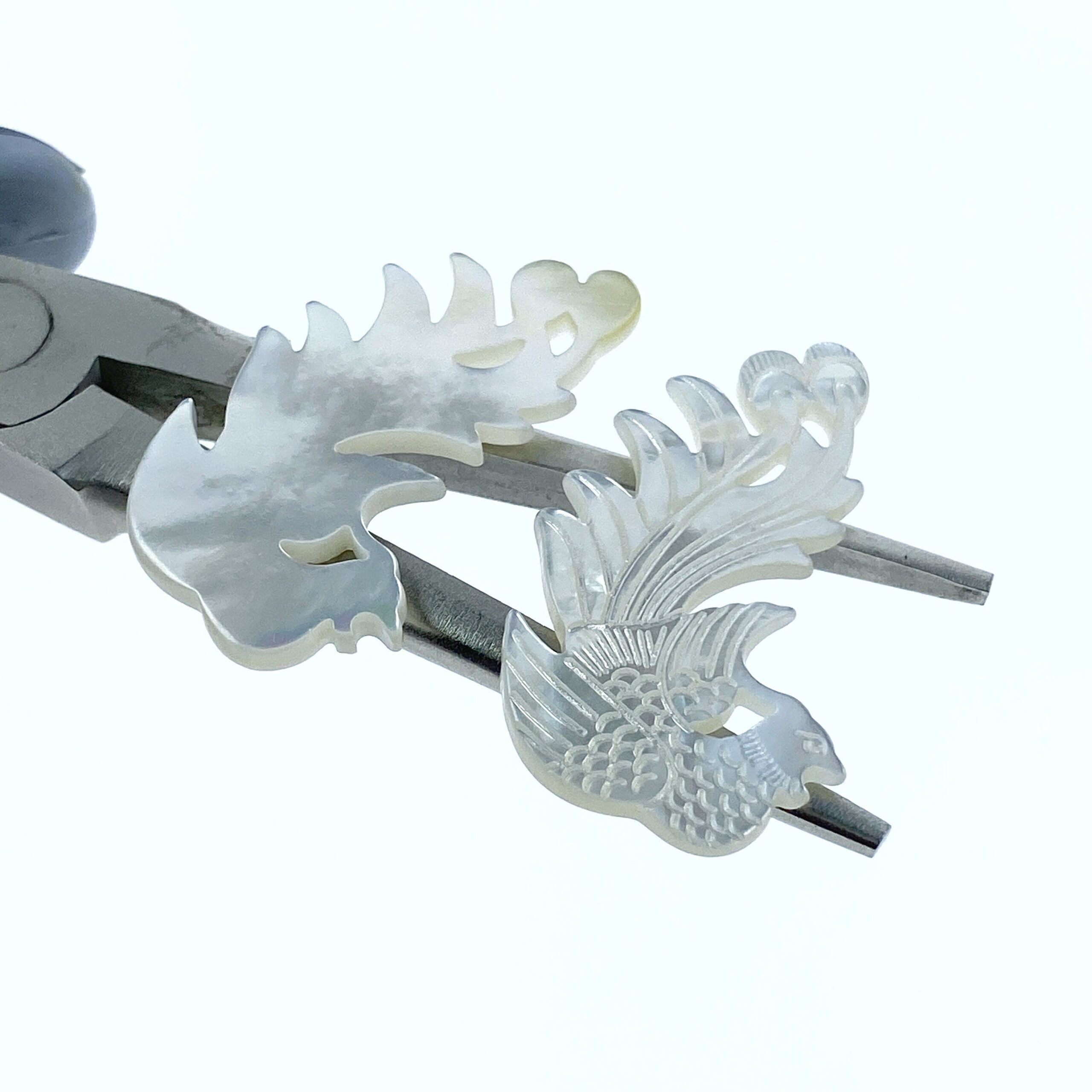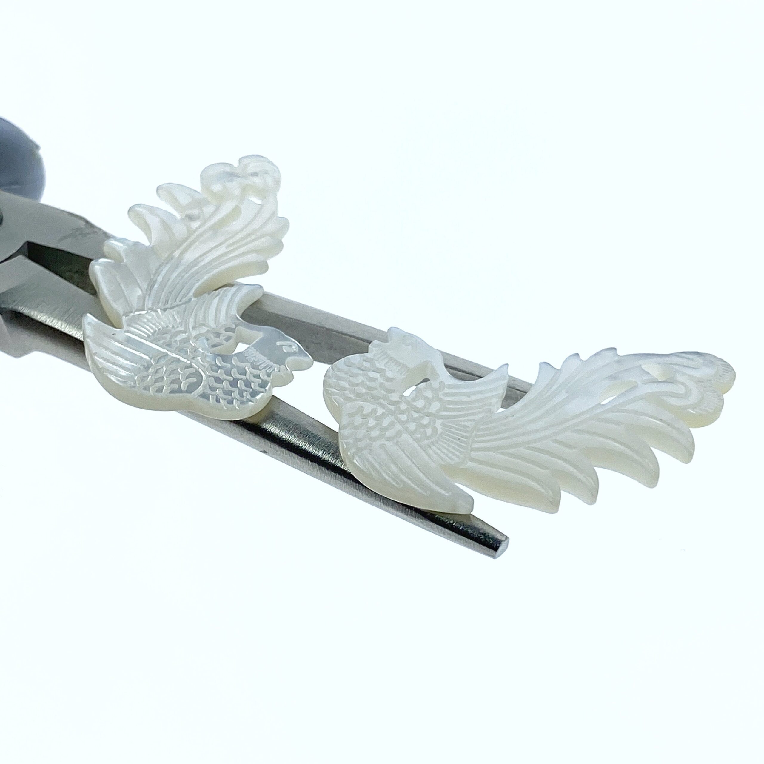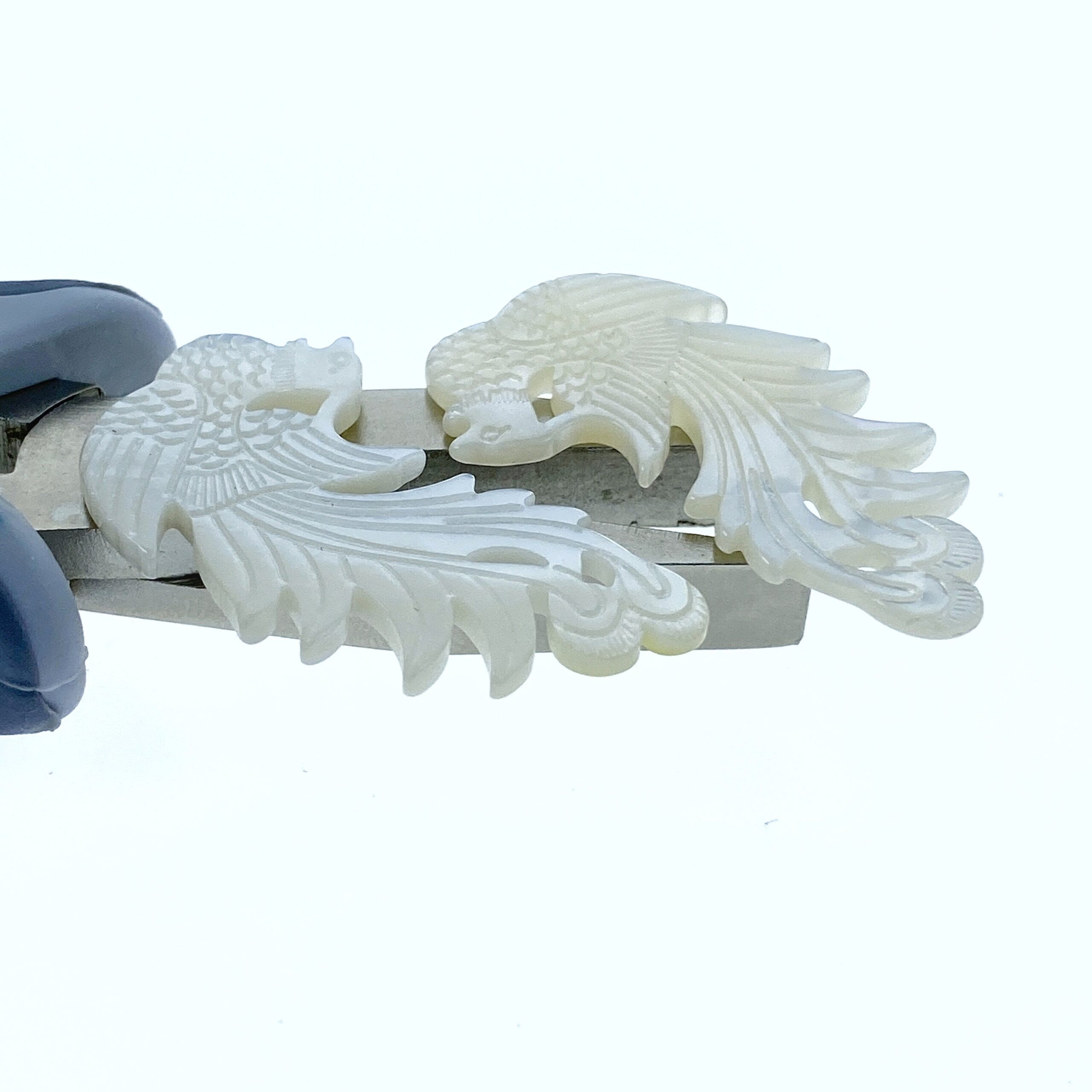 1Pair 21mm x 35mm Hand Carved White Mother of Pearl Phoenix Pendants