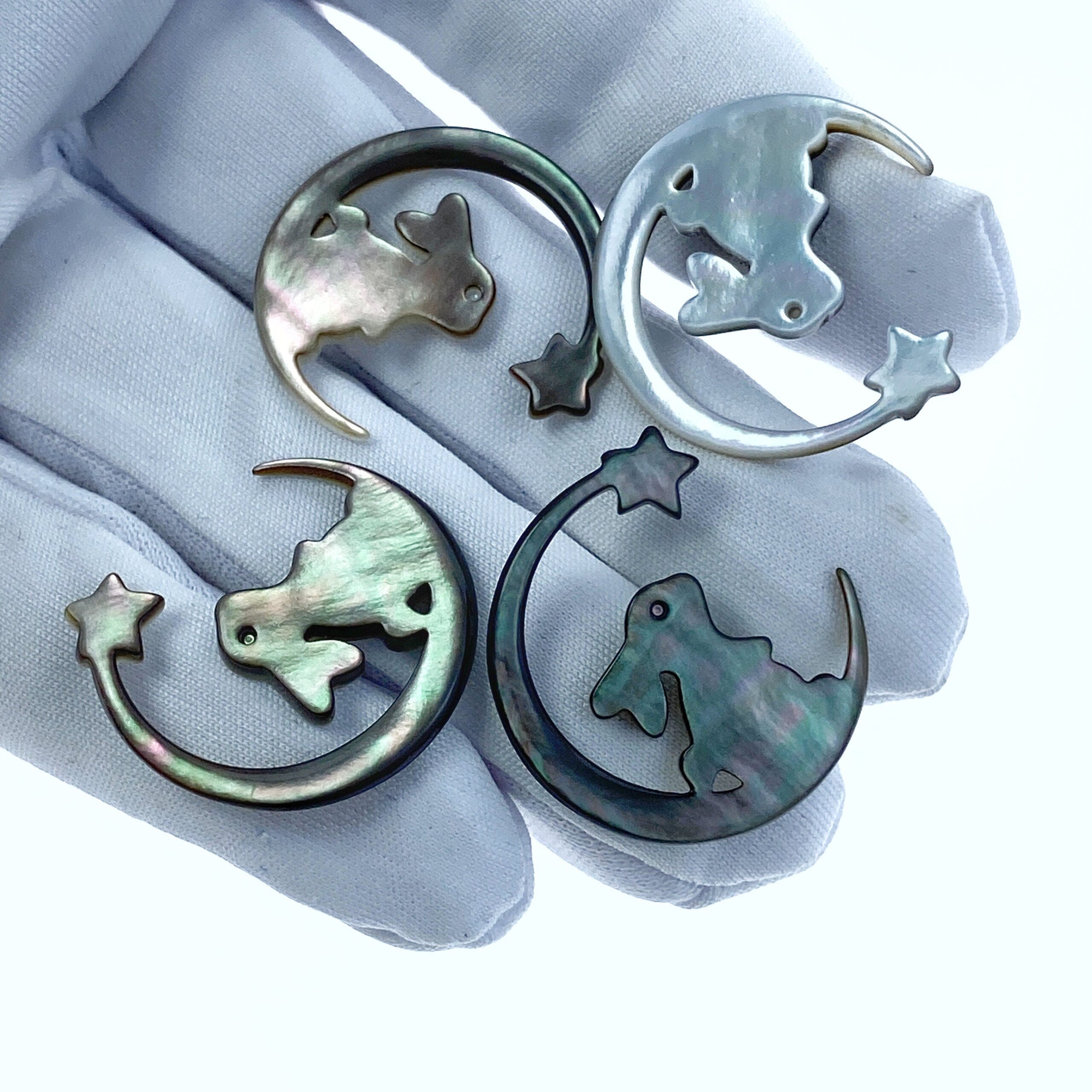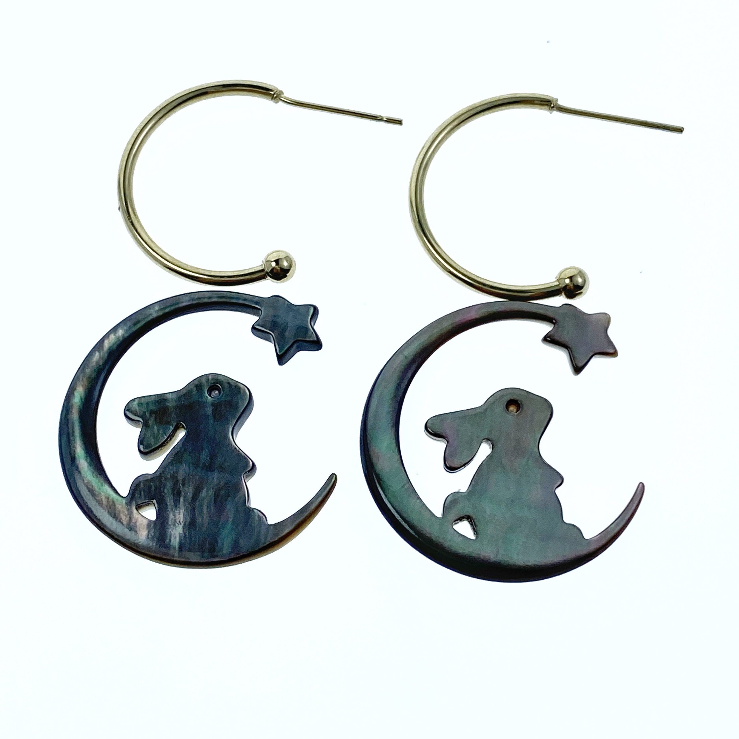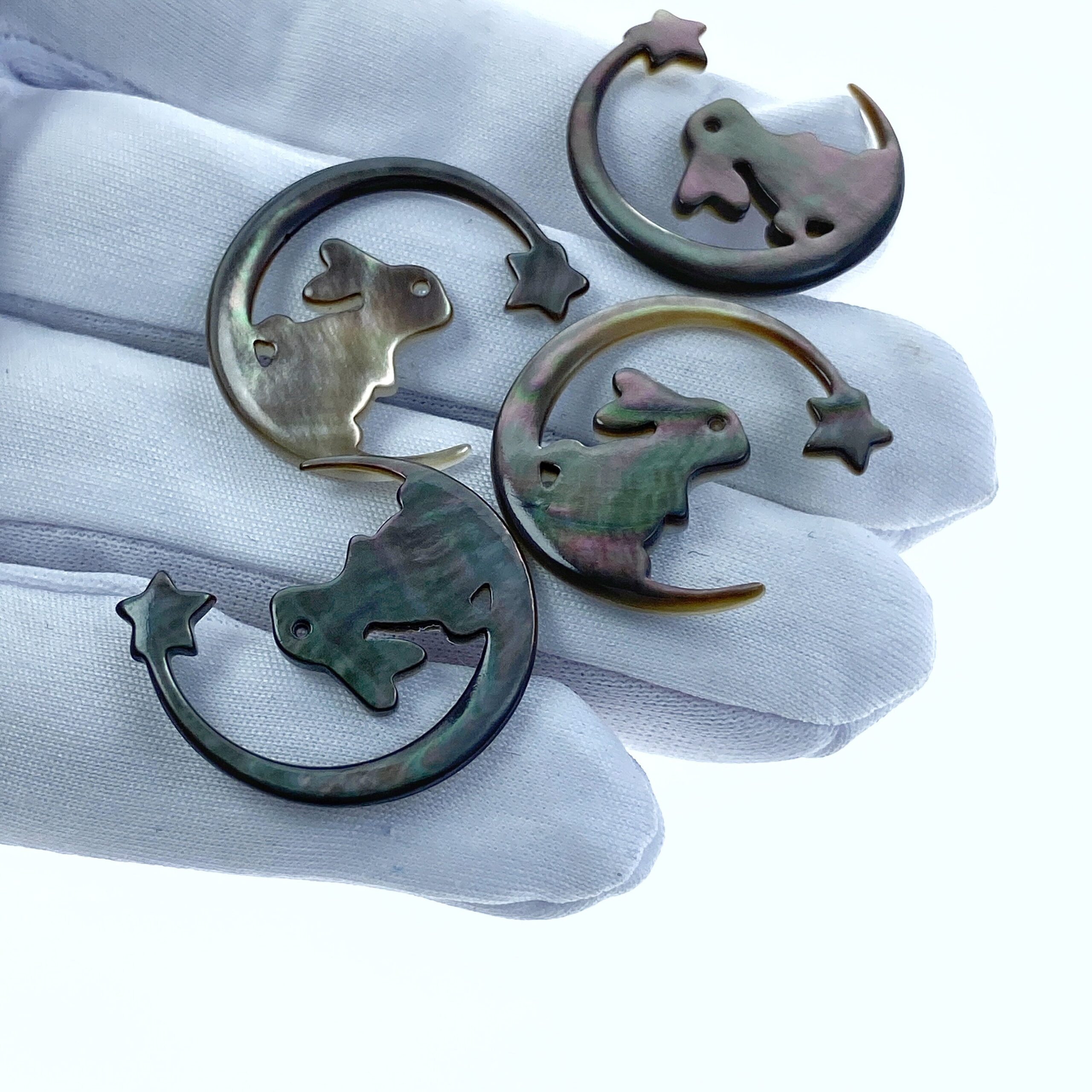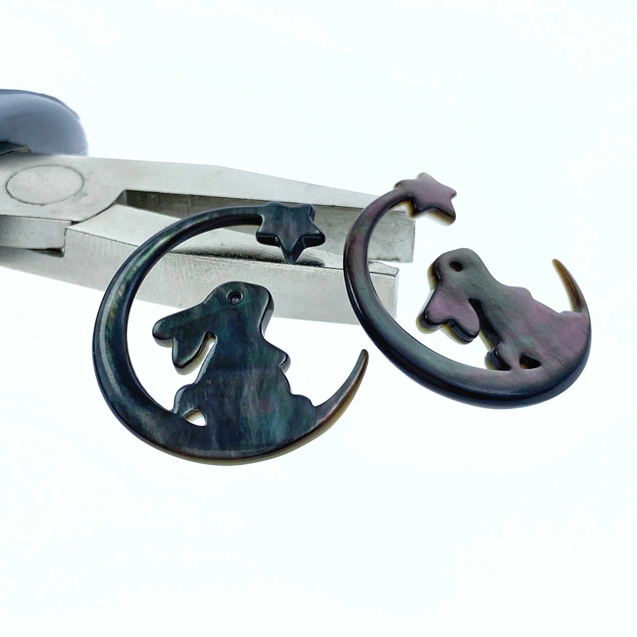 1pair 24mm x 25mm Black Mother of Pearl Rabbit With Star Pendants BM-0006