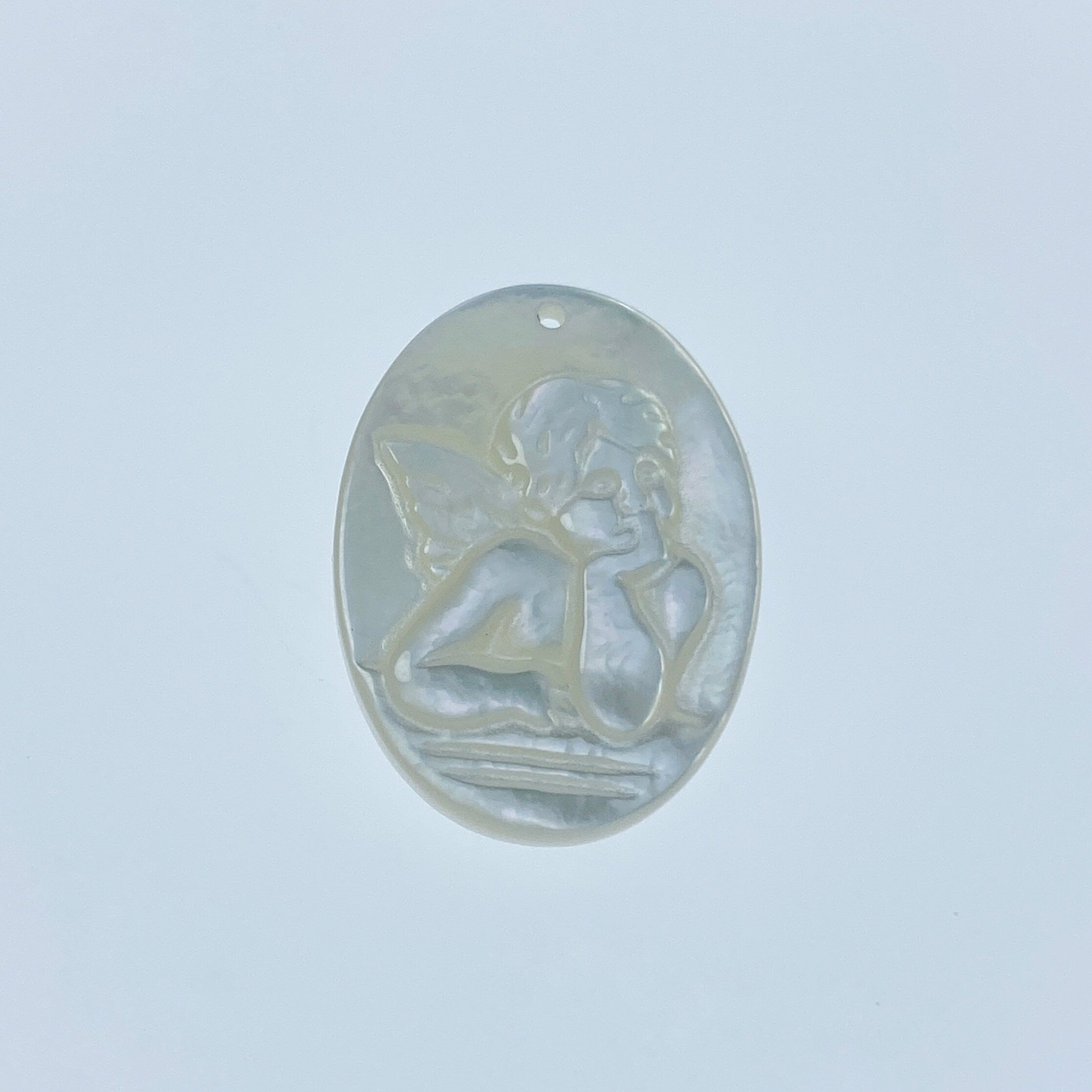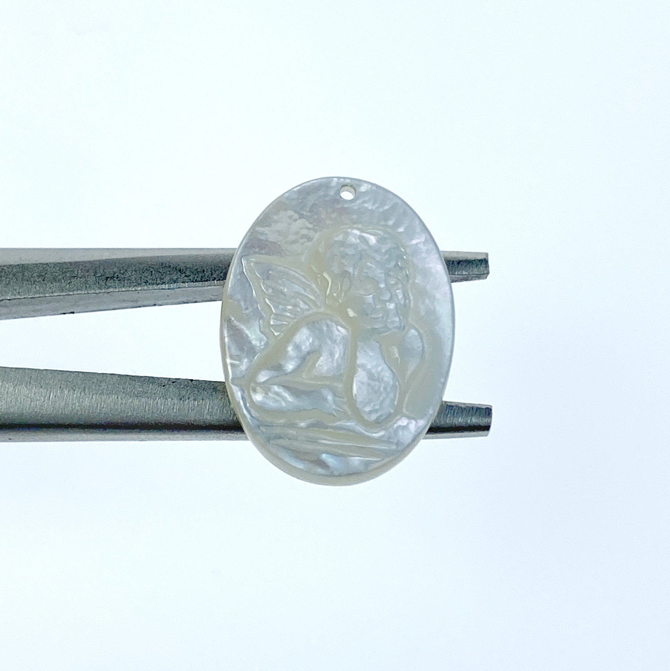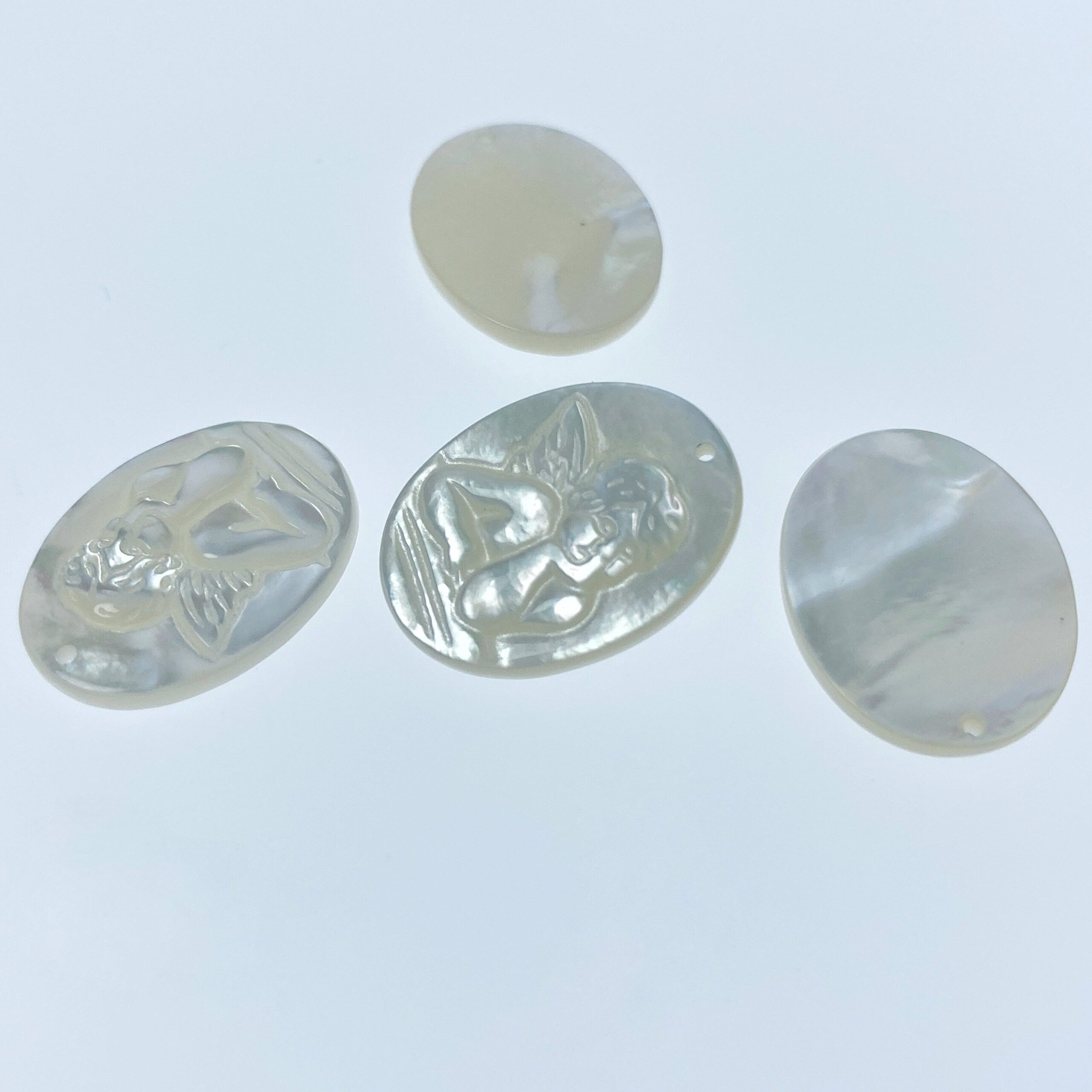 2pc 15mm x 20mm Organic White Mother of Pearl Guardian Angel Oval Pendants WM-0116