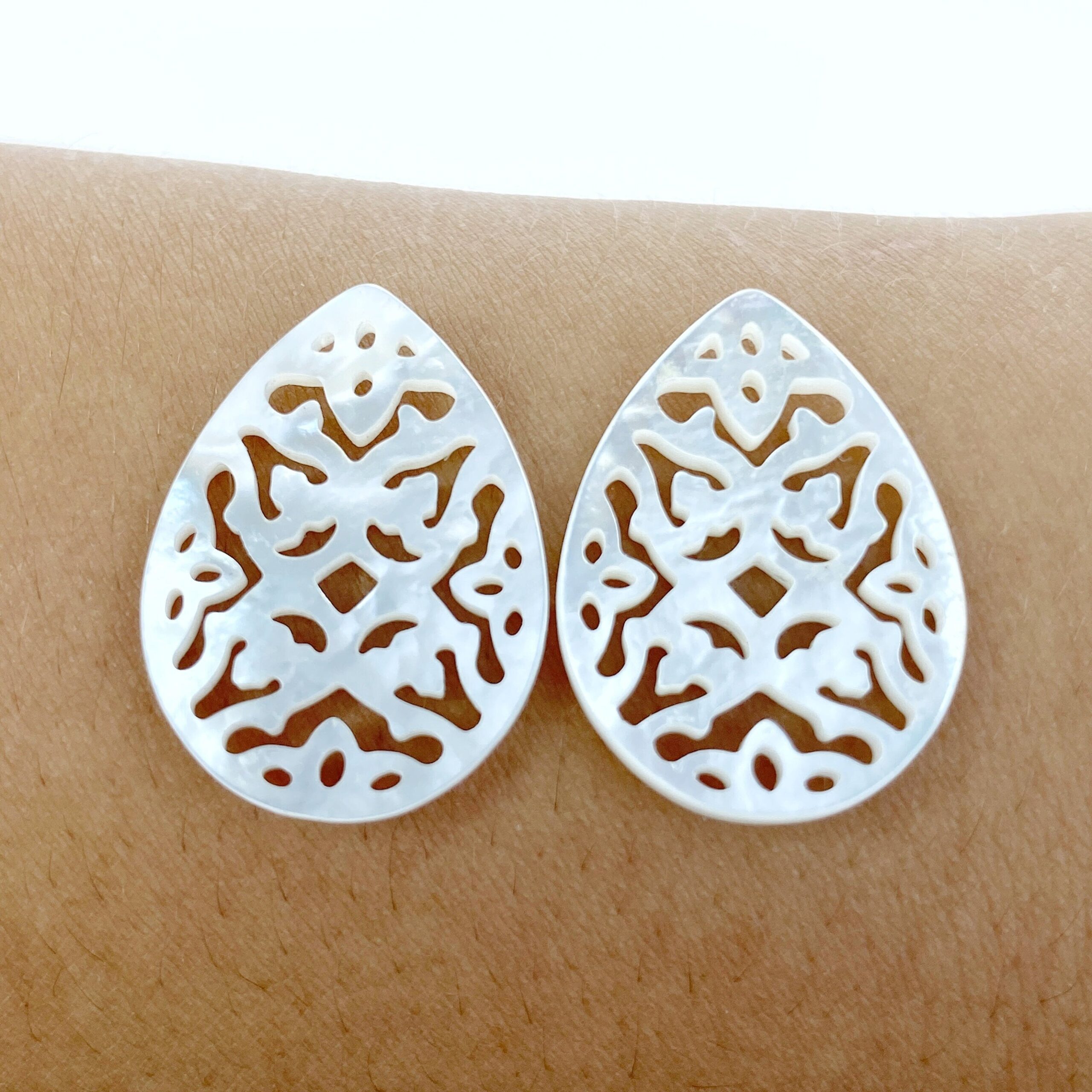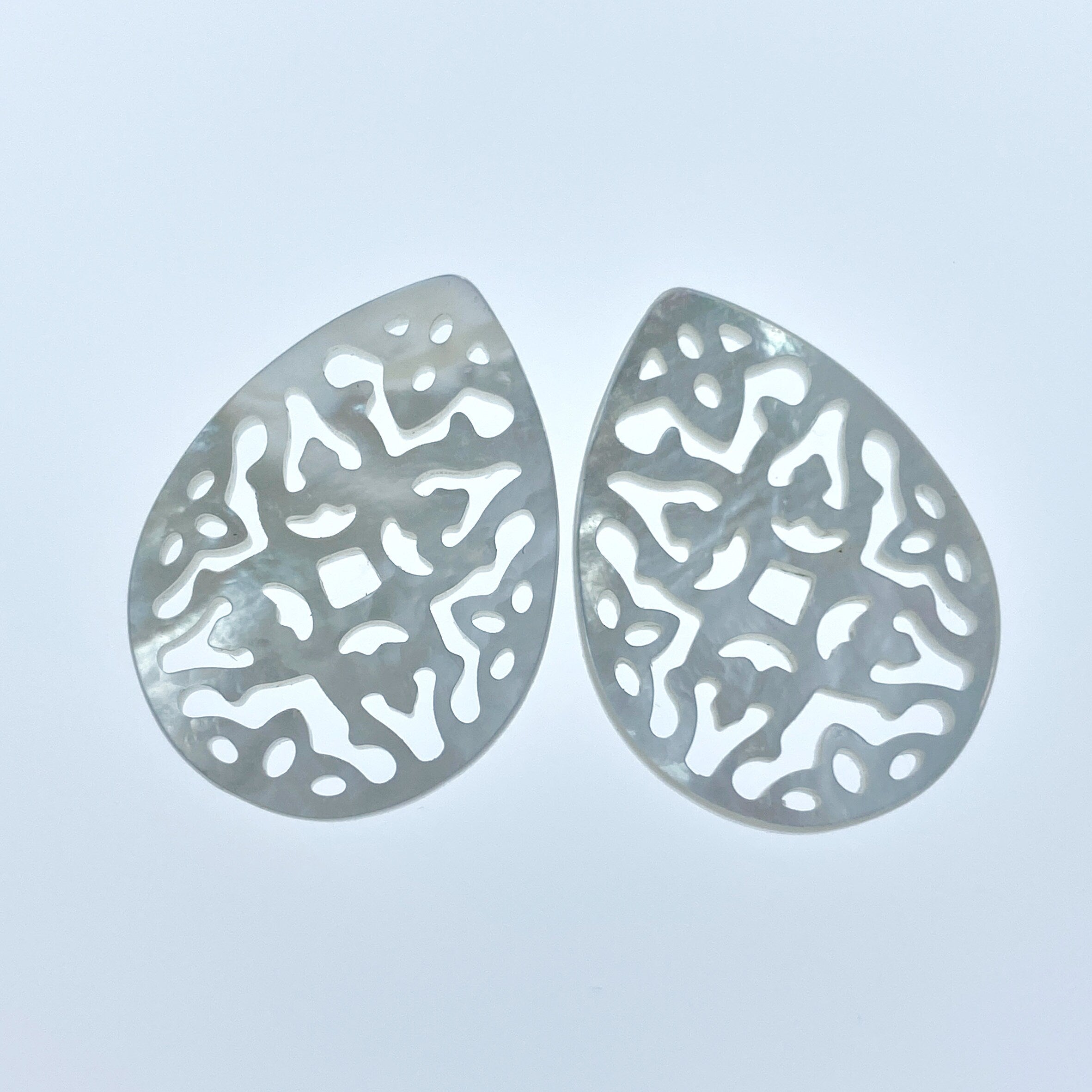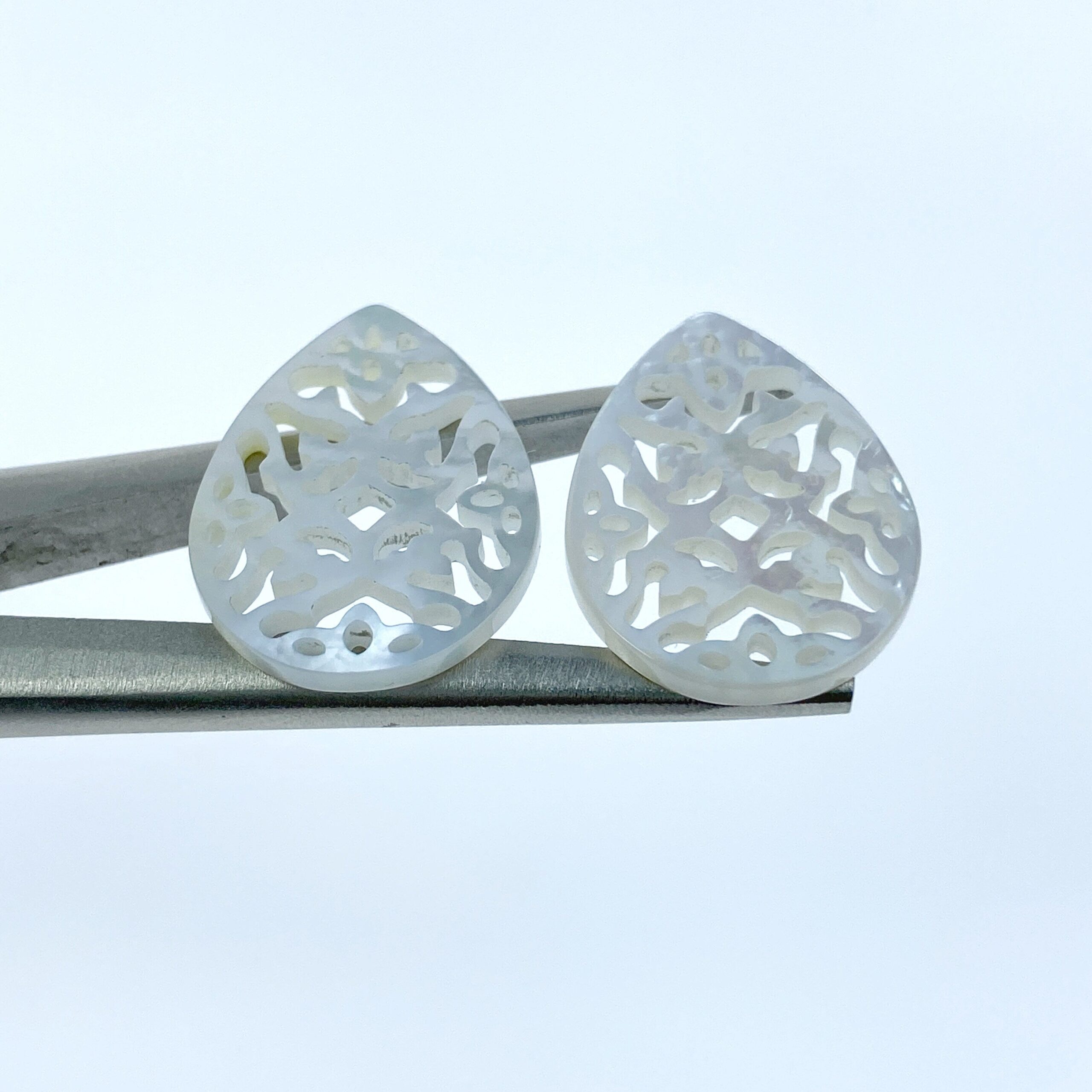 2pc 17mm x 25mm Natural White Mother of Pearl Filigree Drop Shape Pendants WM-0147