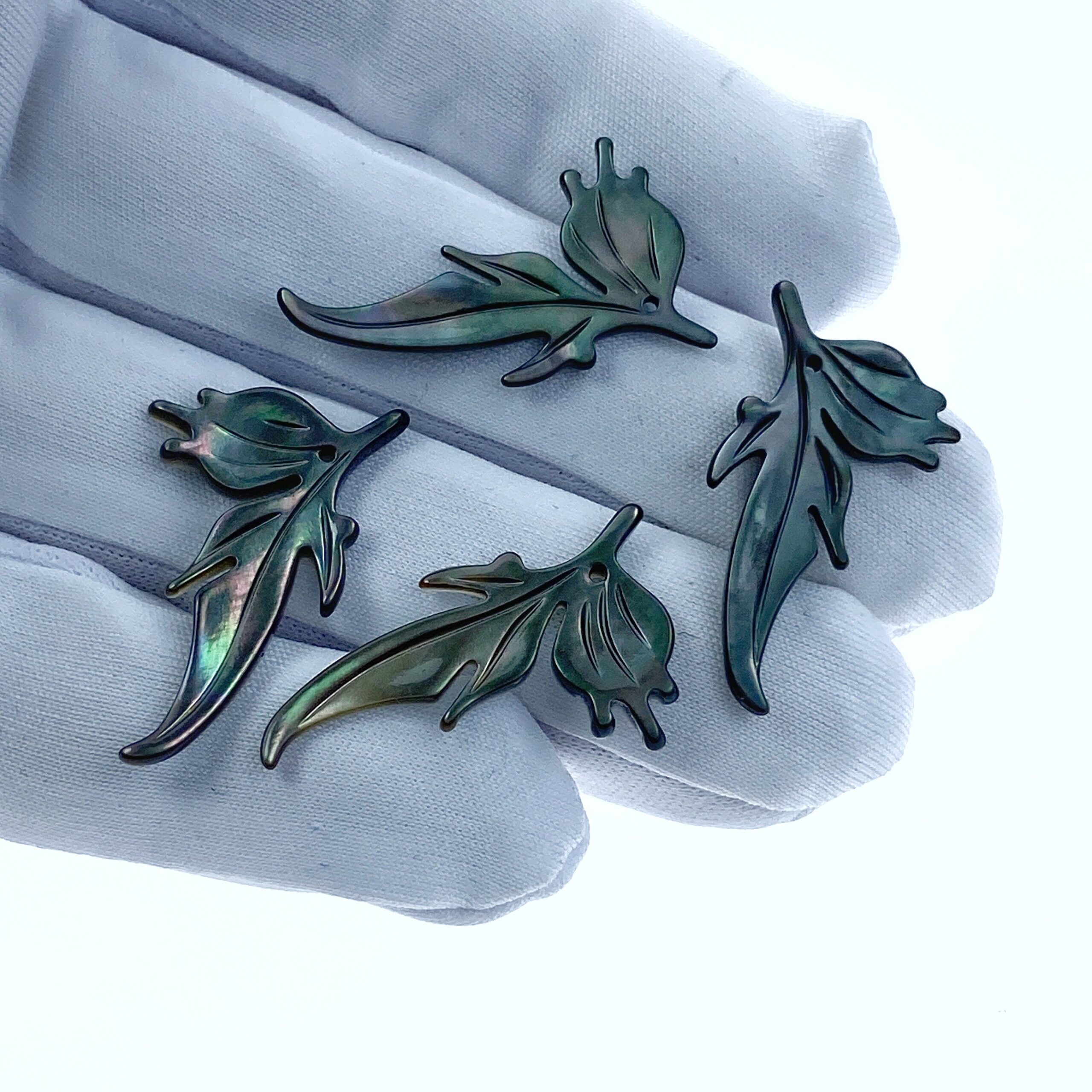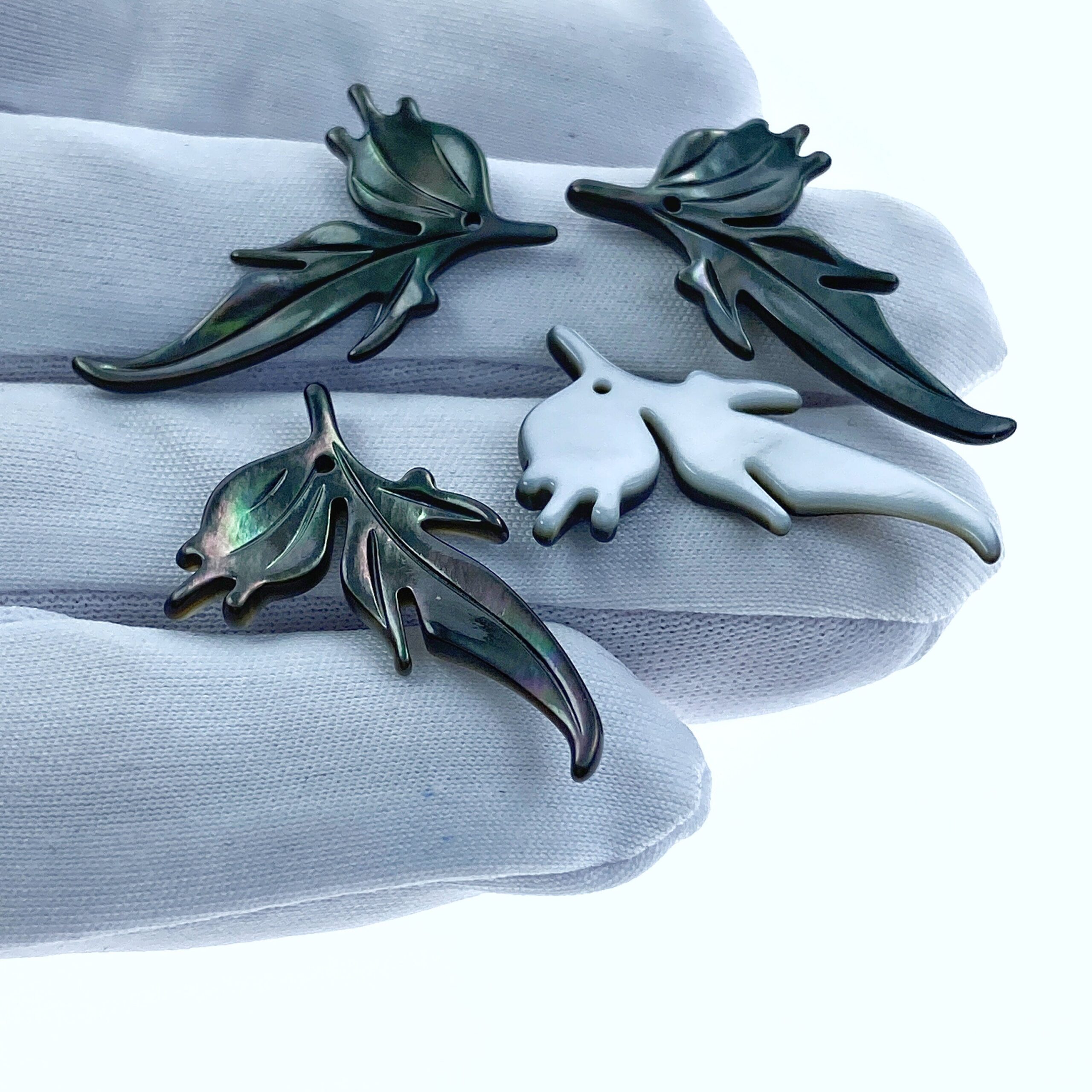 2pc 17mm x 29mm Black Mother of Pearl Hand Carved Leaf Pendants BM-0018