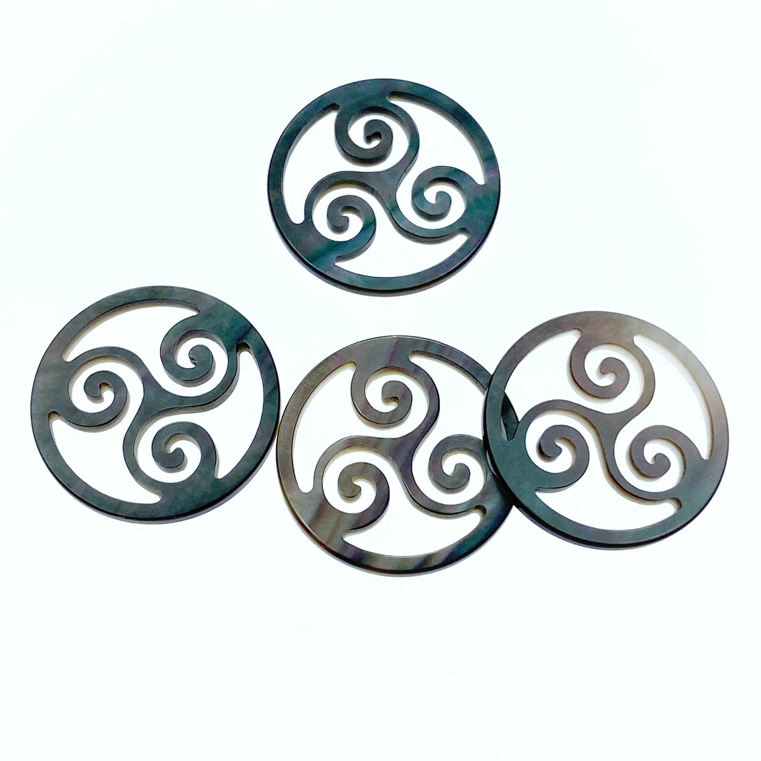 2pc 18mm Black Mother of Pearl Three Swirl Round Connectors Pendants BM-0058