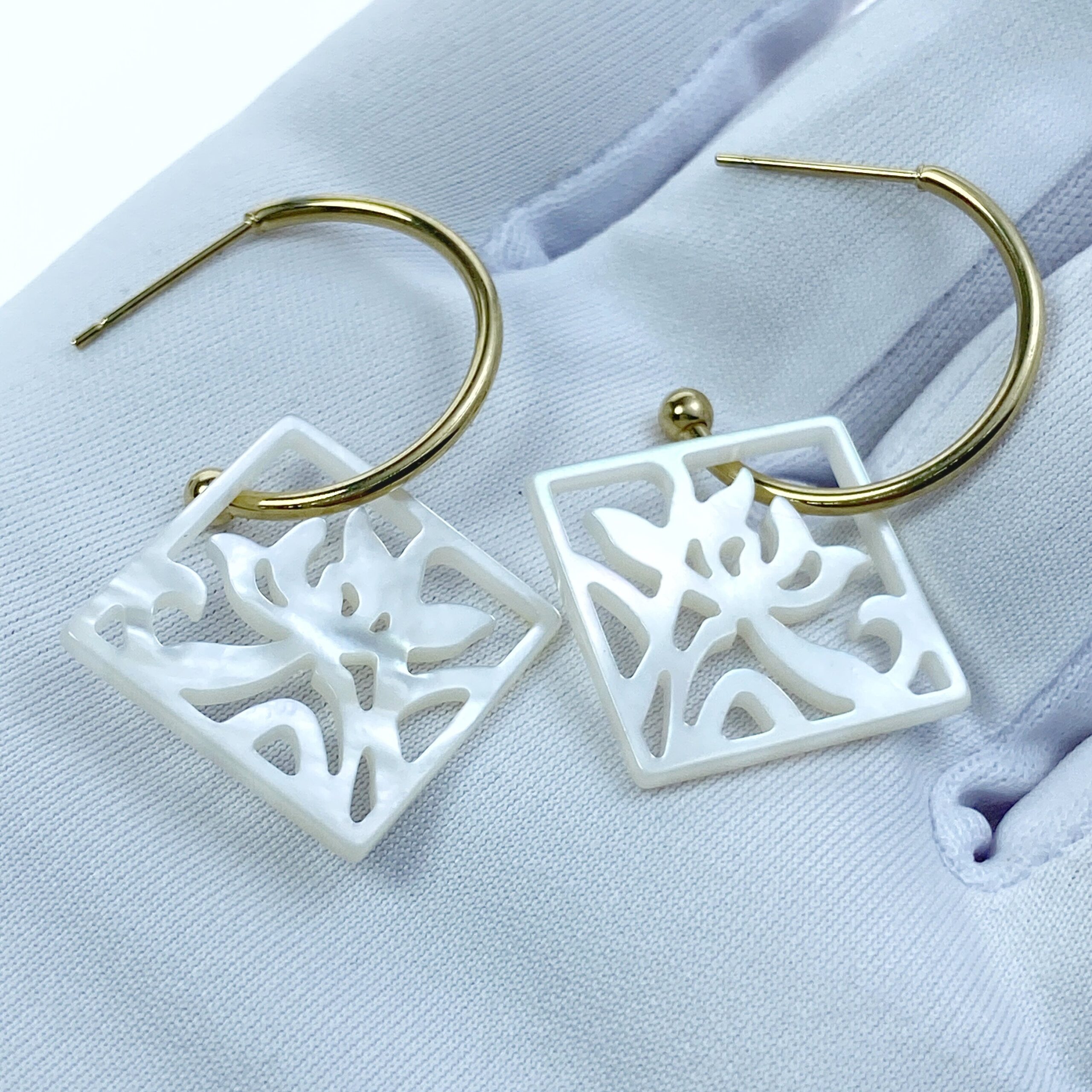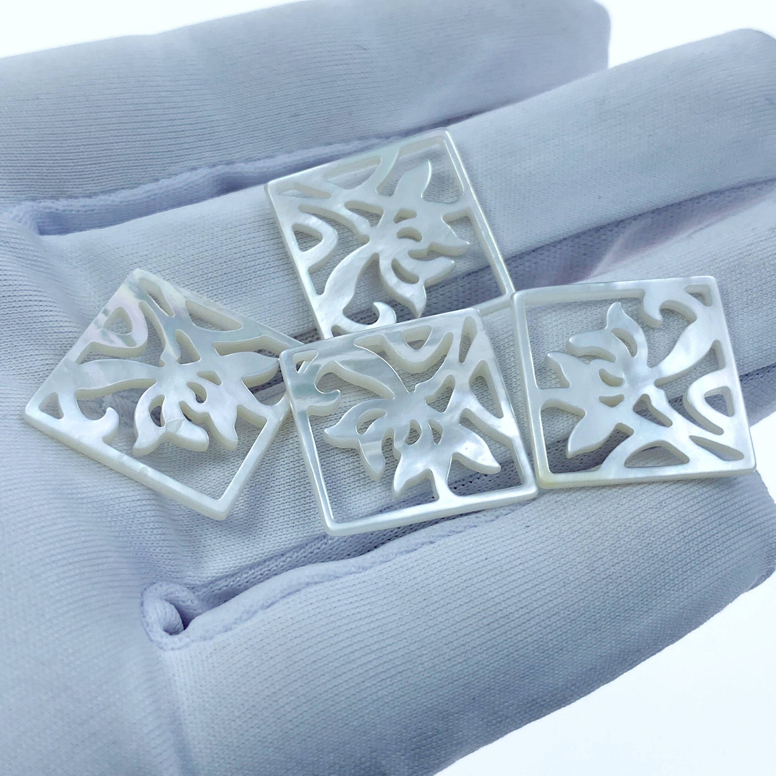 Beautiful white mother of pearl beads are hand carved using fully organic raw materials. All natural product, all pieces are as singular and unique as you.