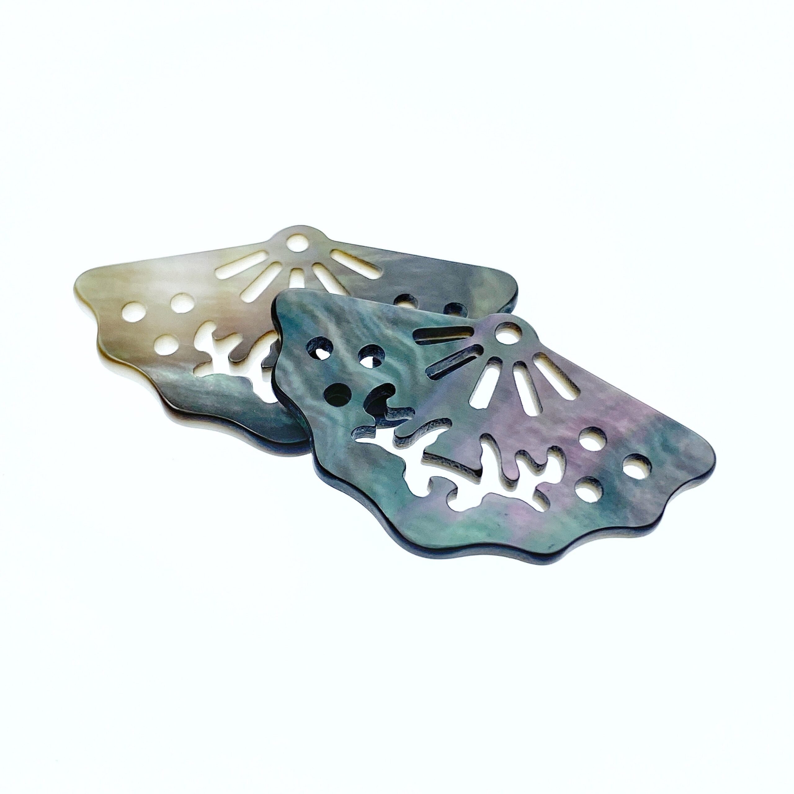 2pc 18mm x 30mm Natural Black Mother of Pearl Filigree Fan Shape Pendants BM-0095
