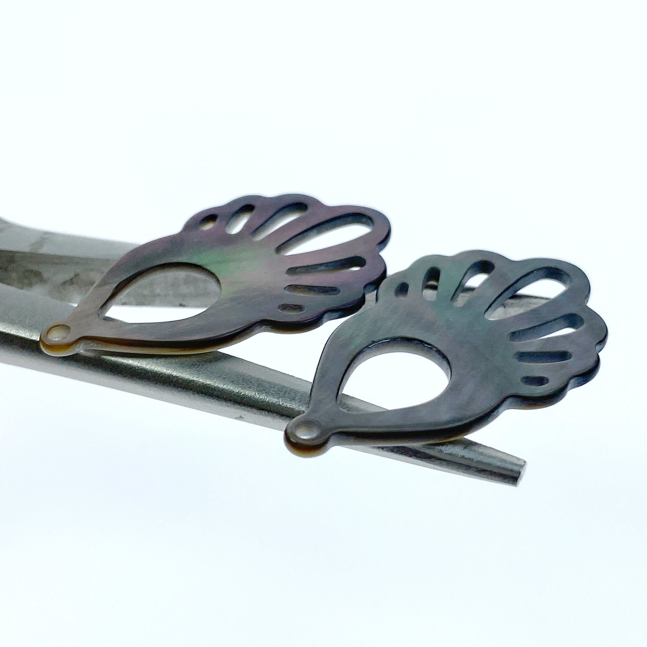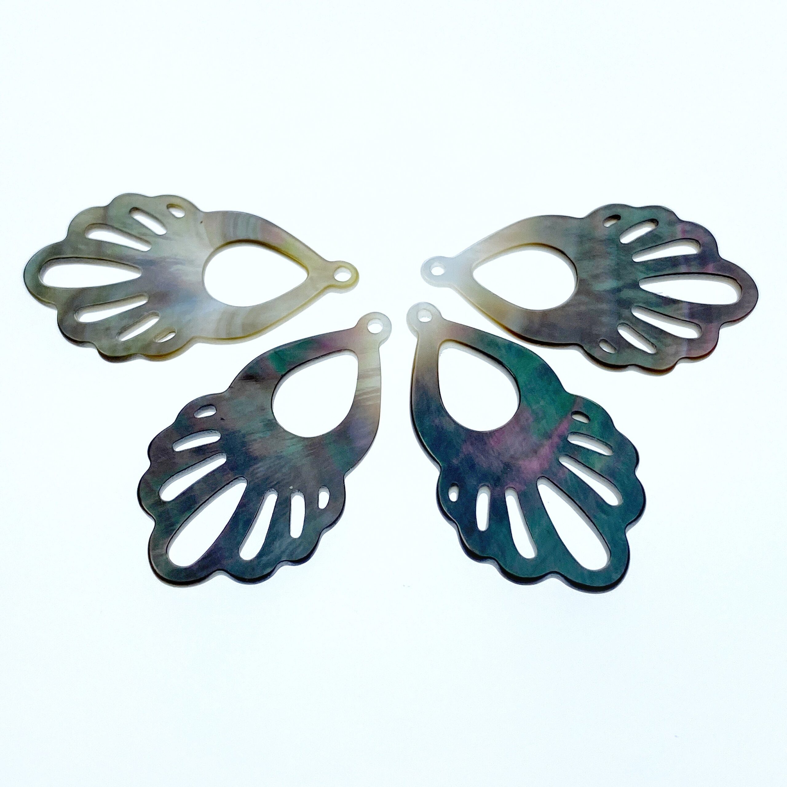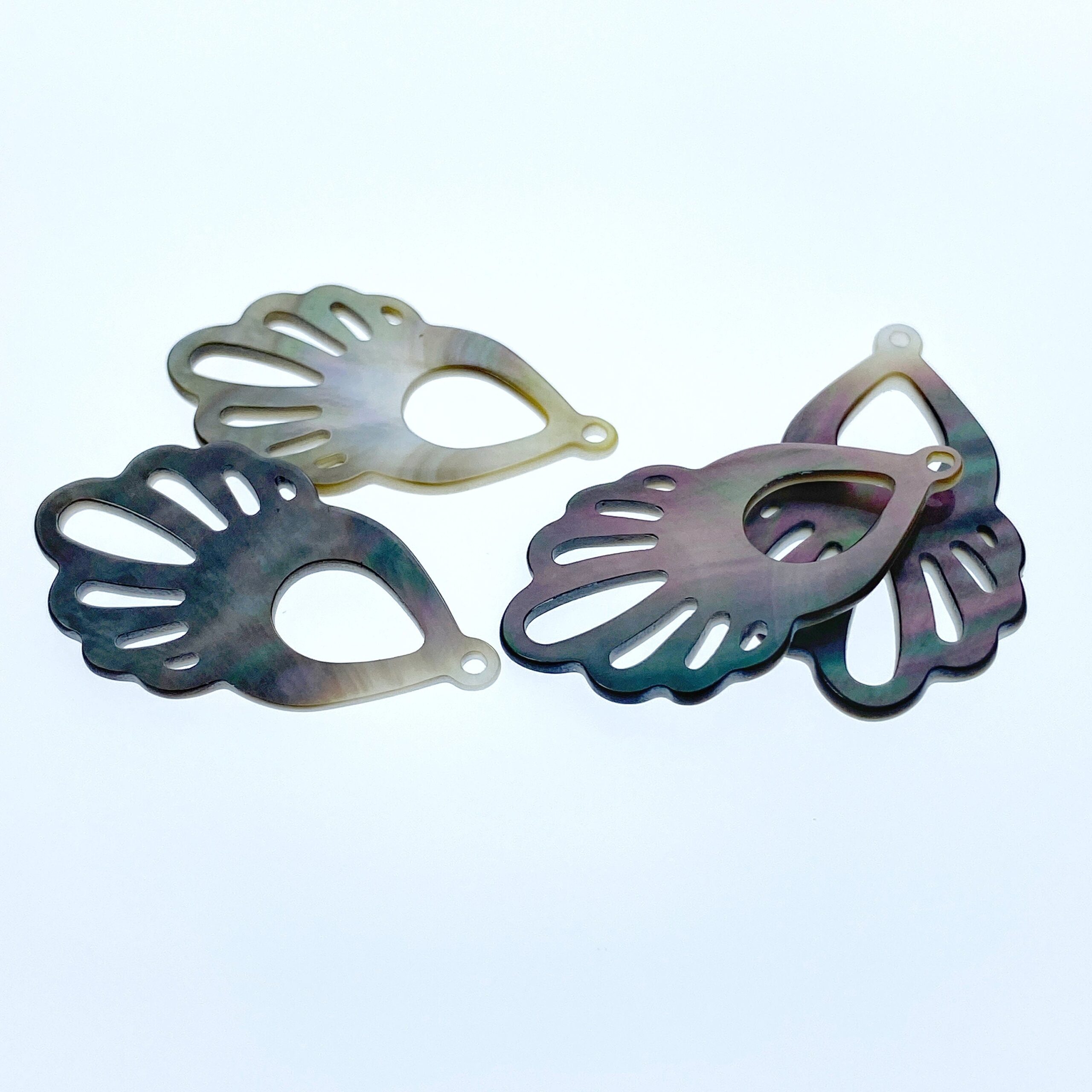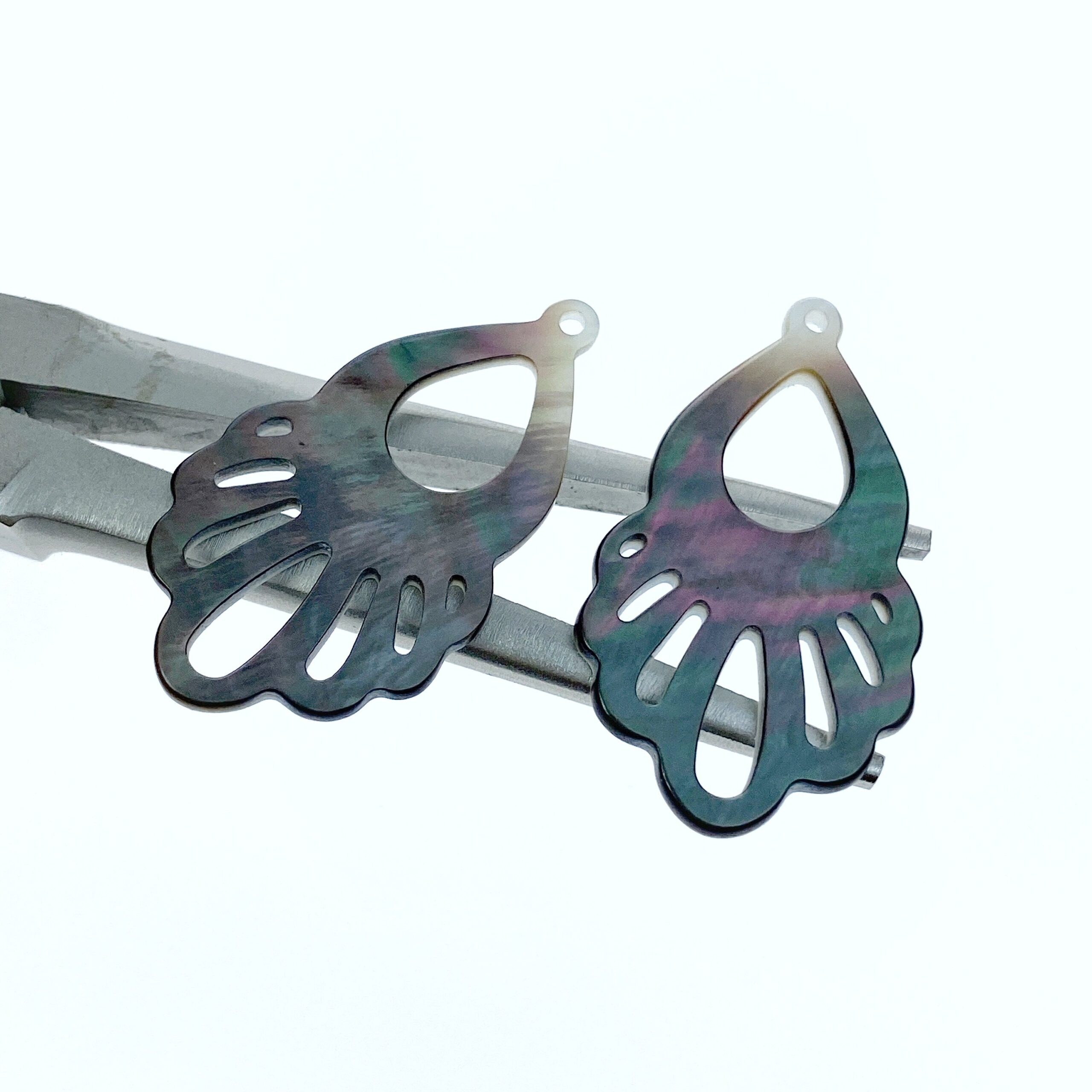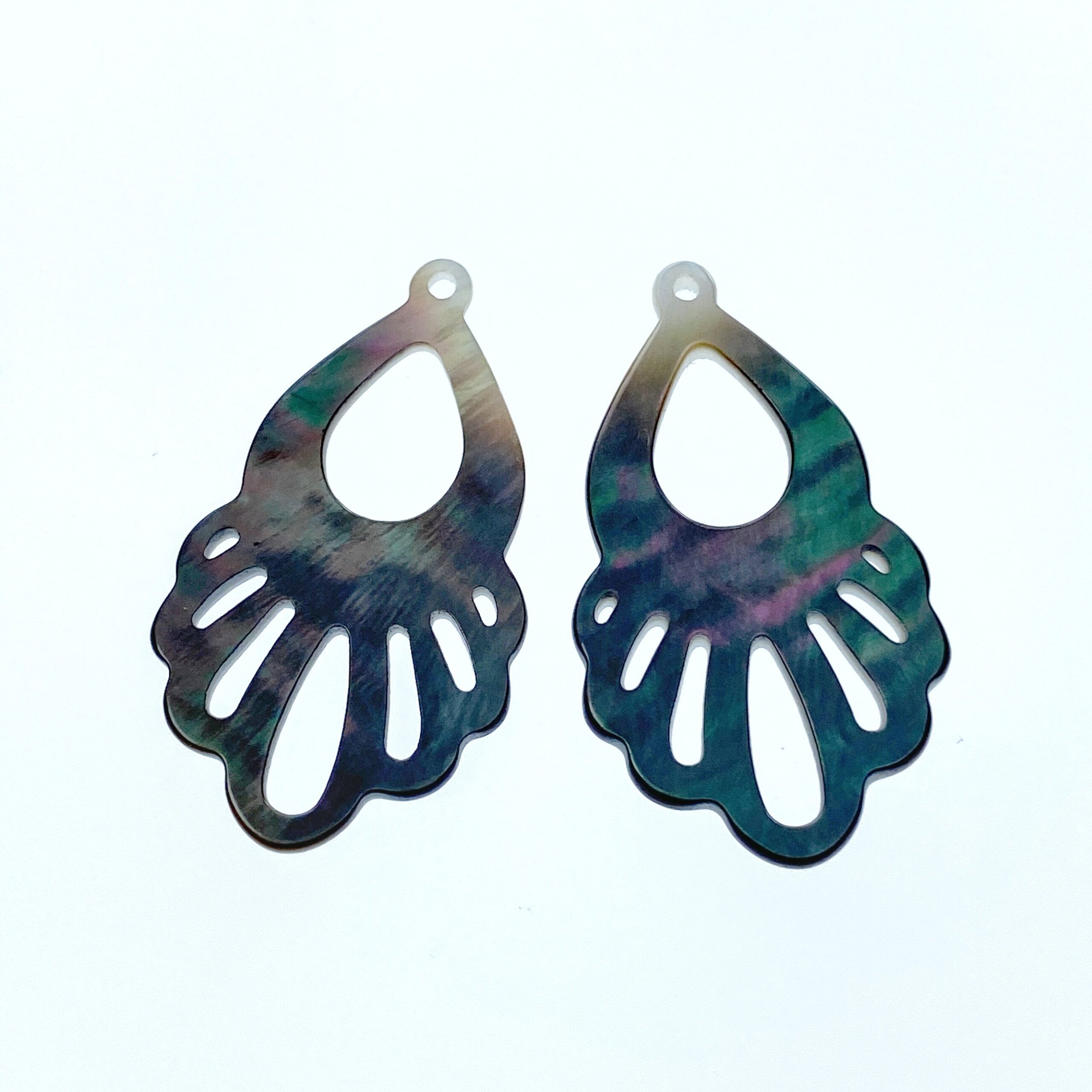 2pc 20mm x 35mm Natural Black Mother of Pearl Filigree Drop Shape Pendants BM-0057