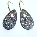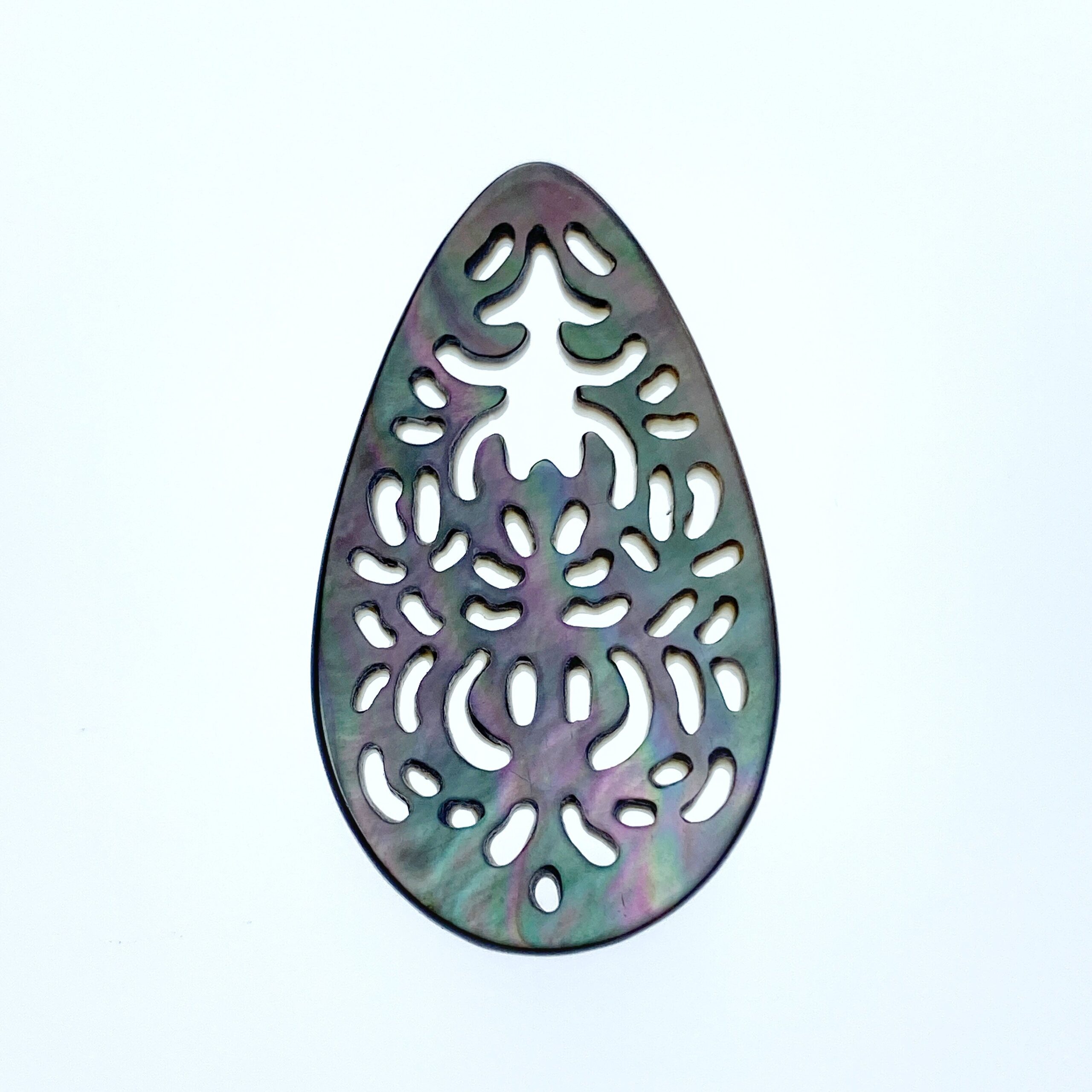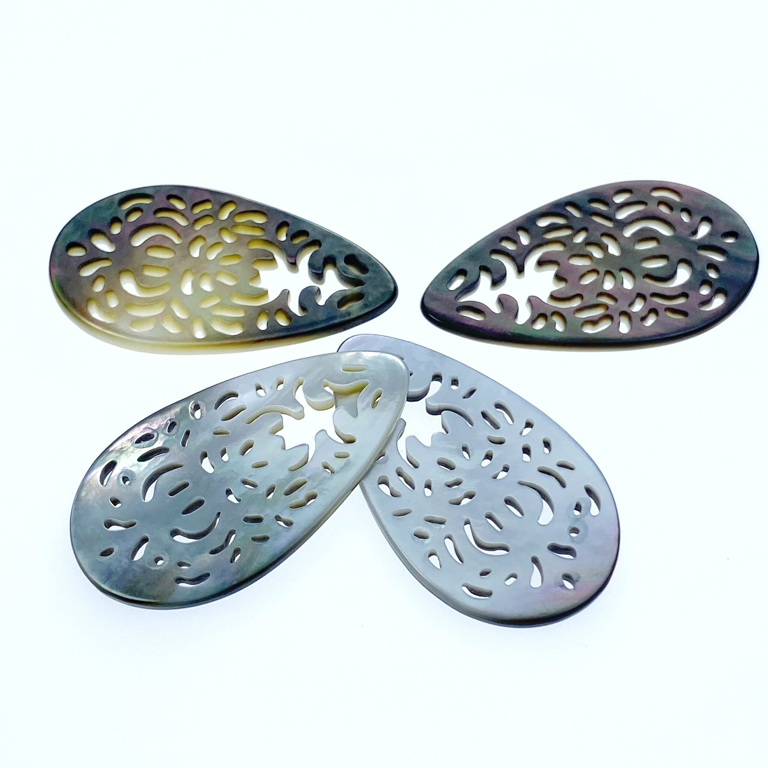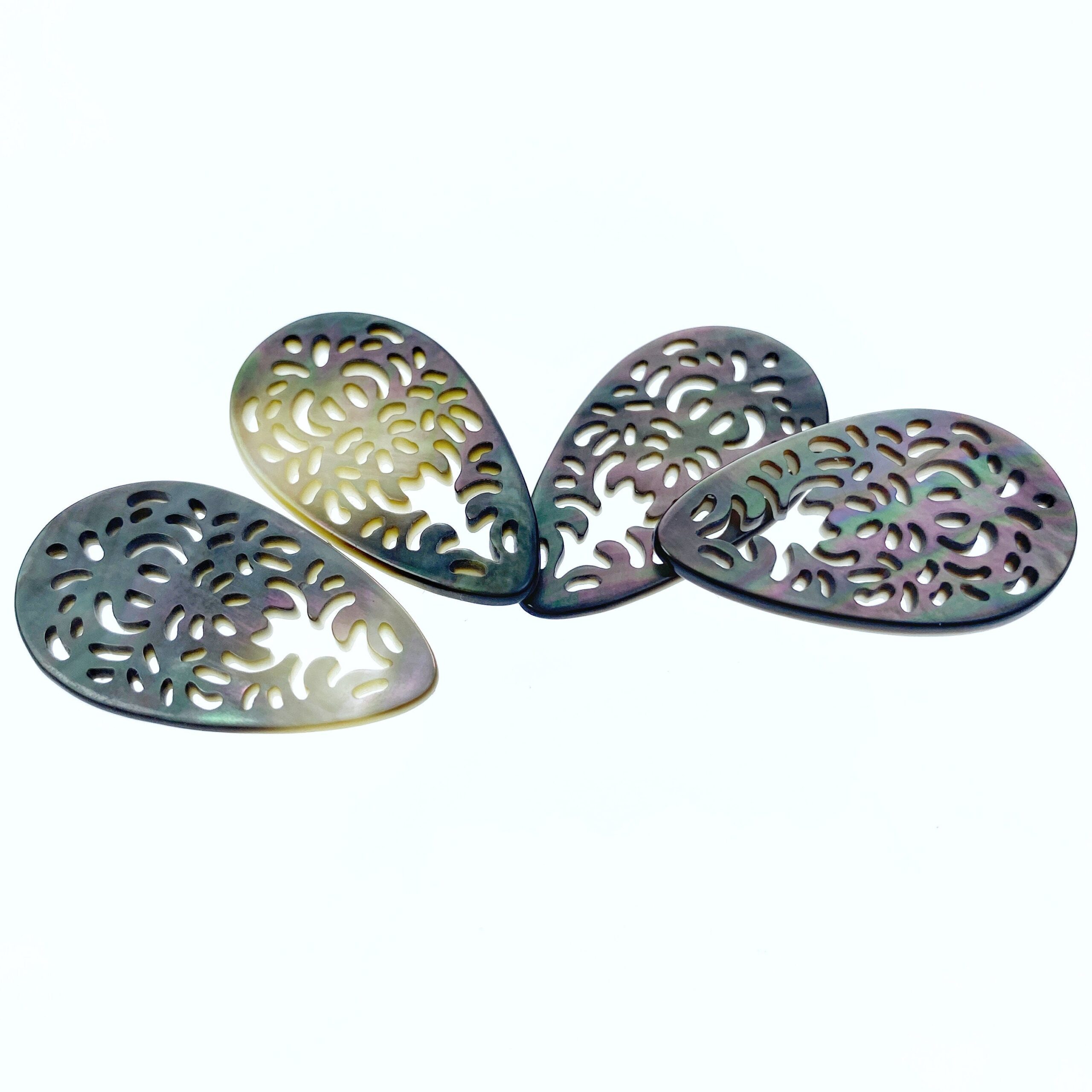 2pc 20mm x 35mm Natural Black Mother of Pearl Filigree Drop Shape Pendants BM-0100