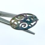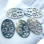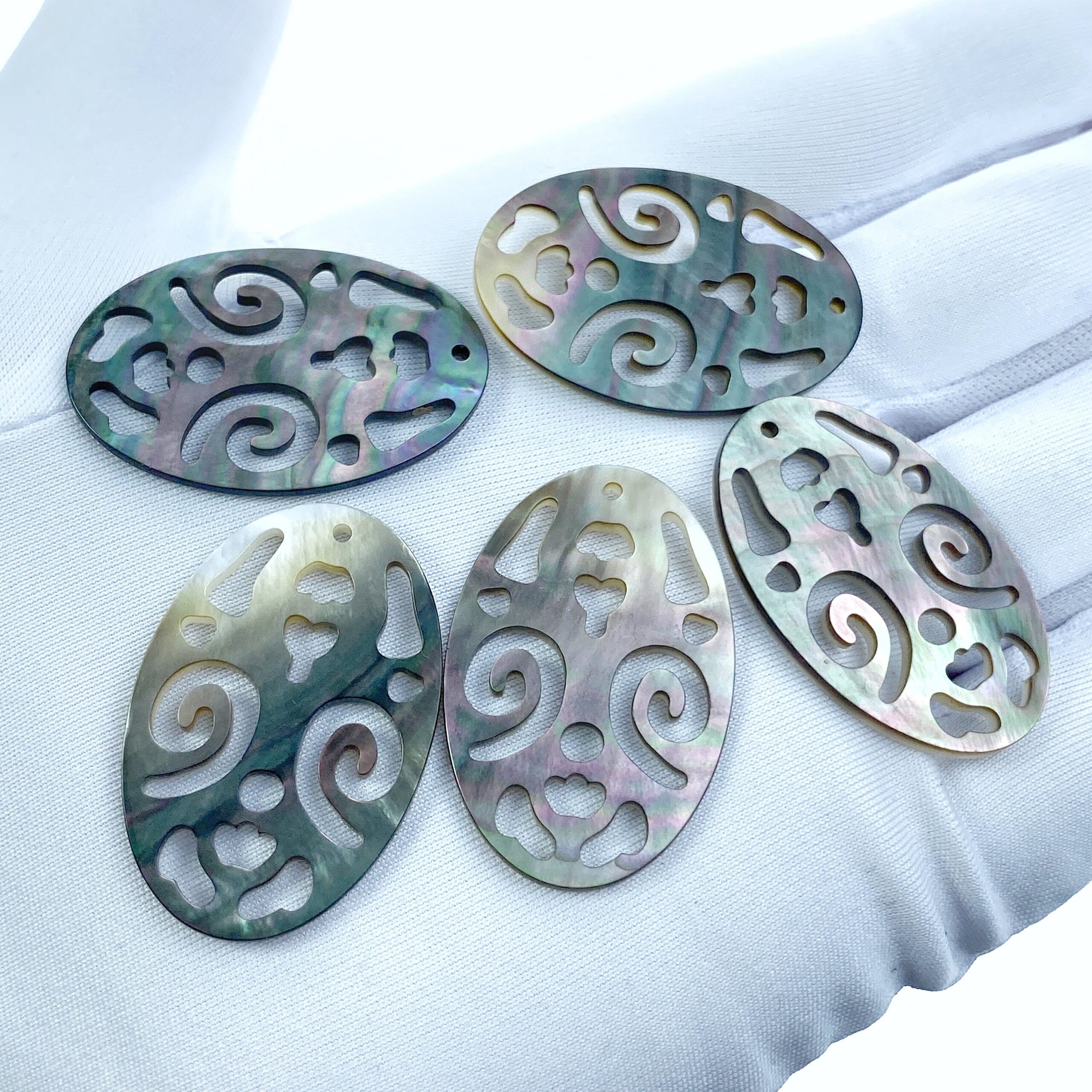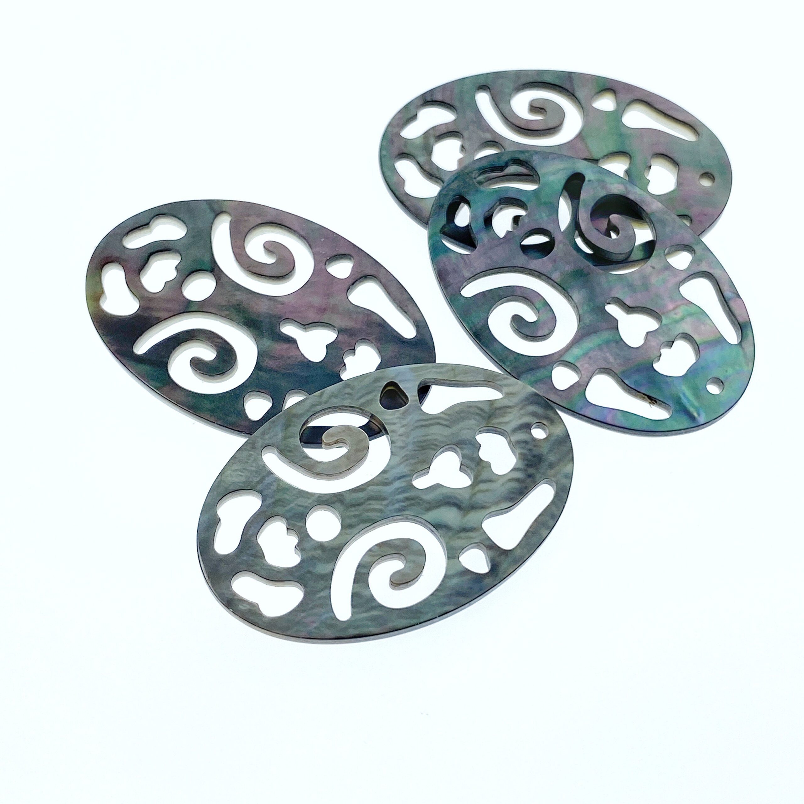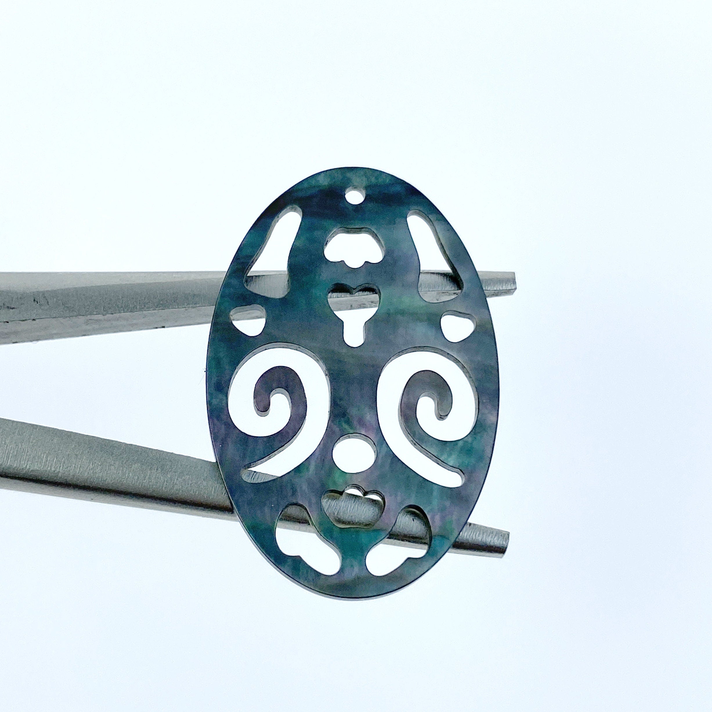 2pc 22mm x 30mm Natural Black Mother of Pearl Filigree Oval Shape Pendants BM-0101