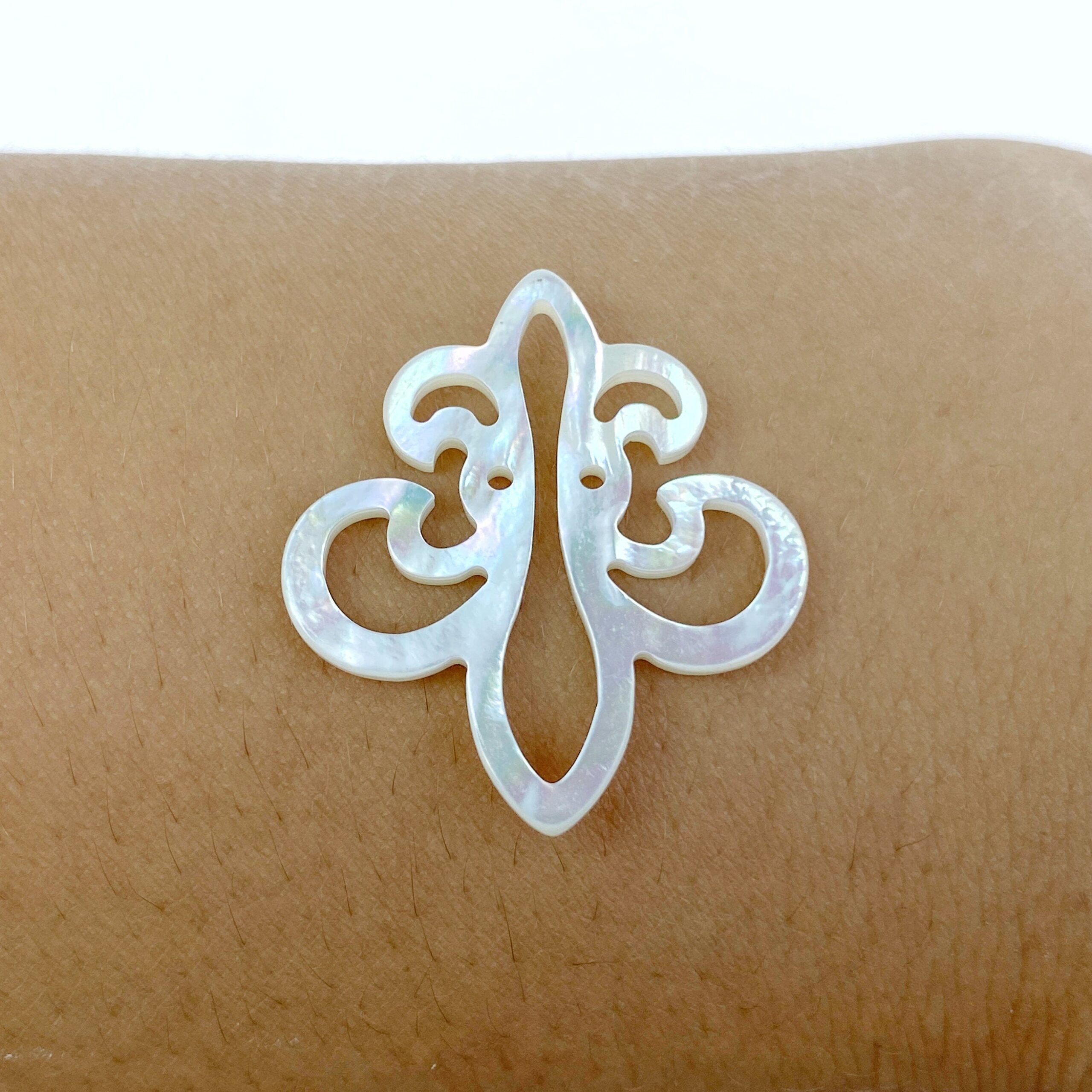 2pc 25mm x 27mm Organic White Mother of Pearl Fleur Di Lis Pendants WM-0065