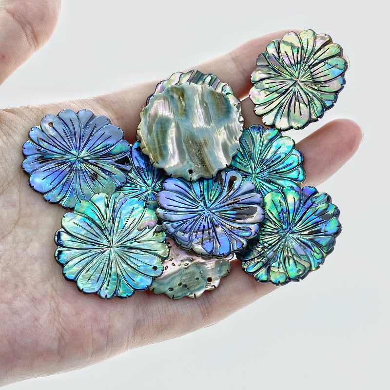 2pc Abalone Daisy Flower Beads Pendants Natural Shell AB-0002