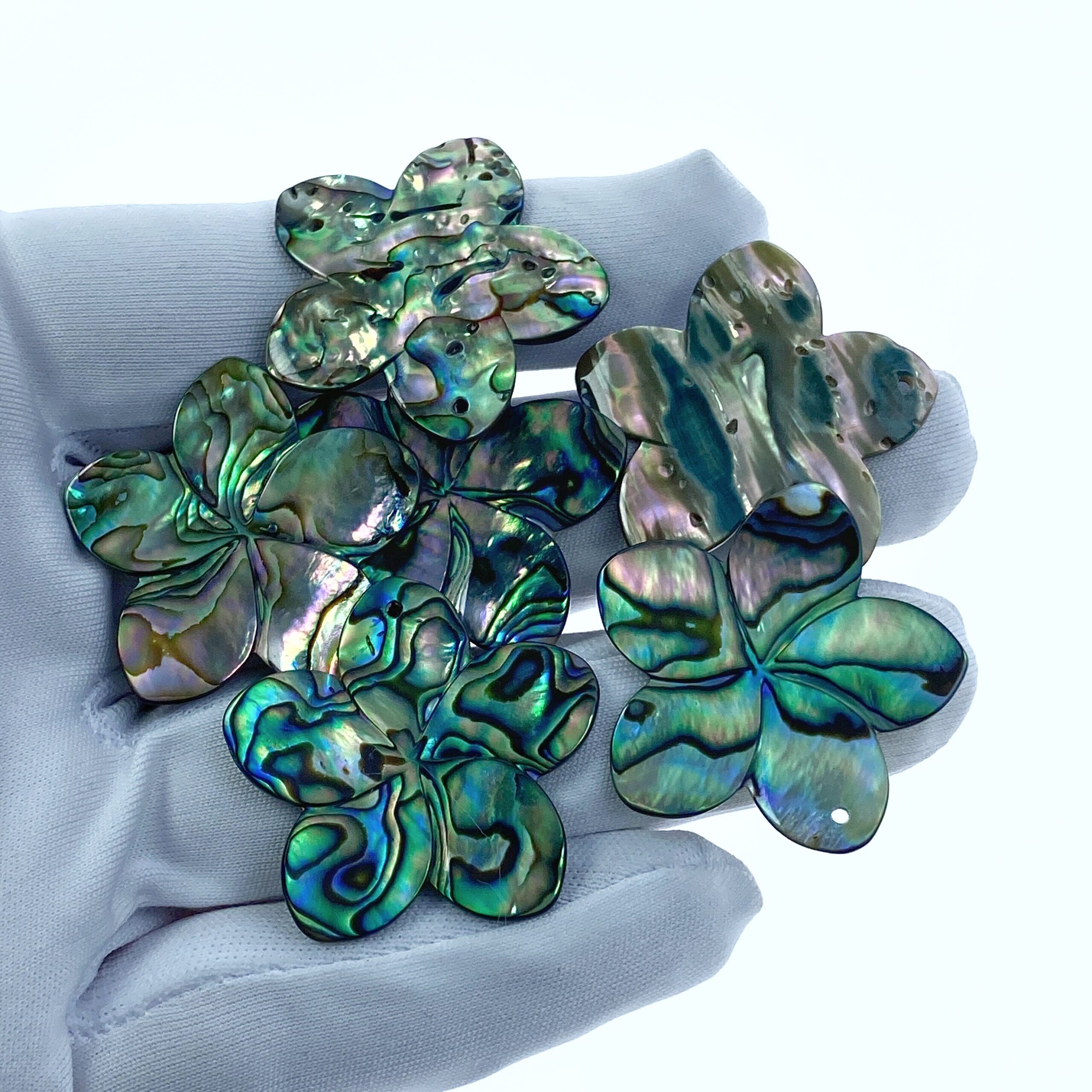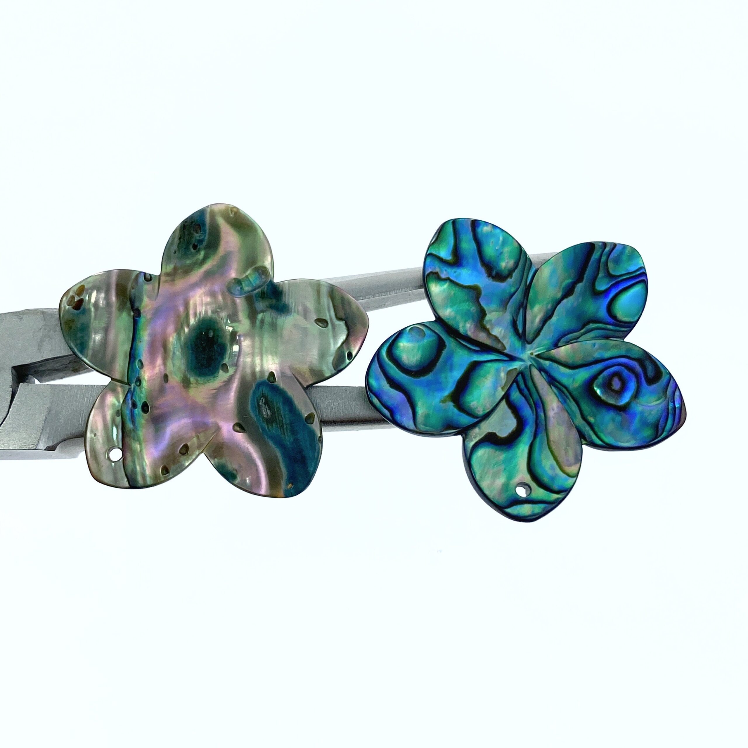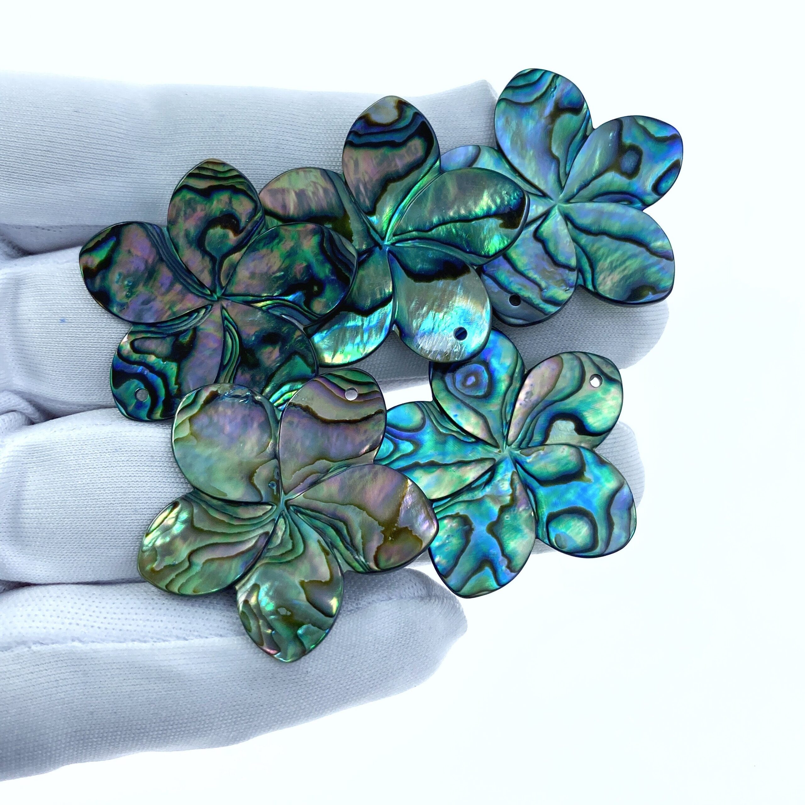 2pc Abalone Shell Plumeria Flower Beads 30mm Hand Carved Hawaii Tropical Design Natural Organic Pendants For Jewelry Earring Making AB-0003