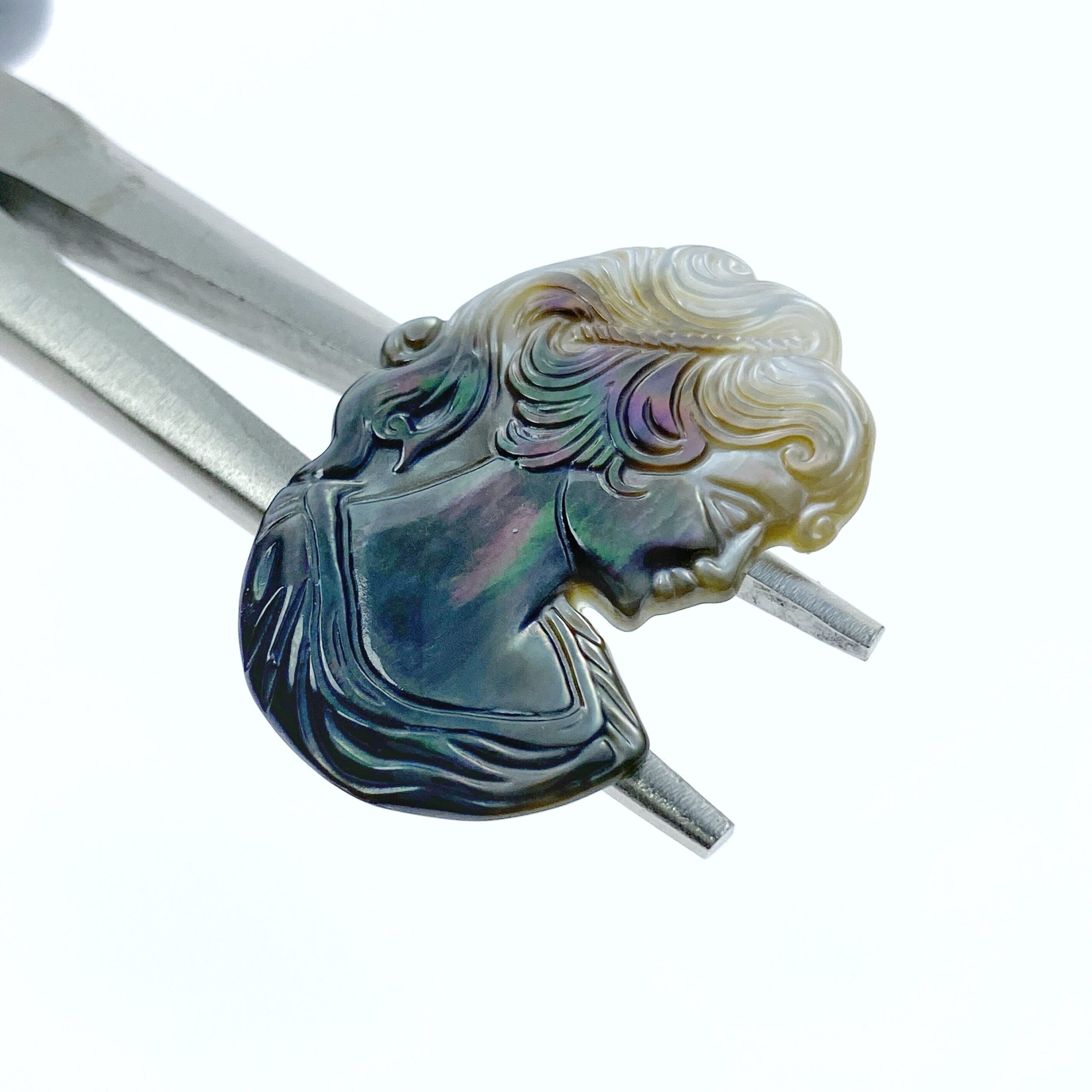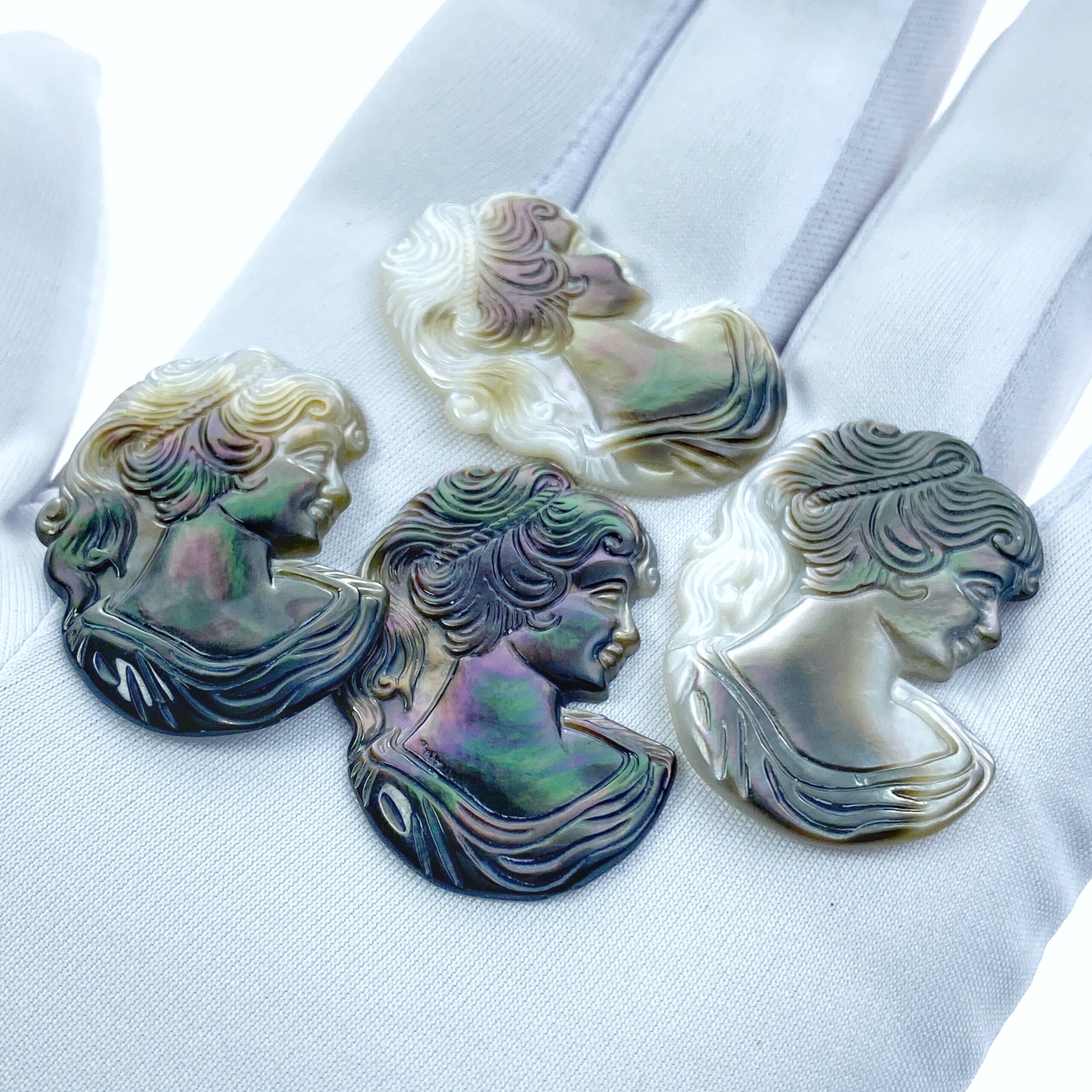 2pc Black Mother Of Pearl Victorian Cabochon 36mm Hand Carved Pendant Charms For Diy Jewelry Making BM-0059