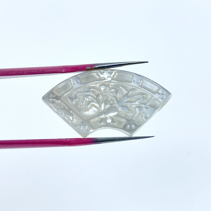 2pc Fan Shaped Hand Carved Mother Of Pearl Beads 24mm Organic Connectors For Jewelry Making Natural White Shell Pendants WM-0101