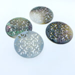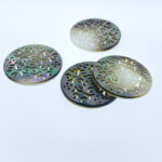 2pc Filigree Round Beads Black Mother Of Pearl Organic Hand Carved BM-0094