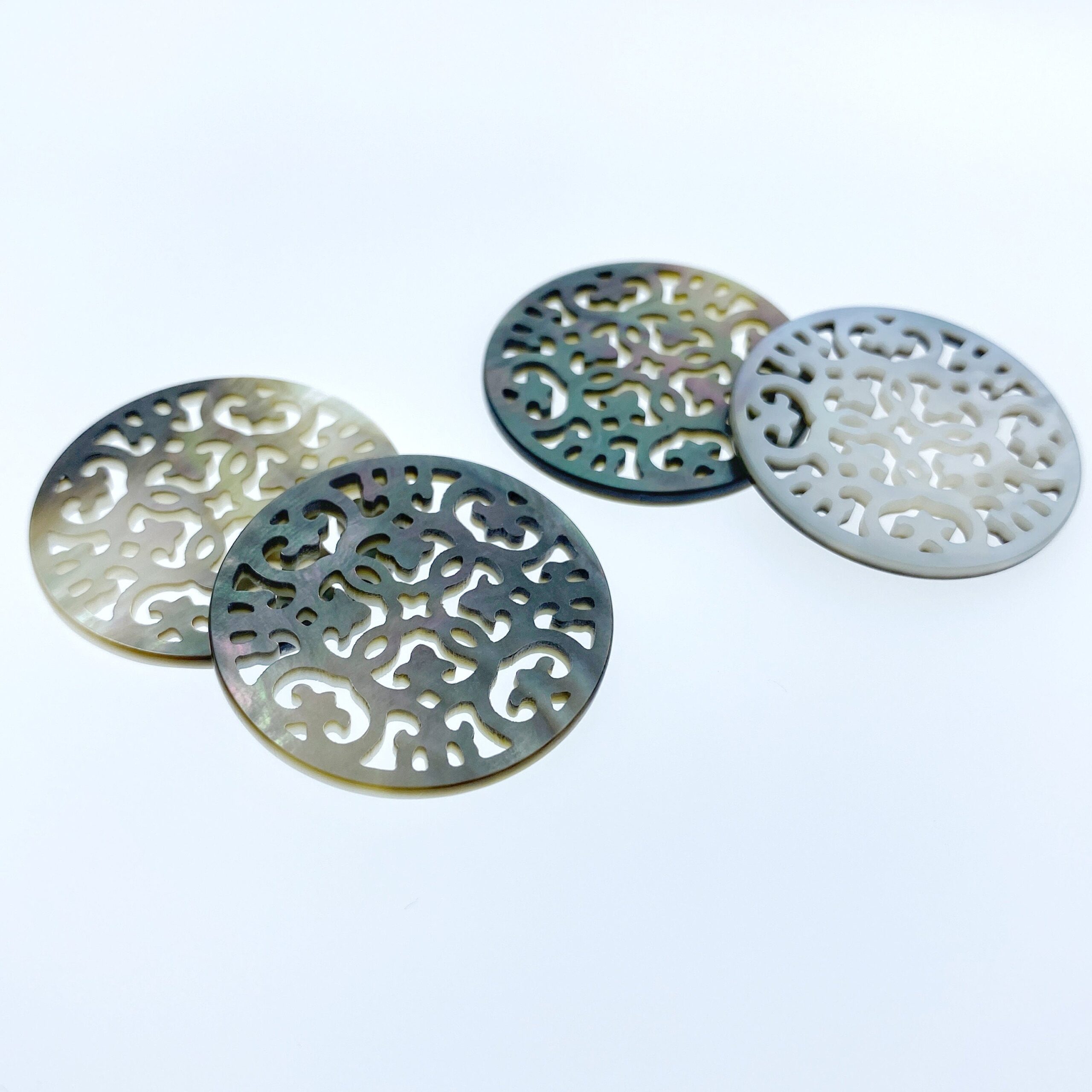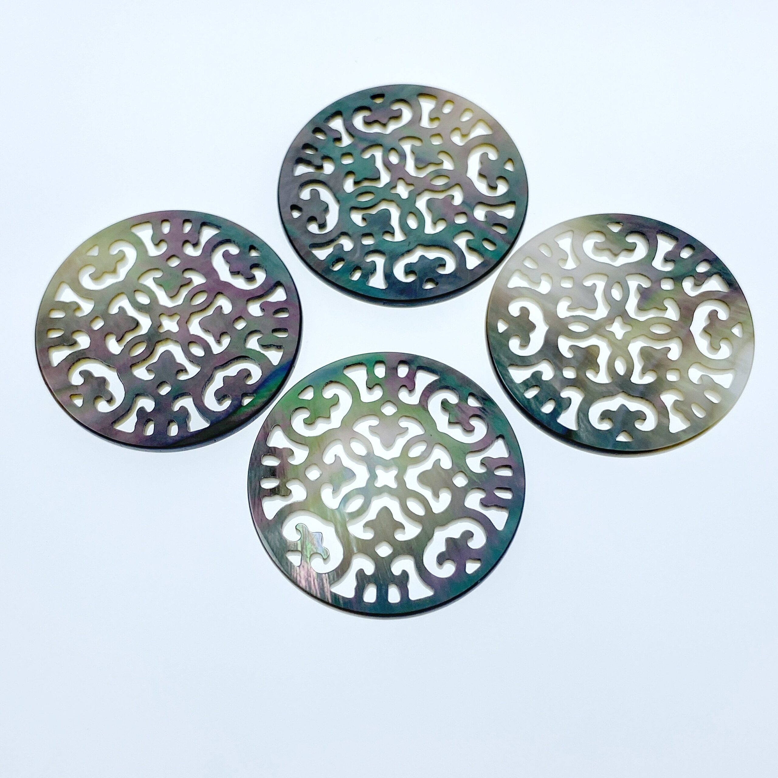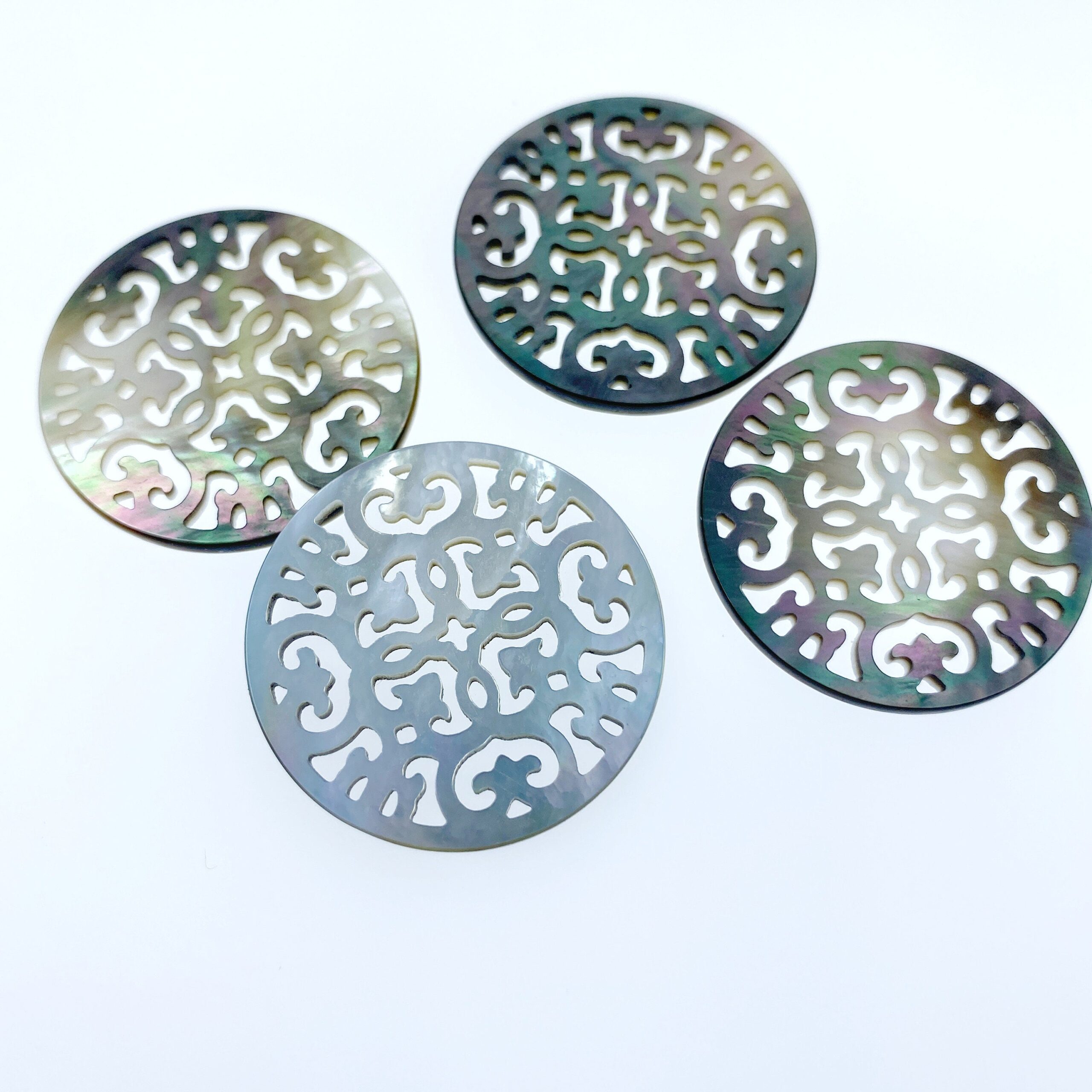 Beautiful black mother of pearl beads are hand carved using fully organic raw materials. All natural product, all pieces are as singular and unique as you.