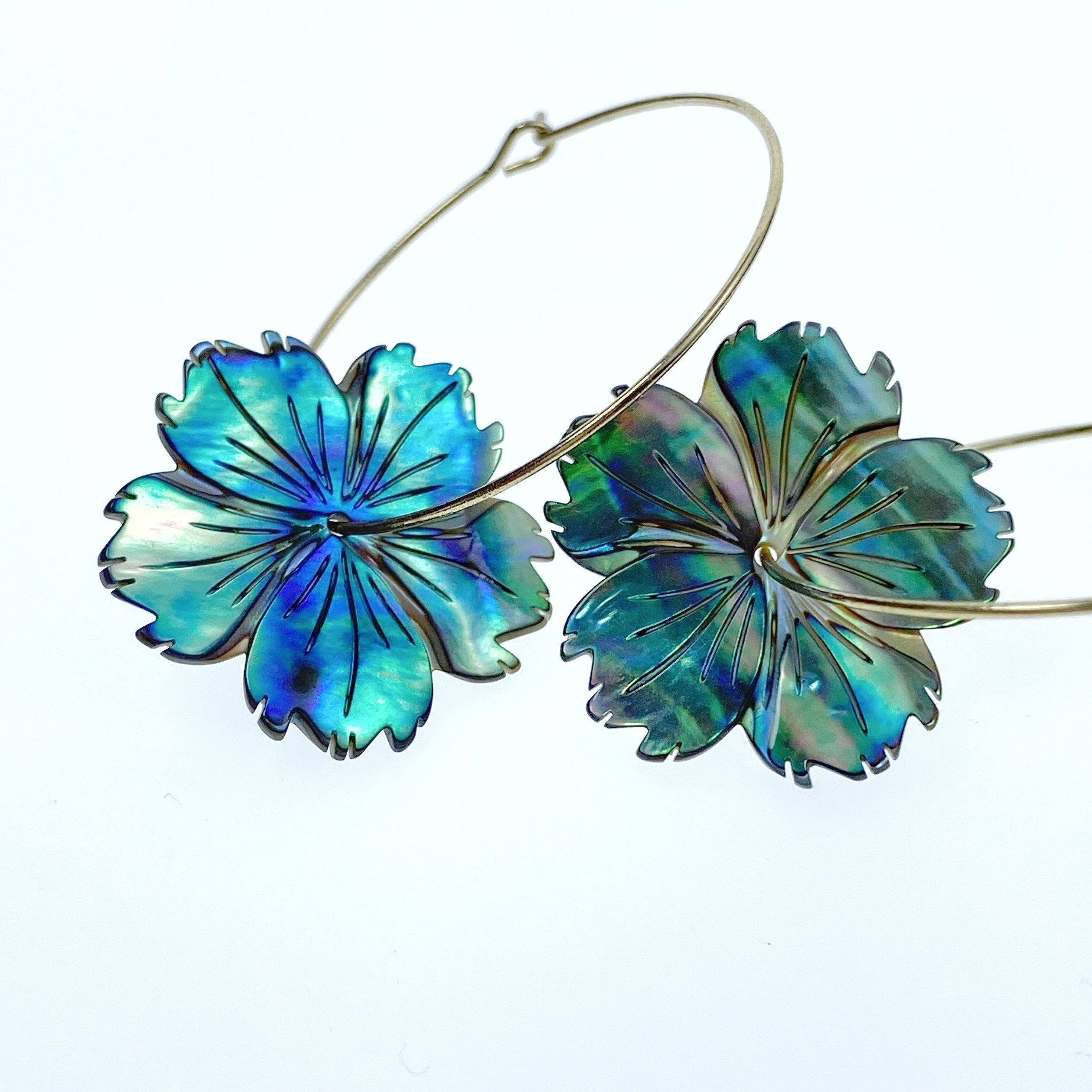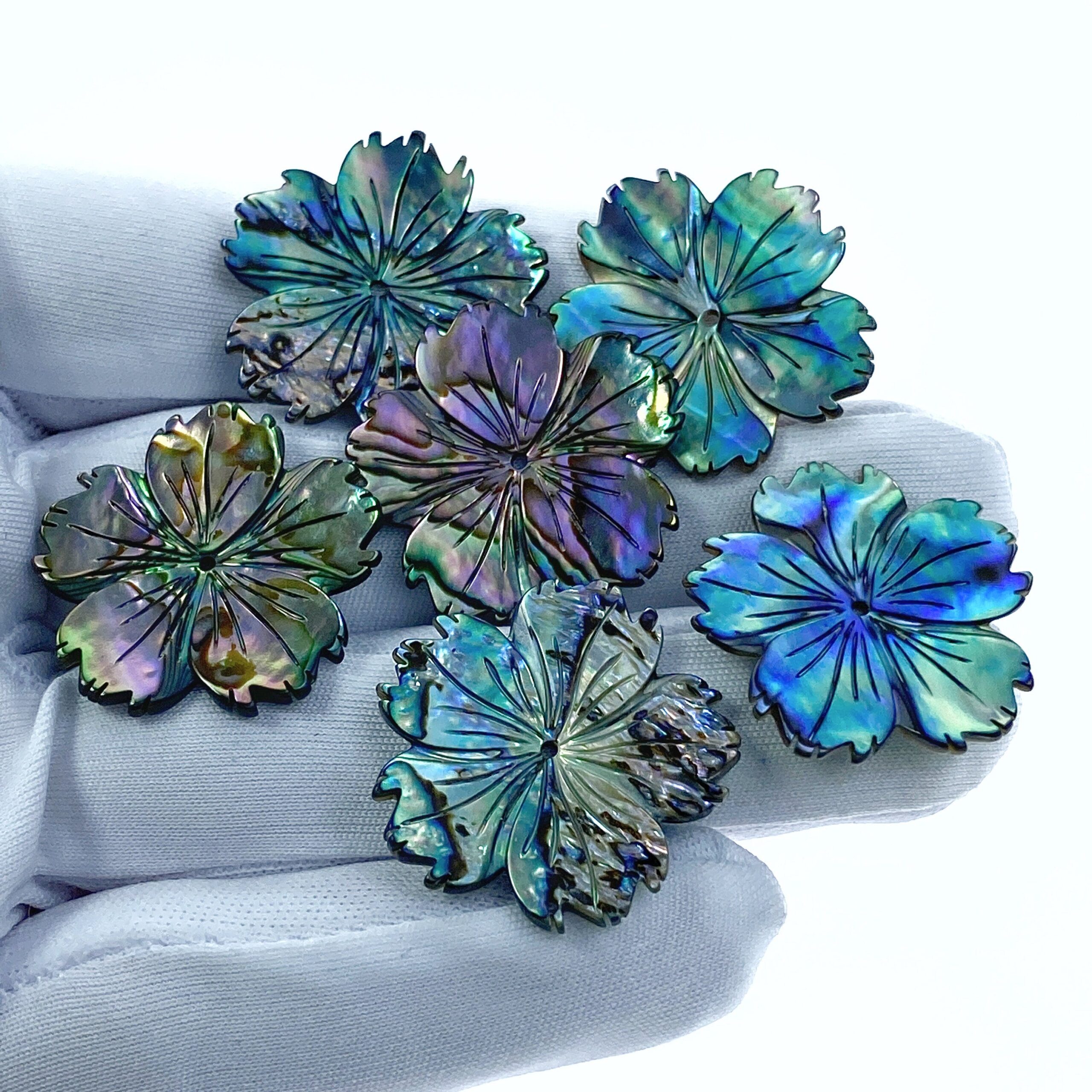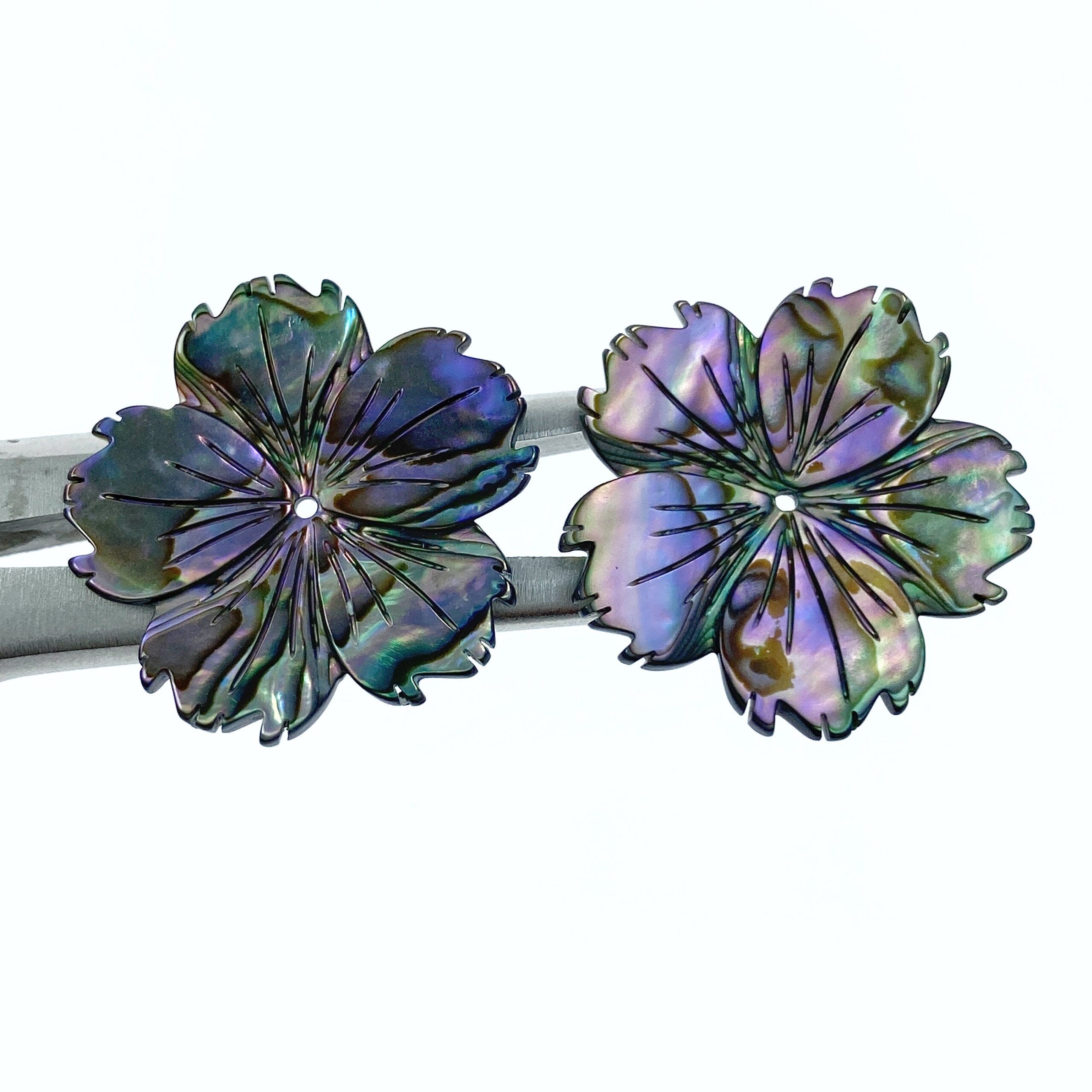 2pc Hibiscus Flower Natural Abalone Shell Beads Charms Pendants 25mm Jewelry Earrings Making Hawaii Tropical Flowers Hand Carved AB-0024