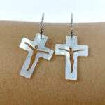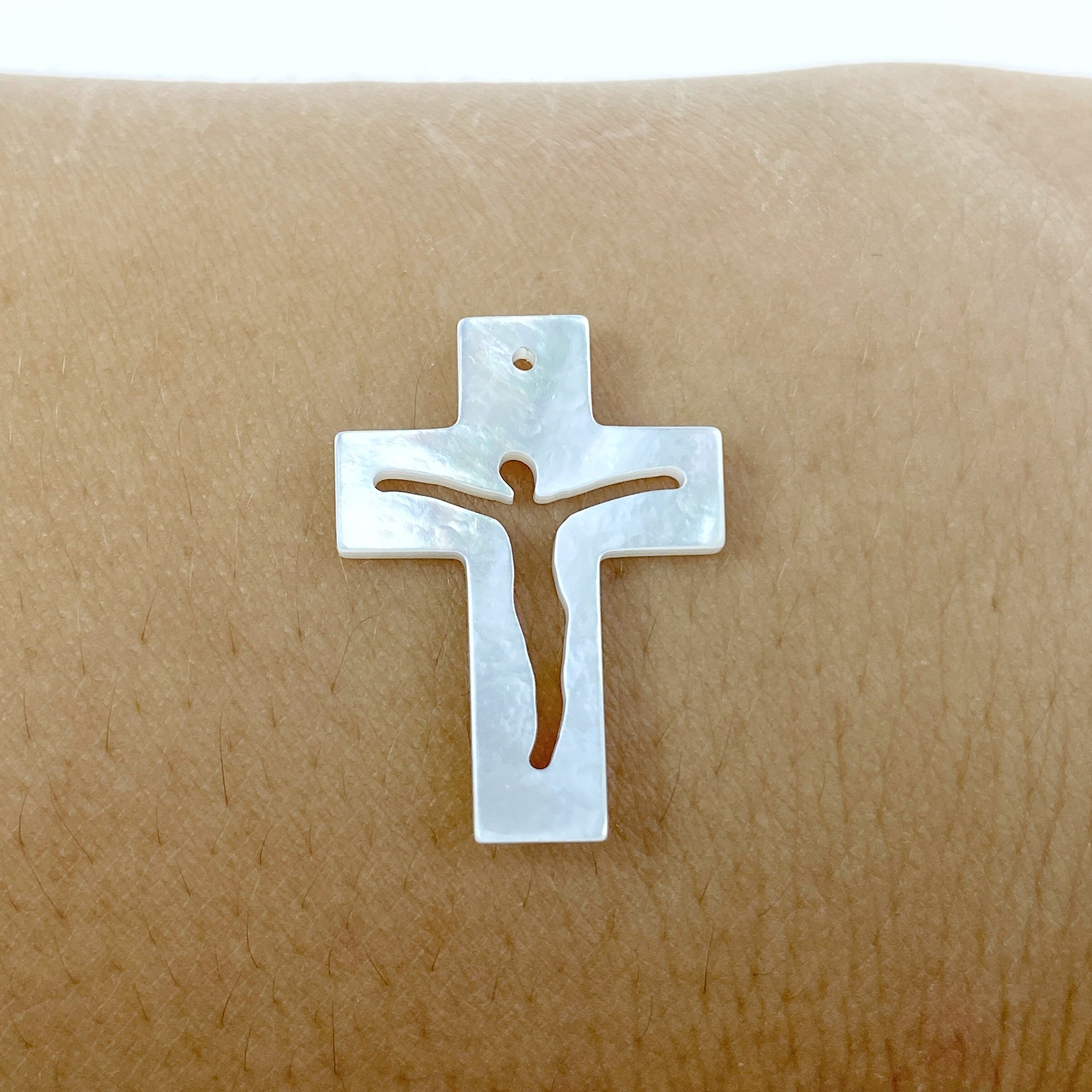 2pc Jesus Cross Mother Of Pearl Beads Charms 21mm Hand Carved Organic Natural Shell For DIY Jewelry Earring Making Religious Beads WM-0158