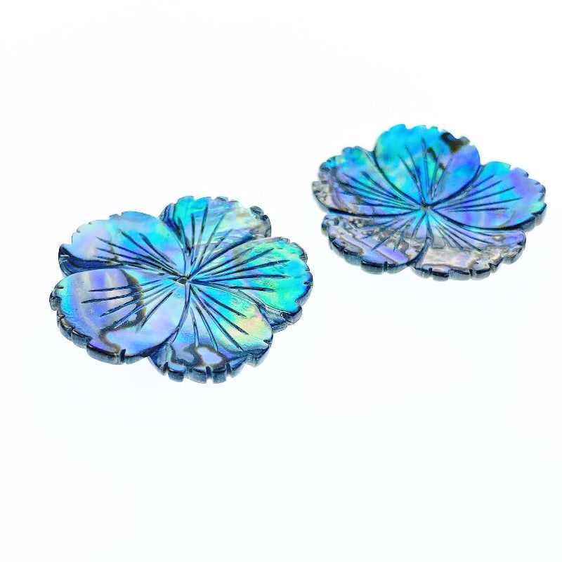 2pc Large Hibiscus Flower Beads Natural Abalone Shell Hand Carved AB-0019