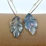 2pc Leaf Beads Black Mother of Pearl Hand Carved Leaf Pendants BM-0068