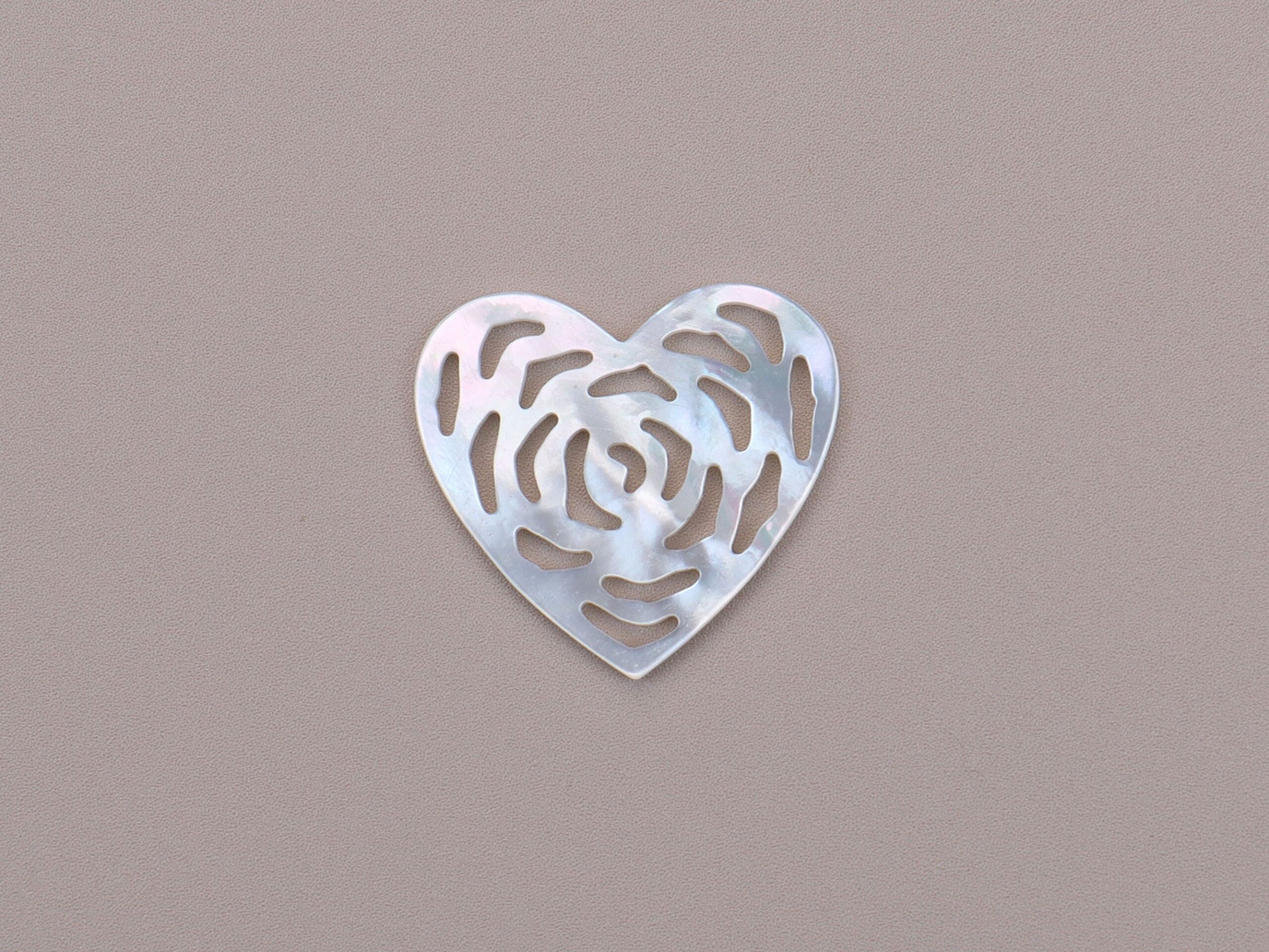 2pc Mother Of Pearl Heart Rose Filigree Charm Beads 24mm Pendants Hand Carved Natural Organic DIY Jewelry Earring Making Minimalist WM-0105