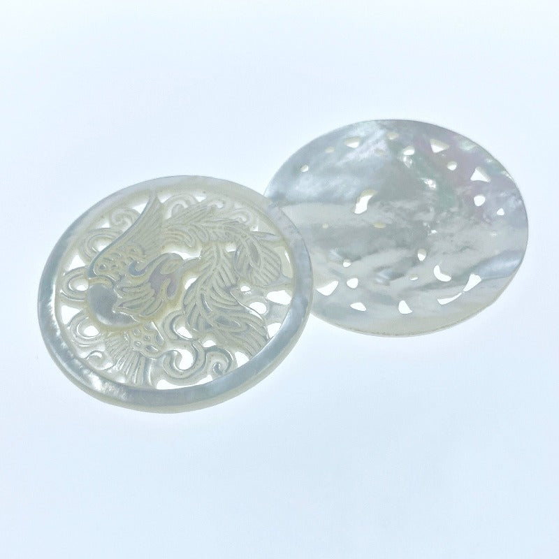 2pc Phoenix Bird Beads White Mother Of Pearl 35mm WM-0080
