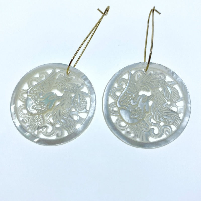 Beautiful white mother of pearl beads are hand carved using fully organic raw materials. All natural product, all pieces are as singular and unique as you.
