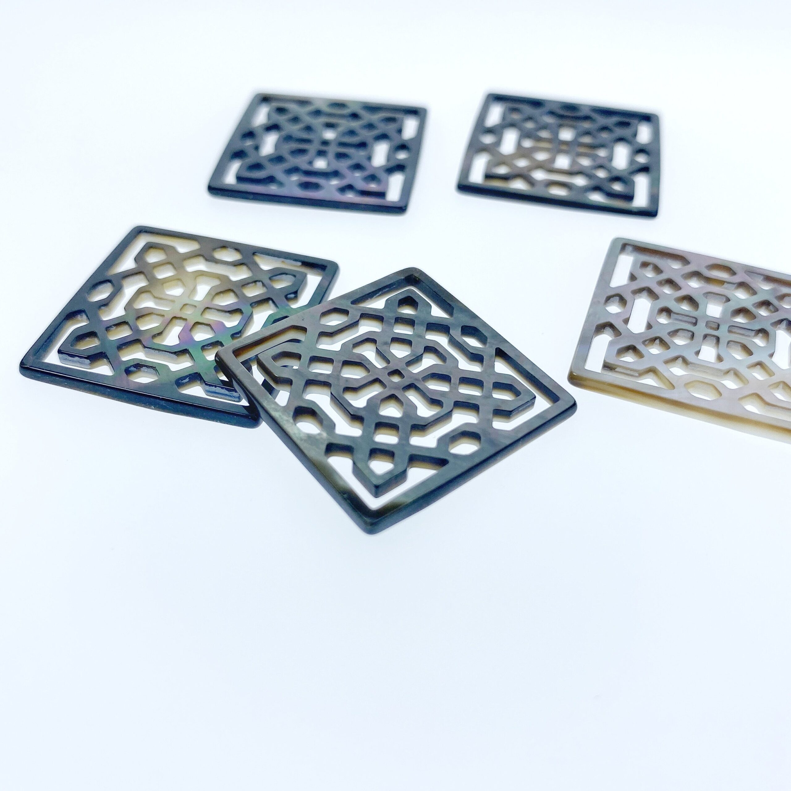 2pc Square Filigree Black Mother Of Pearl Beads Charms Pendants 25mm Natural Pearl For Jewelry Earring Making Organic Hand Carved BM-0112
