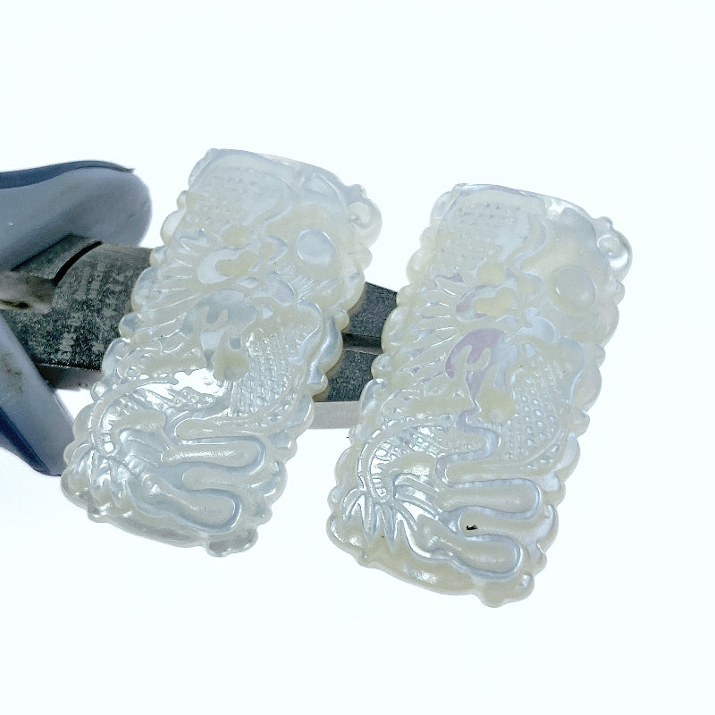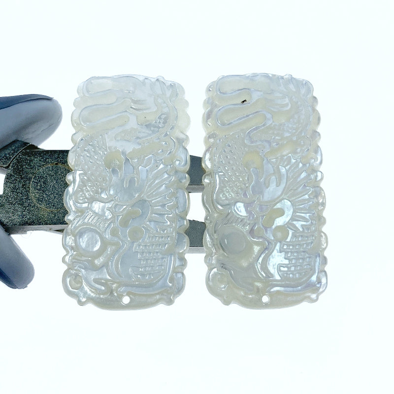 2pcs Chinese Dragon Pendants White Mother Of Pearl 36mm Hand Carved