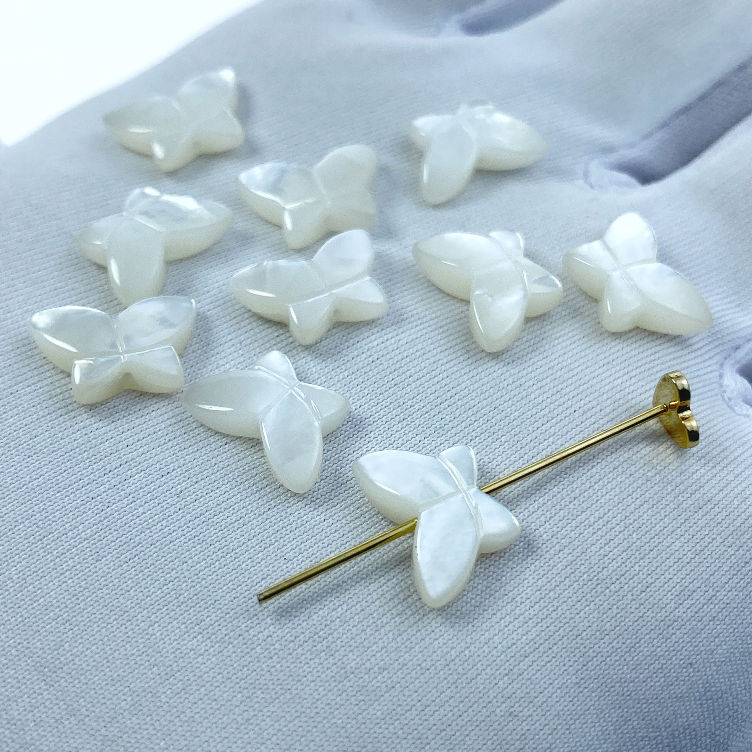 4pc 10mm x 12mm Organic Hand Carved White Mother of Pearl Butterfly Beads WM-0142