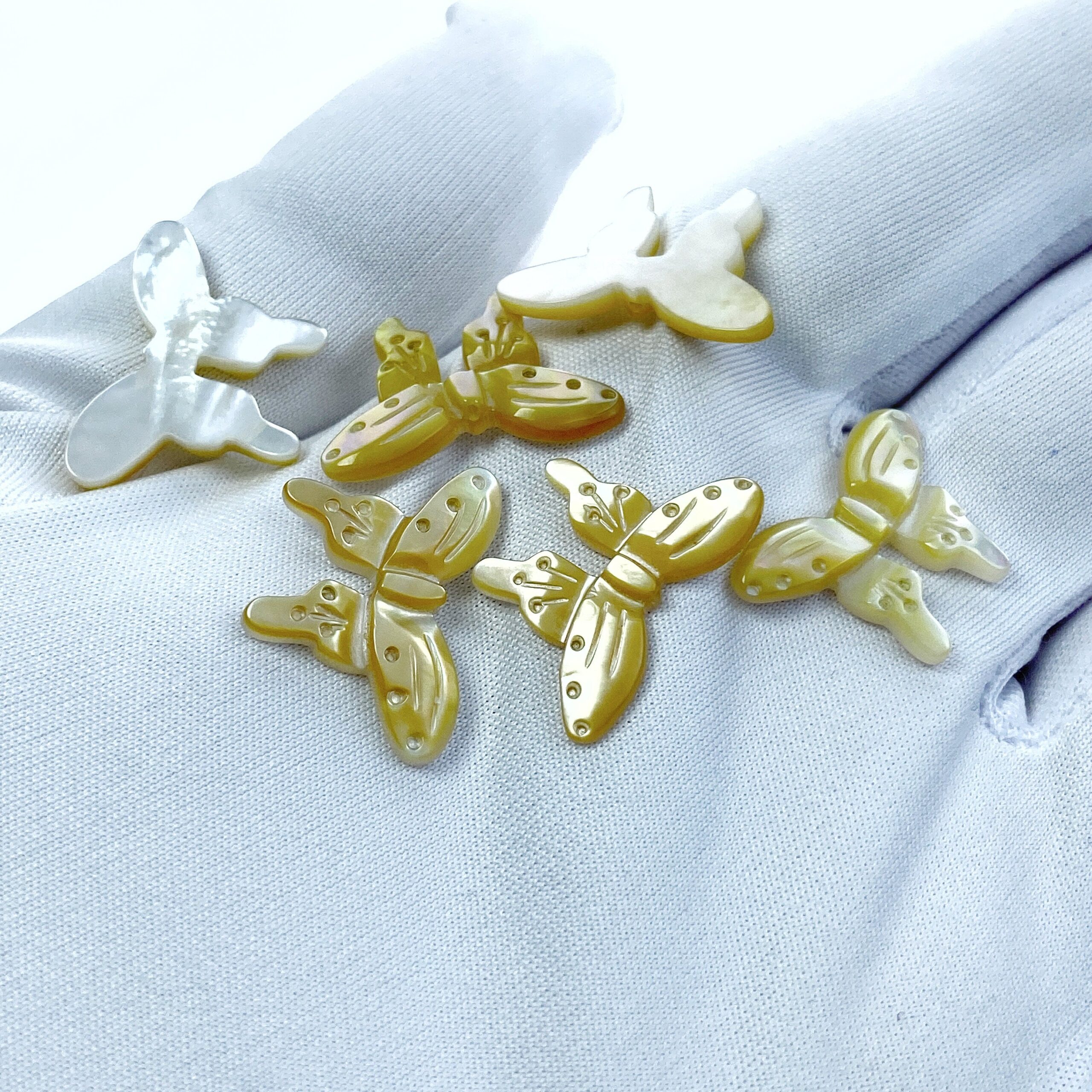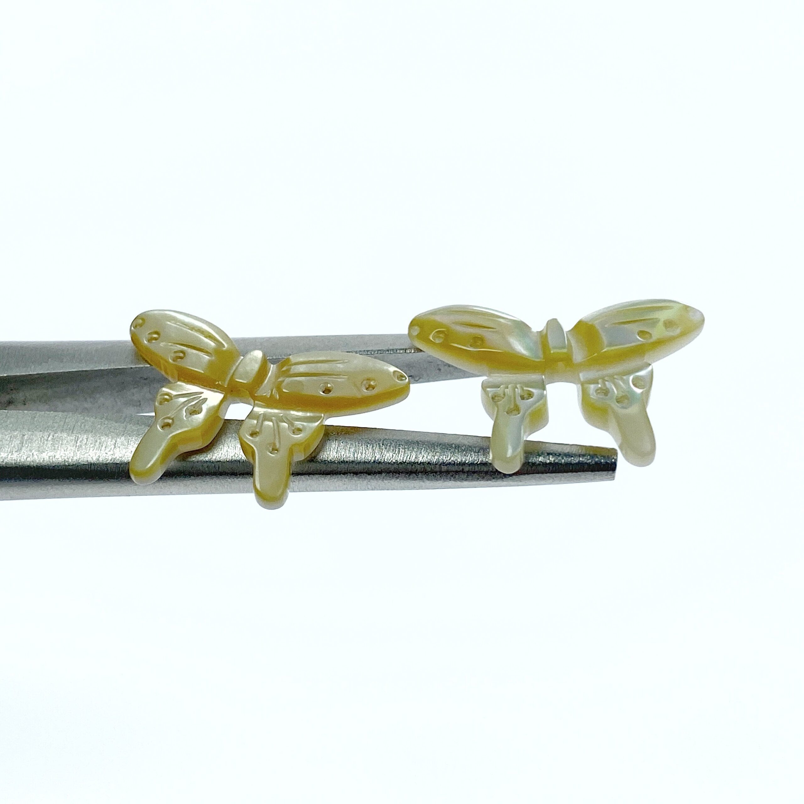 4pc 14mm x 20mm Hand Carved Yellow Mother of Pearl Butterfly Beads YM-0013