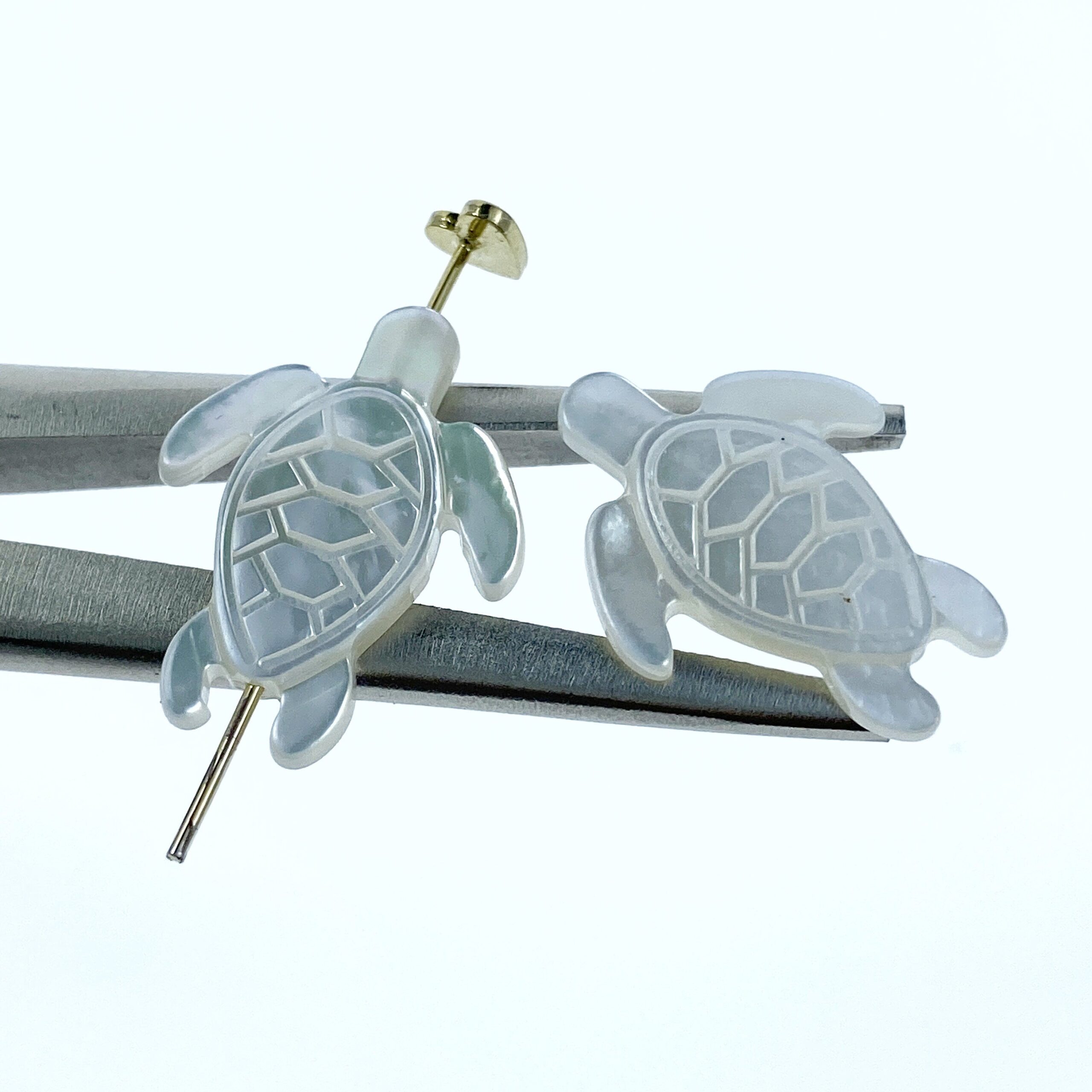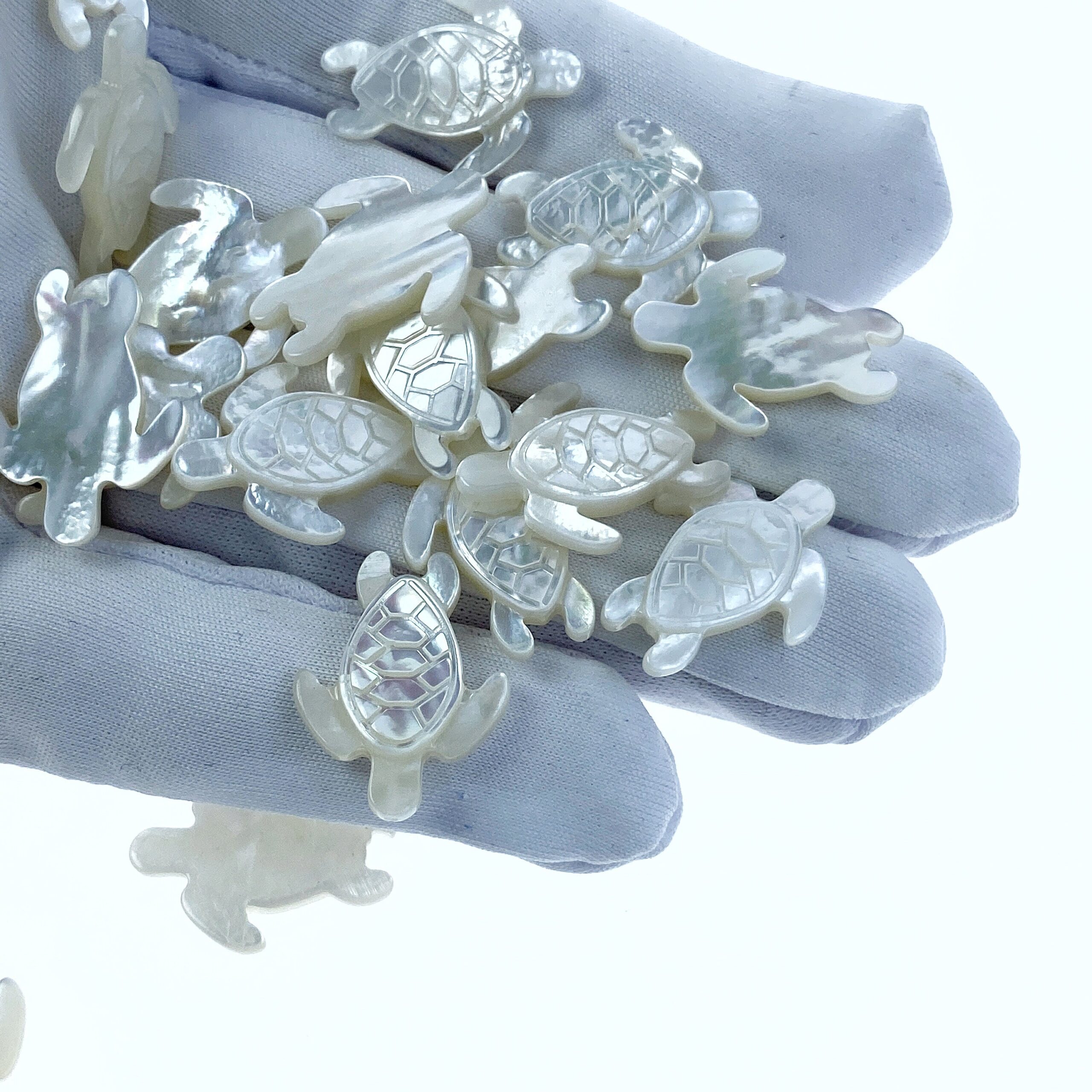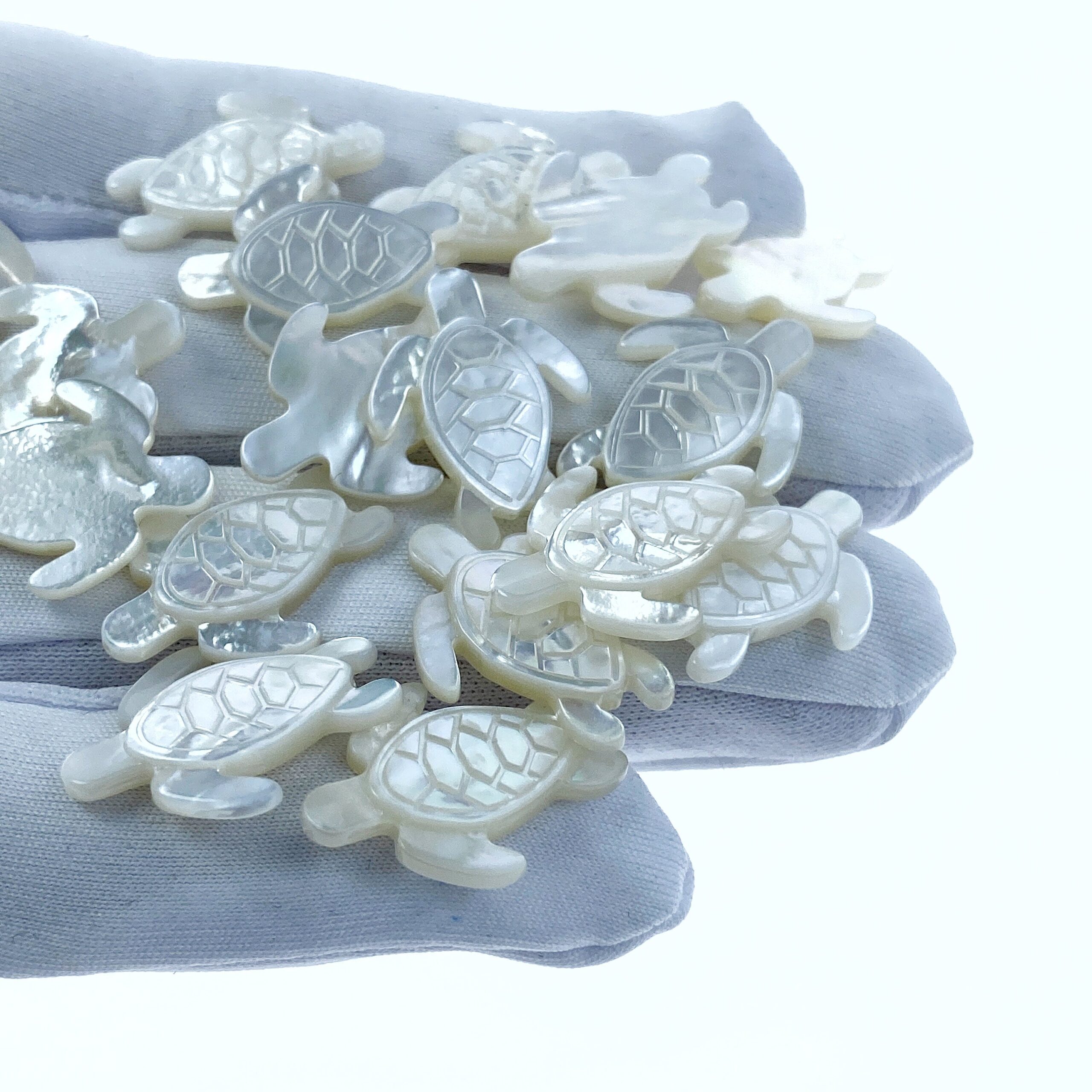 4pc 16mm x 21mm Hand Carved White Mother of Pearl Sea Turtle Beads WM-0090